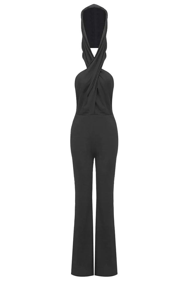 Take a chance on this backless hooded jumpsuit. Its slip pockets turn any casual evening into an adventure. Dress to impress - and challenge - with this sleek and daring fashion statement.