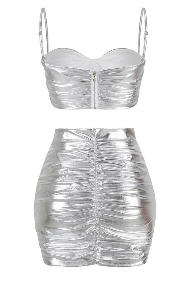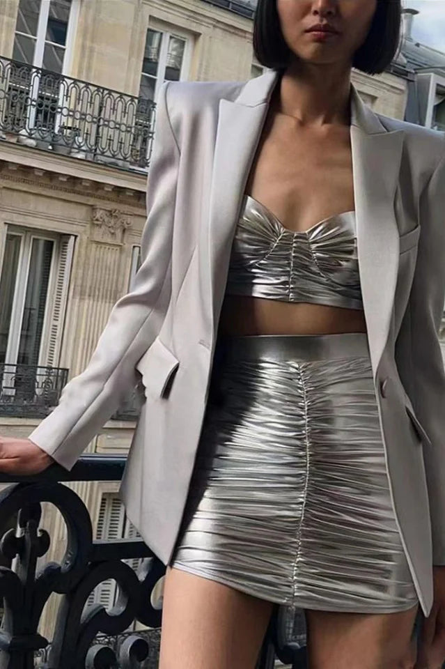 Metallic fabric with ruched detail