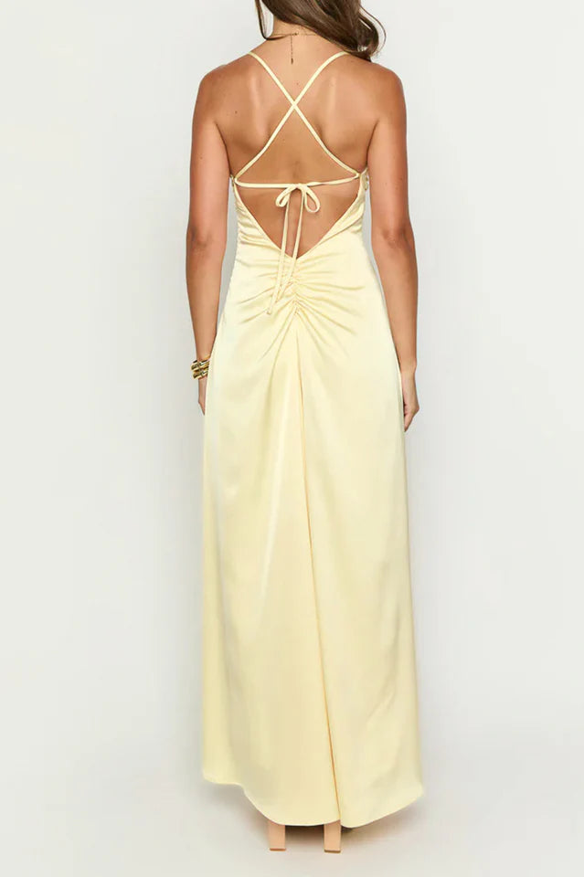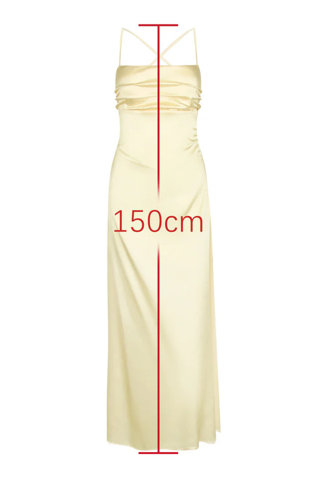 Our Blaise Yellow Satin Maxi Dress is all about luxury and elegance, with its straight neckline and romantic open back with lace-up details! Crafted from luxe satin, it’s perfect for cocktail parties, weddings, or any formal event! Pair with strappy heels and minimalist jewellery for a sophisticated look.