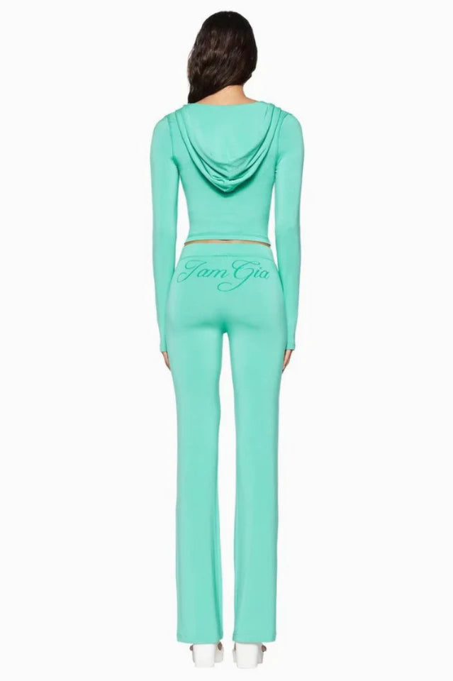 Featuring placement water-based soft print 'I AM GIA' logo on the bum in contrast tonal green