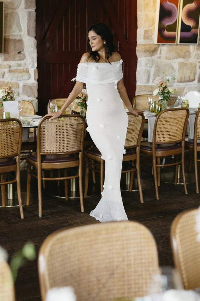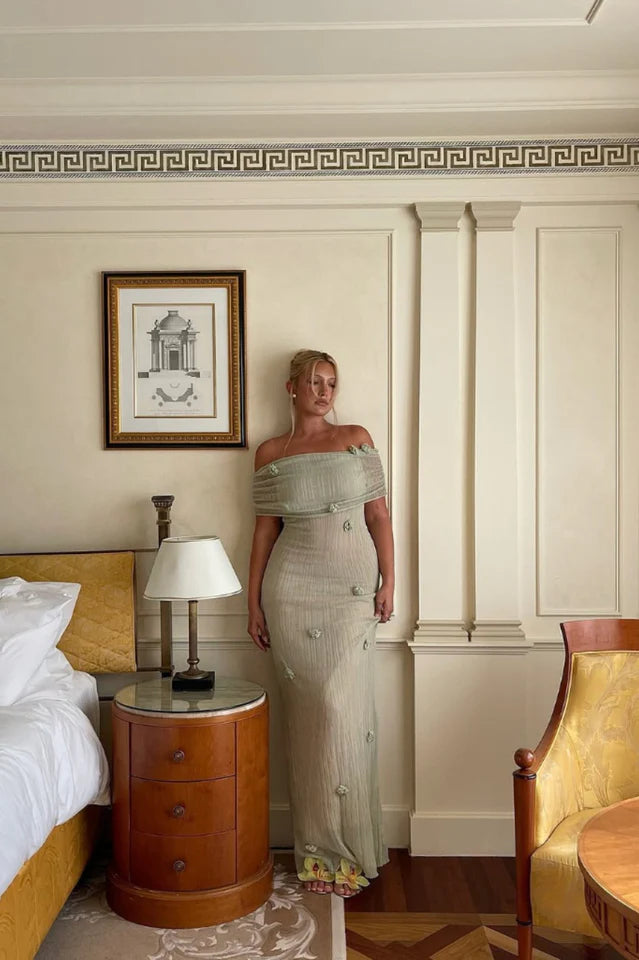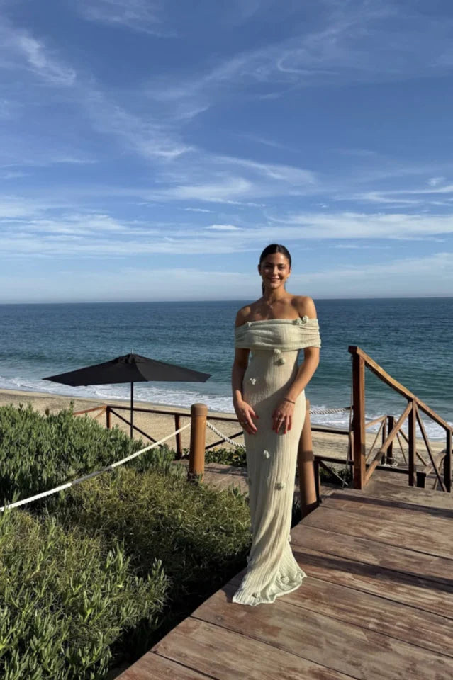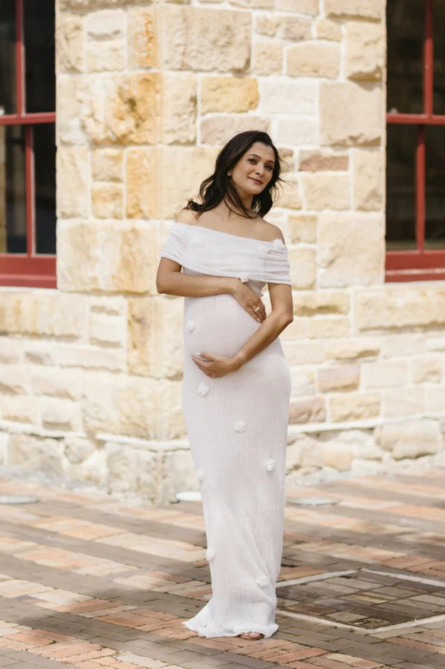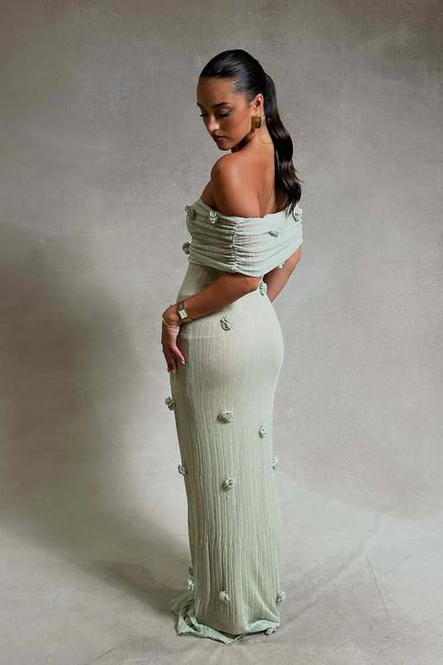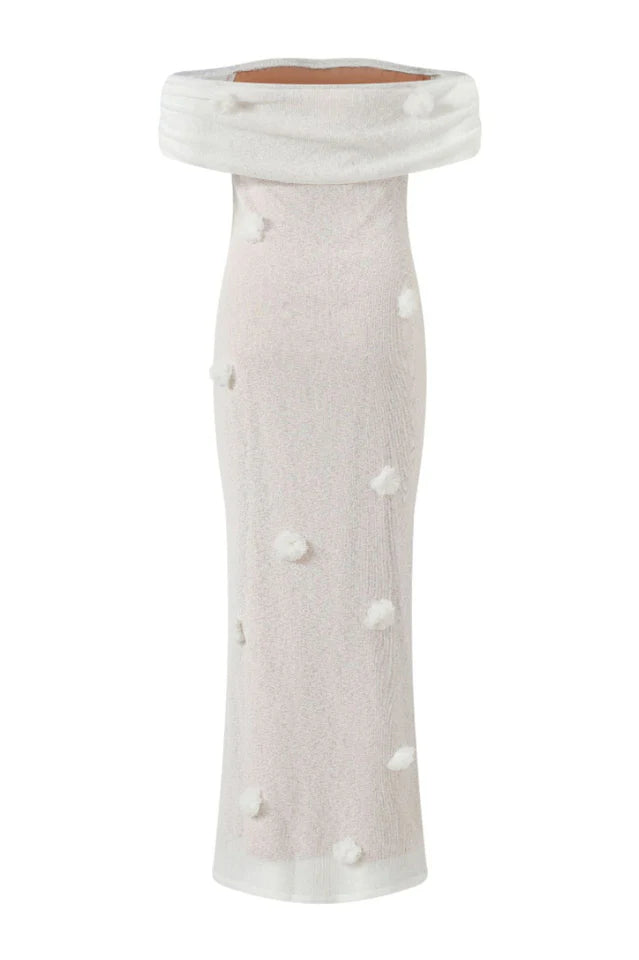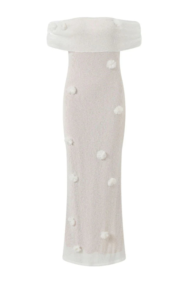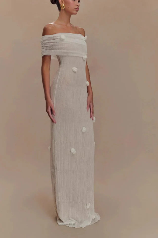 This Brooke Off Shoulder Flower Knit Maxi Dress is made from high-quality and comfortable fabric, with an off-shoulder design and beautiful flower knit pattern. Perfect for a casual or formal occasion, this dress will keep you stylish and comfortable all day. Stand out in this must-have dress!