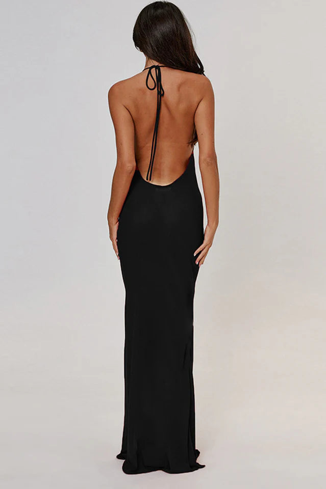 Introducing the Chelsea Maxi Dress. Crafted from stretch fabric, this dress offers a close fit with a bias cut, accentuating your silhouette. The combination of unlined, semi-sheer elegance, while the bust lining ensures the perfect balance of coverage.