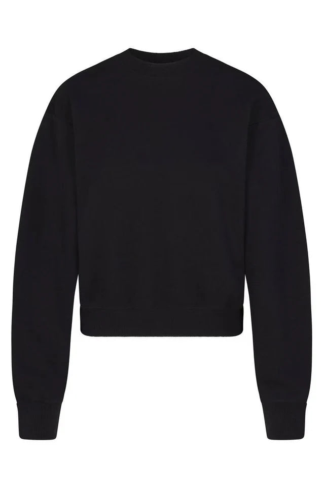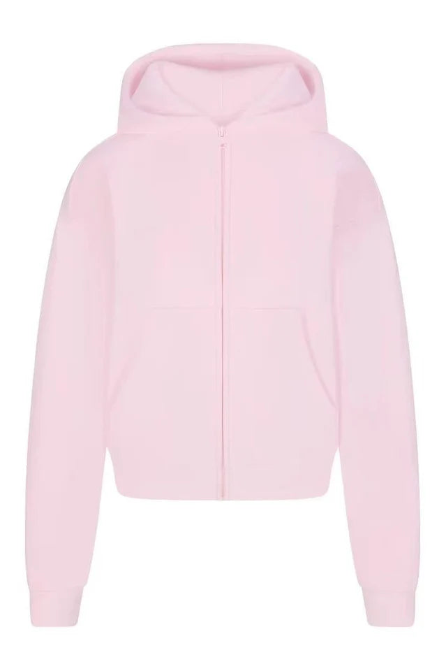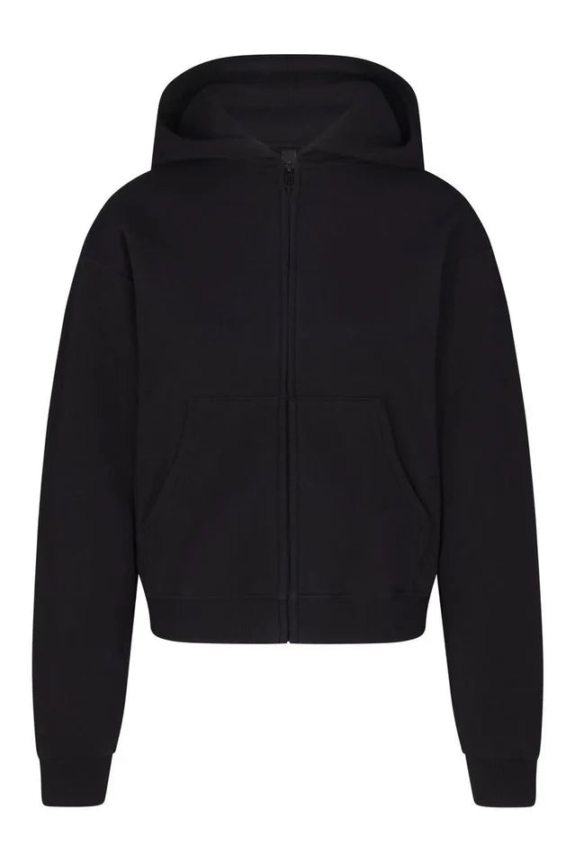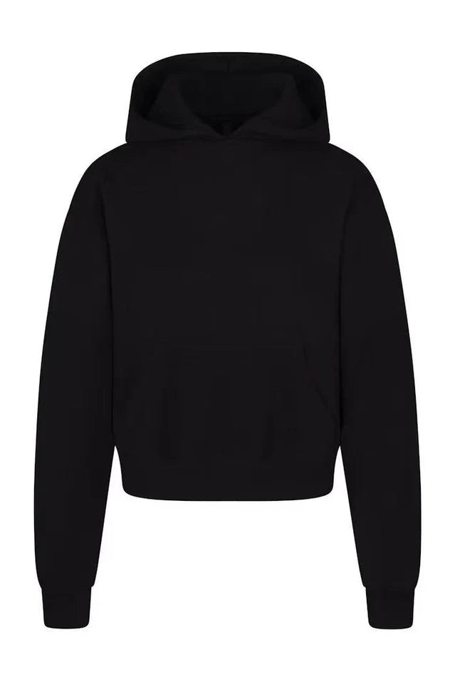 The hoodie that never goes out of style. Made with SKIMS plush, cloud-like fleece and elevated with an embossed logo on the left sleeve above the cuff. This classic fit pullover features a front kangaroo pocket and ribbed details on the cuff and hem. Fits true to size.