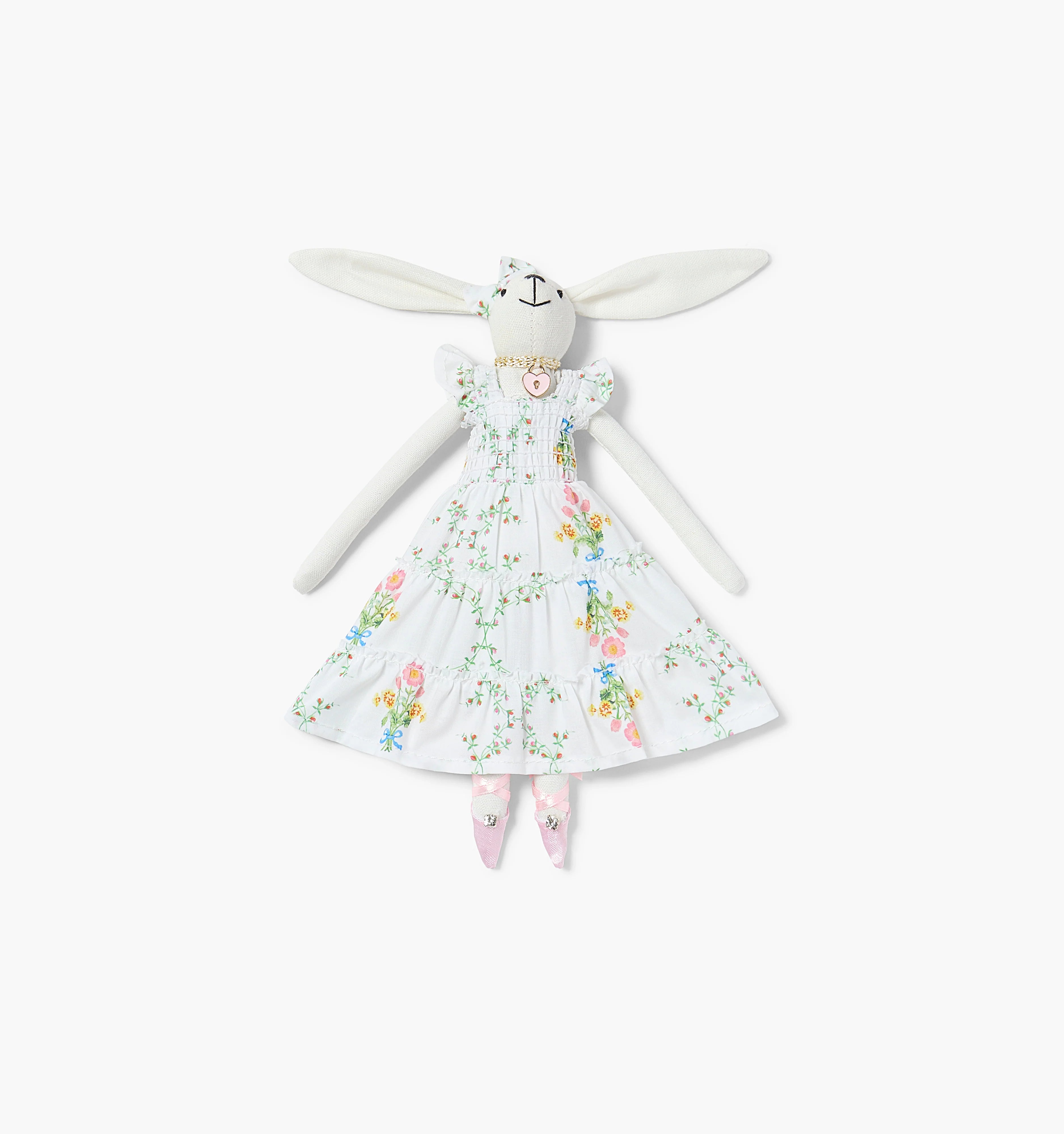 Crafted from leftover fabric scraps that would otherwise go to waste, our new bunny pairs perfectly with your favorite Nap Dresses for the cutest matching moment. Charm necklaces and lace-up ballet flats with rhinestones add a festive, finishing touch.