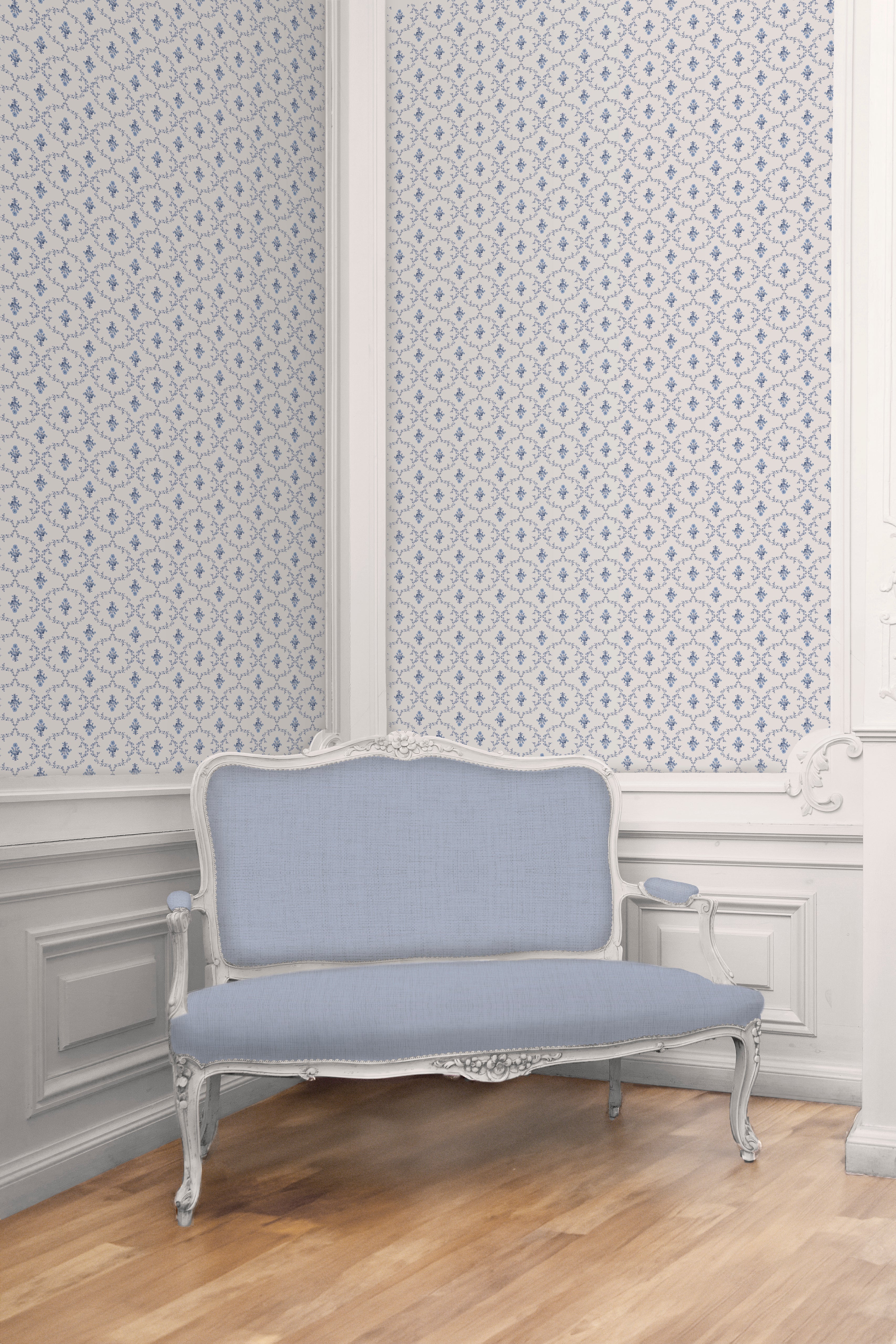 About the PrintInspired by 17th-century French textiles and delicate garden trellises, this print was reimaged in a blue palette after its pastel counterpart sold out almost instantly when it was featured in our English Garden drop in February 2021.