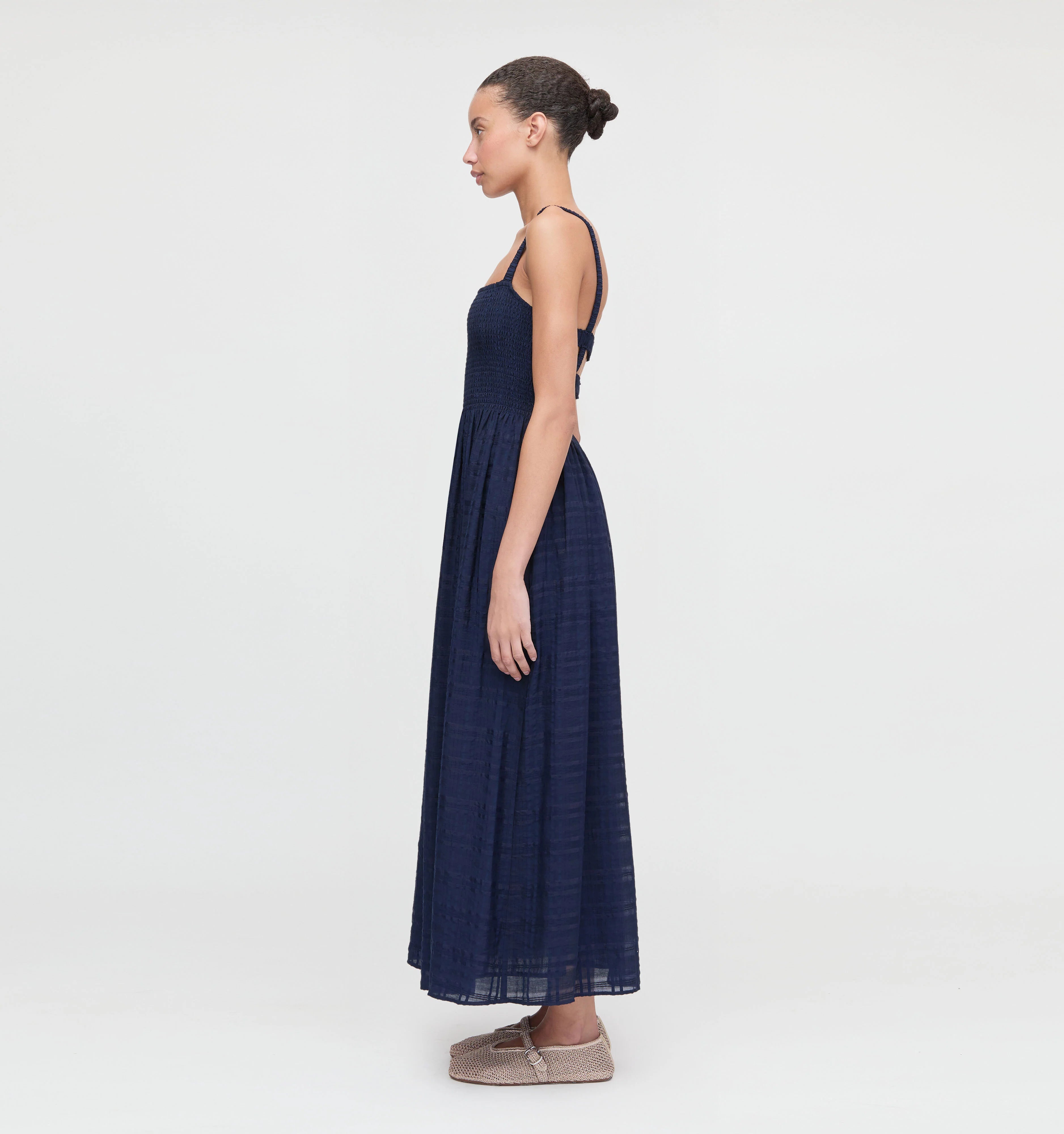 Meet the Anita Nap Dress. Anita features our proprietary, elasticated Nap Smocking across the bodice with a decorative tie detail at the waist. Anita’s back offers a modern, feminine twist: two horizontal smocked straps create an open back design perfect for warm summer nights.