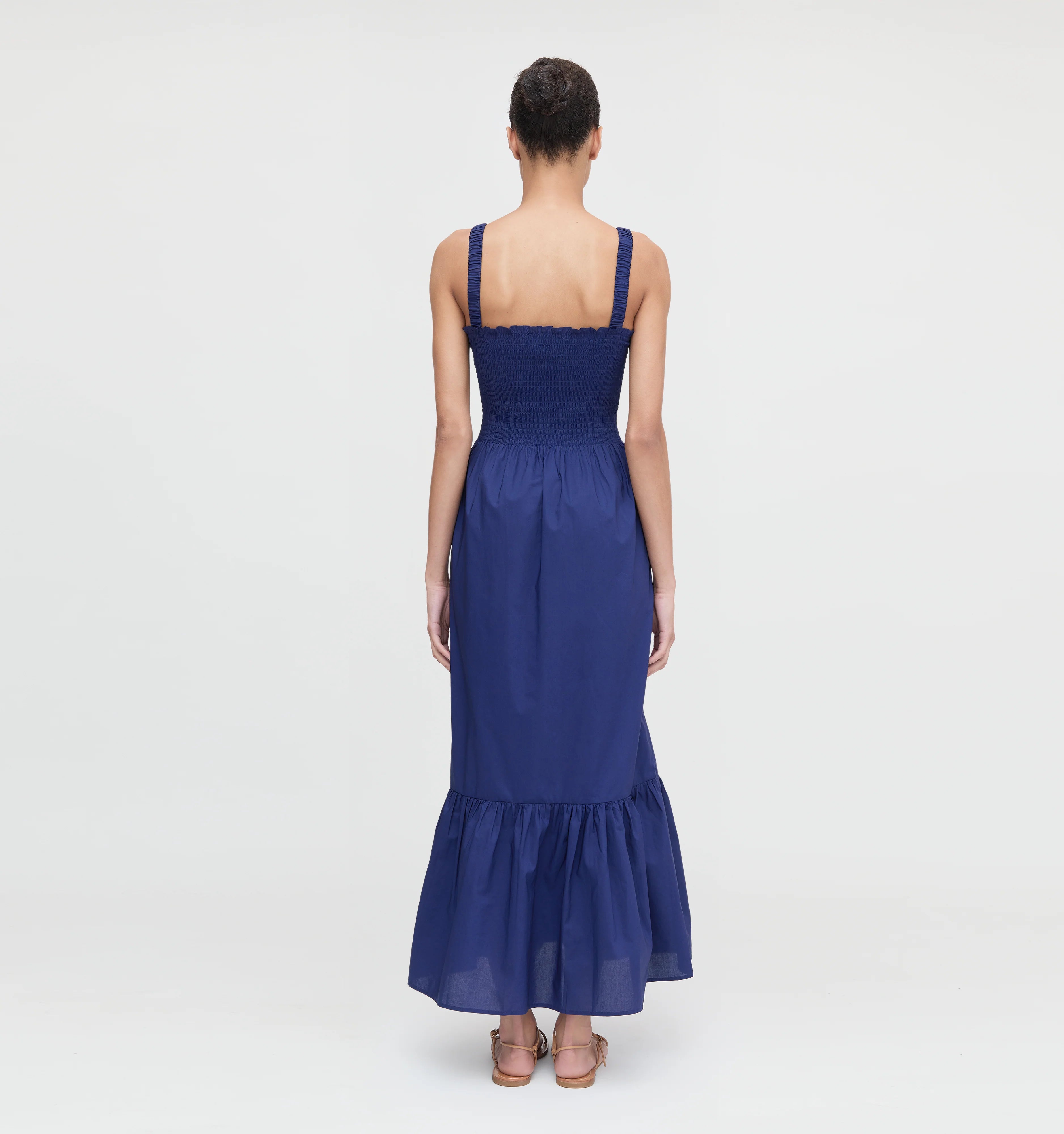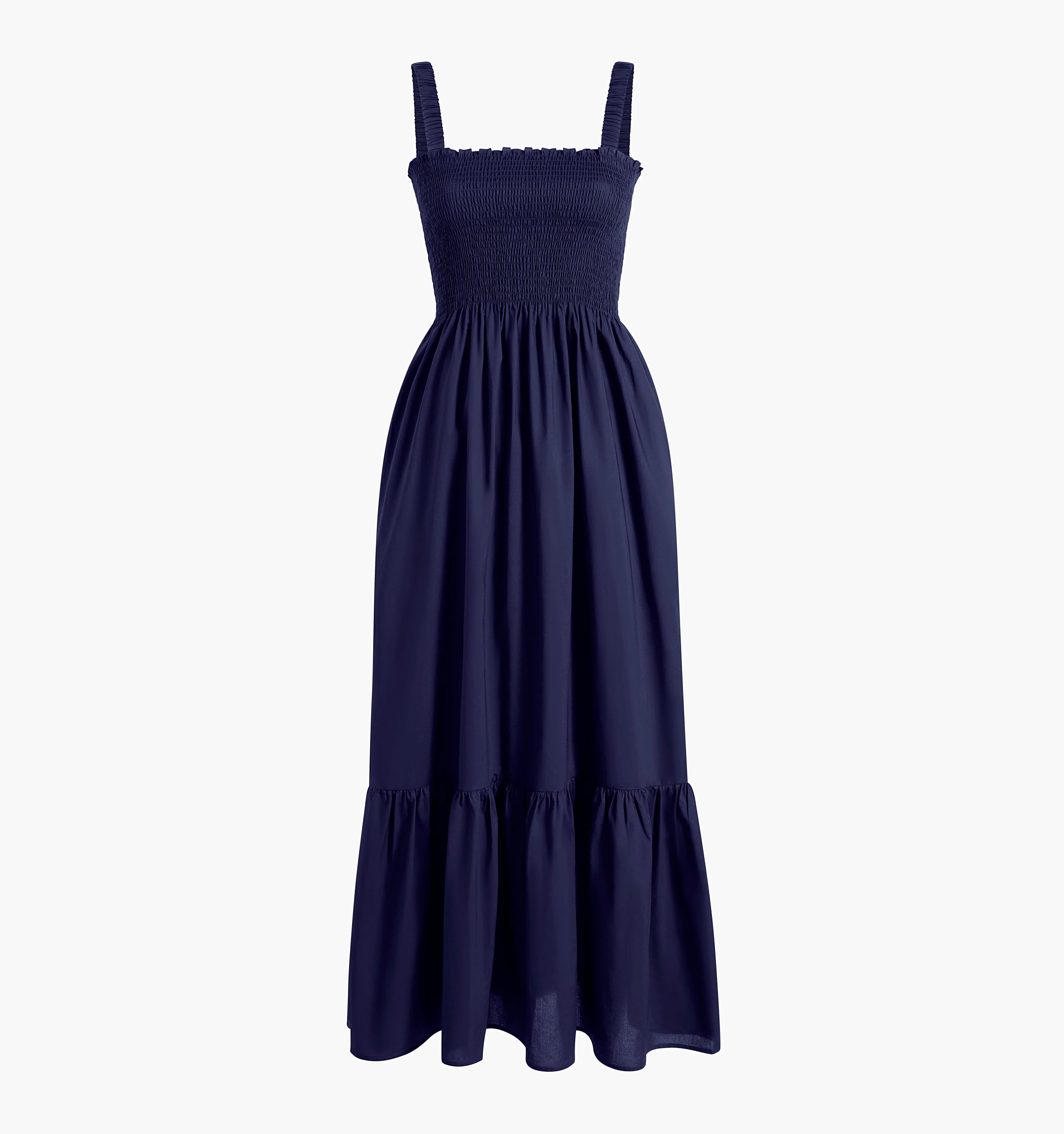 Meet the Anjuli, our sleeveless maxi Nap Dress® that’s as perfect for layering as it is for wearing on its own. It features our signature smocked bodice, elastic straps for a flexible fit, a slim maxi skirt, and a flirty, flouncy hem.