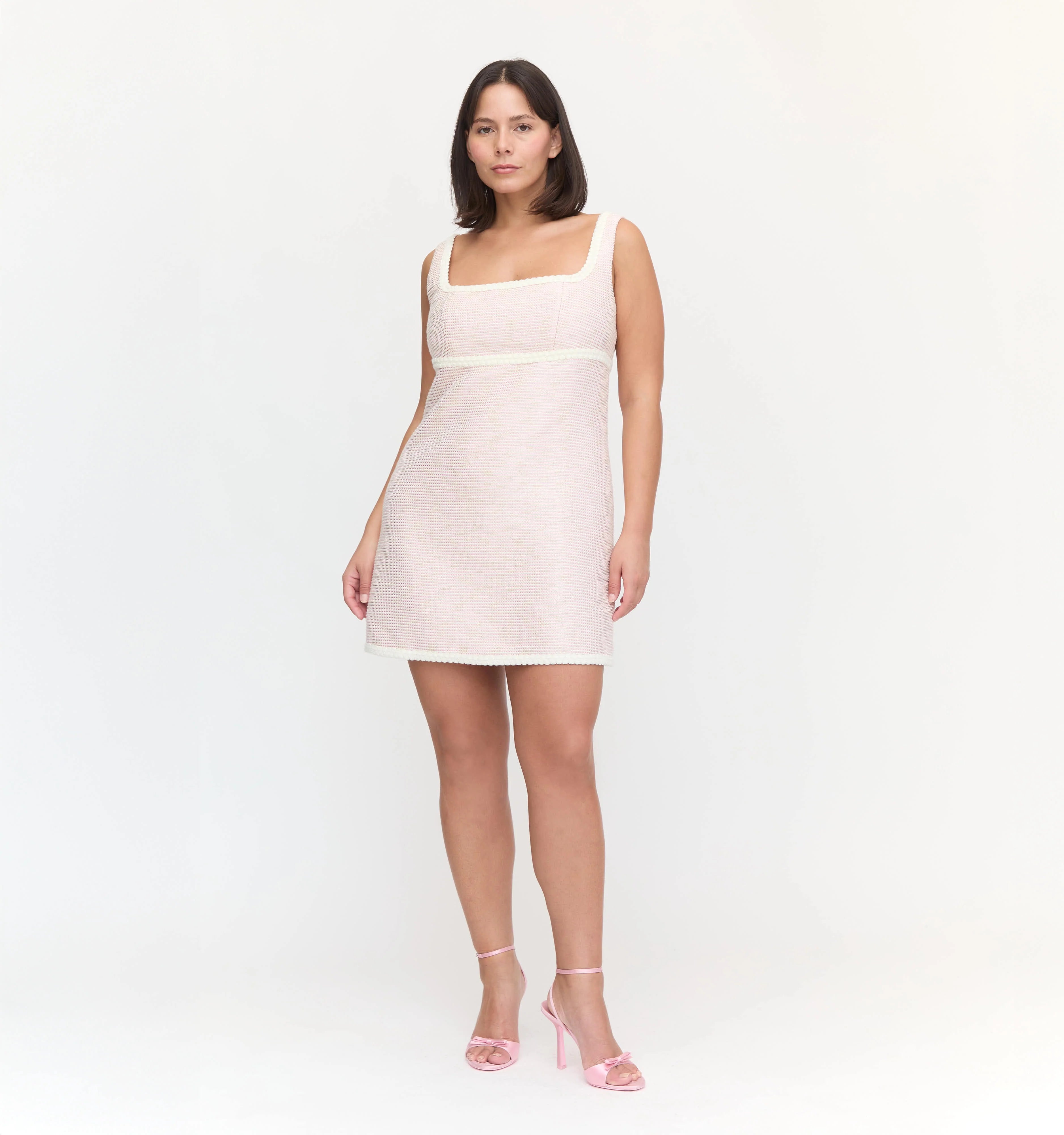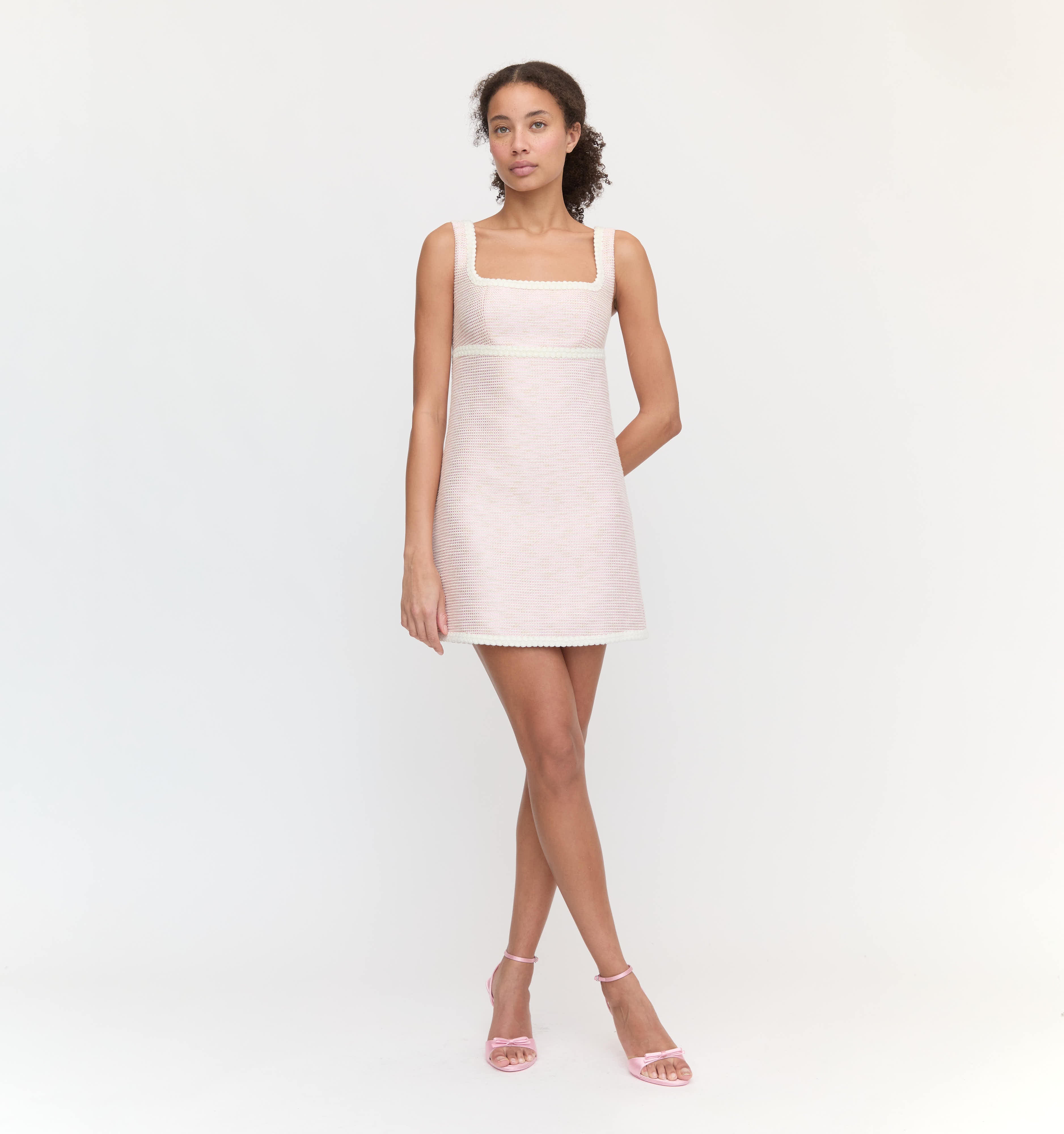 Meet the Bennett Dress. Bennett is a tweed dress and features an empire waist and fit-and-flare skirt. Make it a set with the Bernadette Jacket.