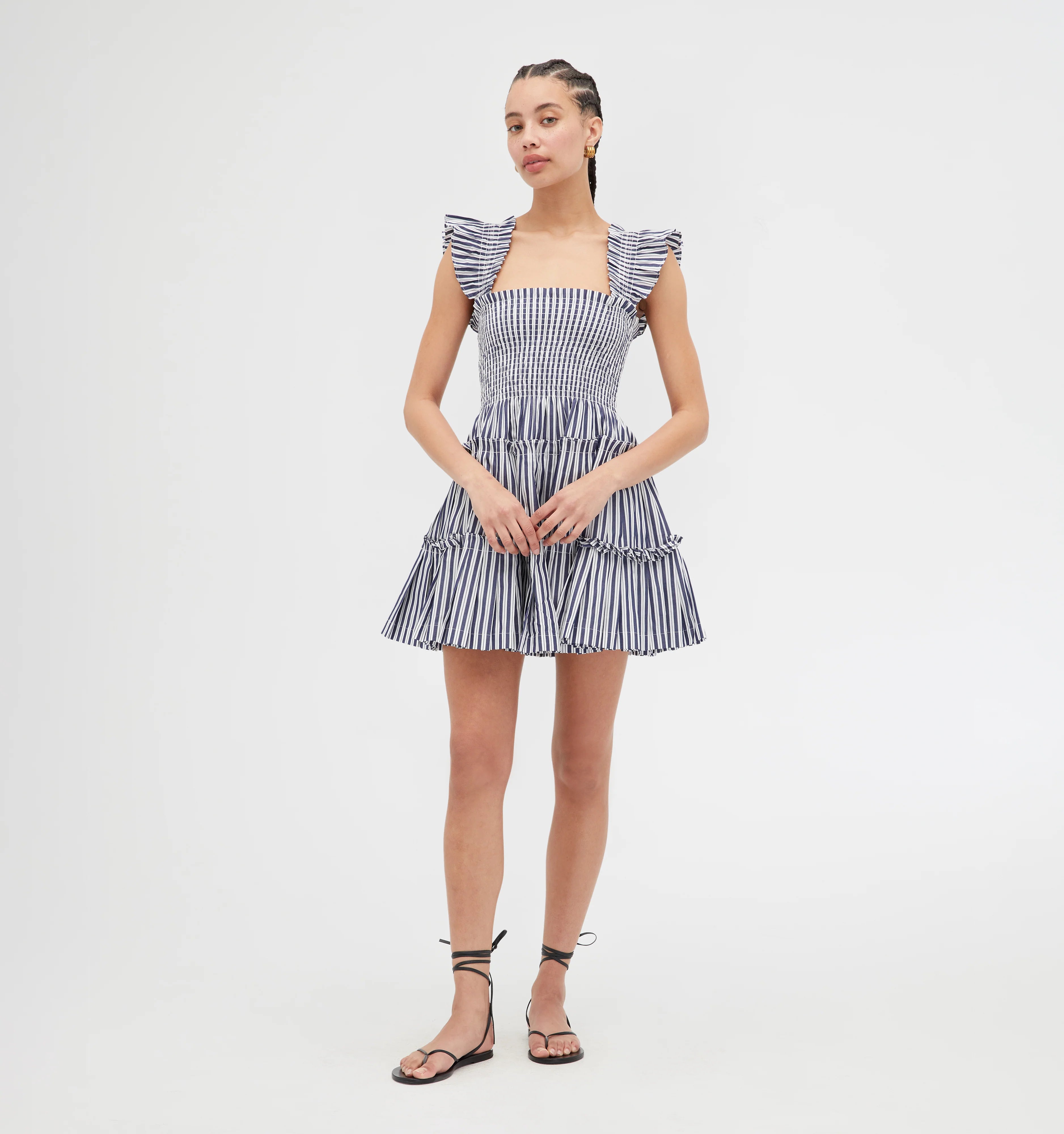 Meet the Charlotte Nap Dress. Charlotte’s power lies in the mini, pleated skirt. To the naked eye it may look like a simple tiered skirt, but oh – the pleats! The Design Team tells me they are called knife pleats. Combined with two ruffled tiers, the pleats give this mini skirt max volume for a flirty flare. A square neckline, fully smocked bodice and ruffled sleeves make it as comfortable as it is chic.