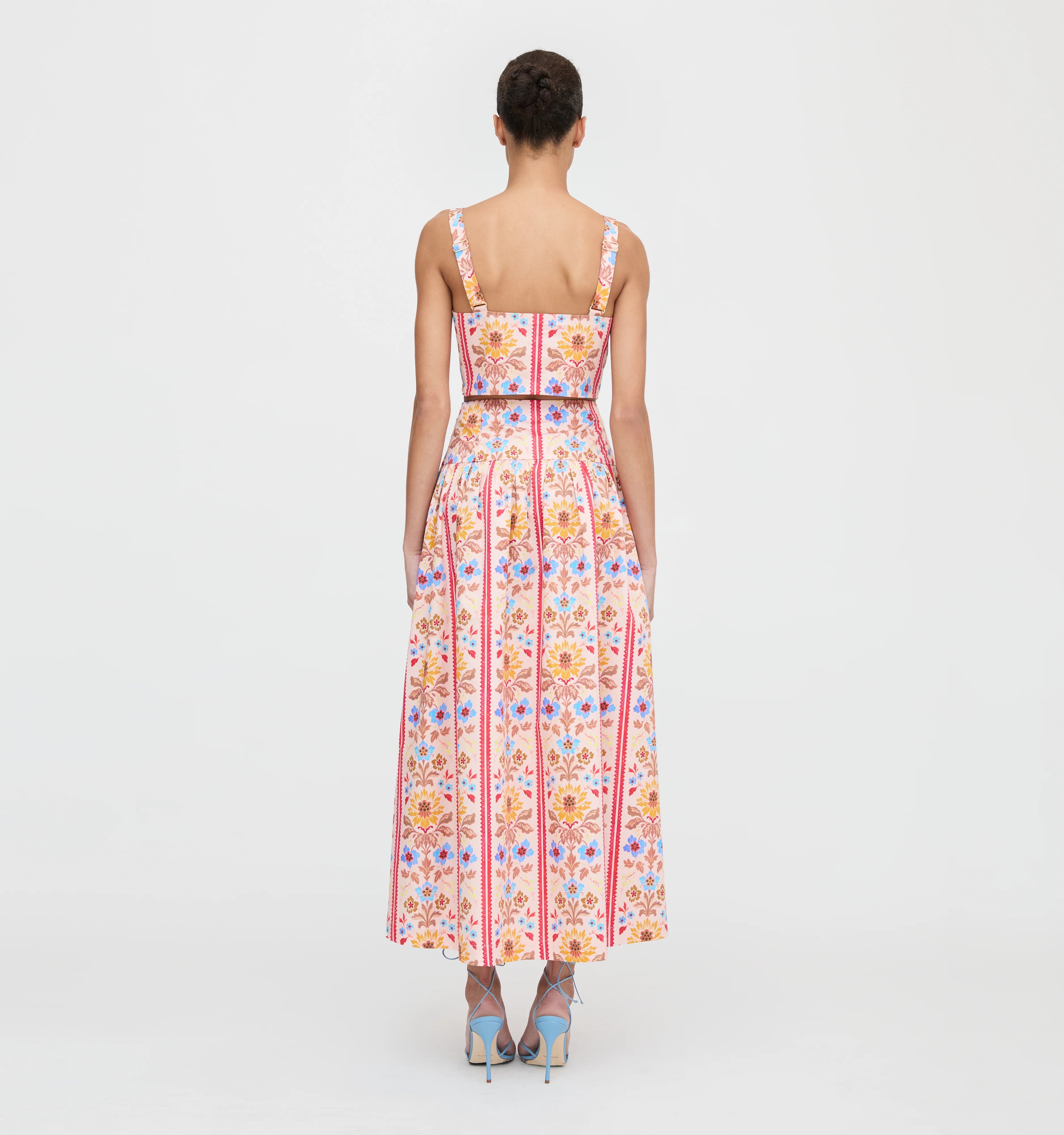 Meet the Clara Crop Top. Clara is a boxy crop top with a square neckline and adjustable straps. Make it a set with the Kate Midi Skirt.