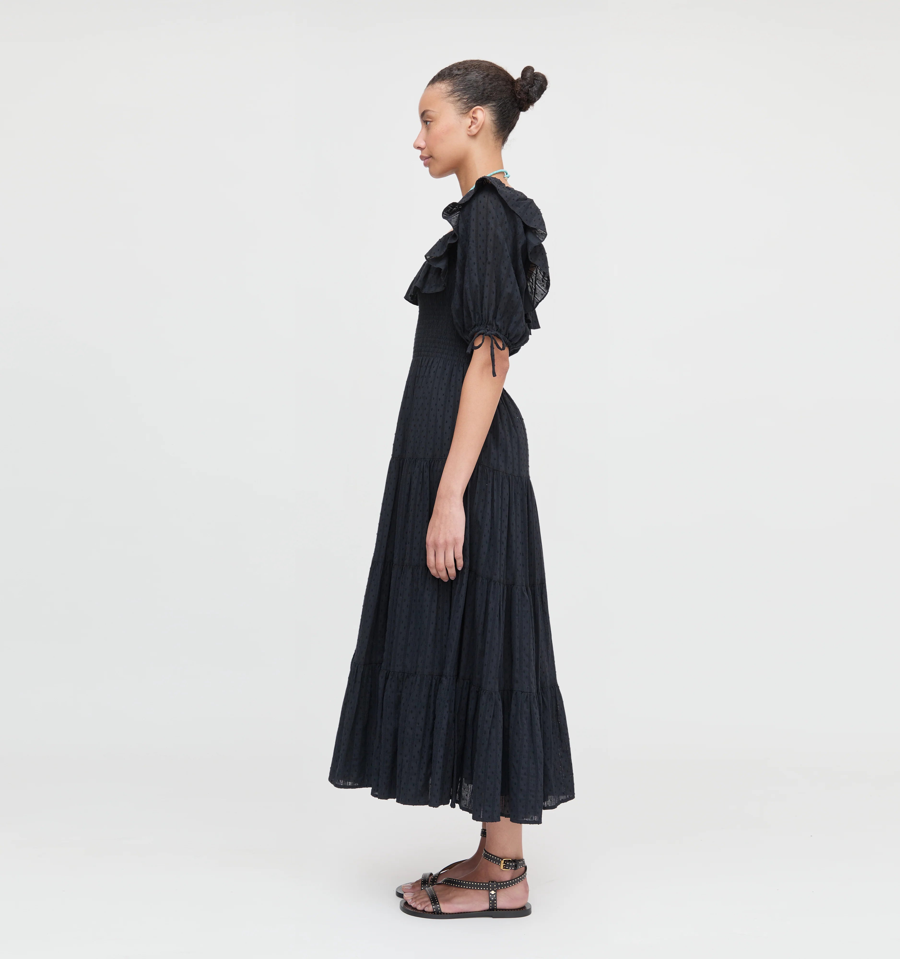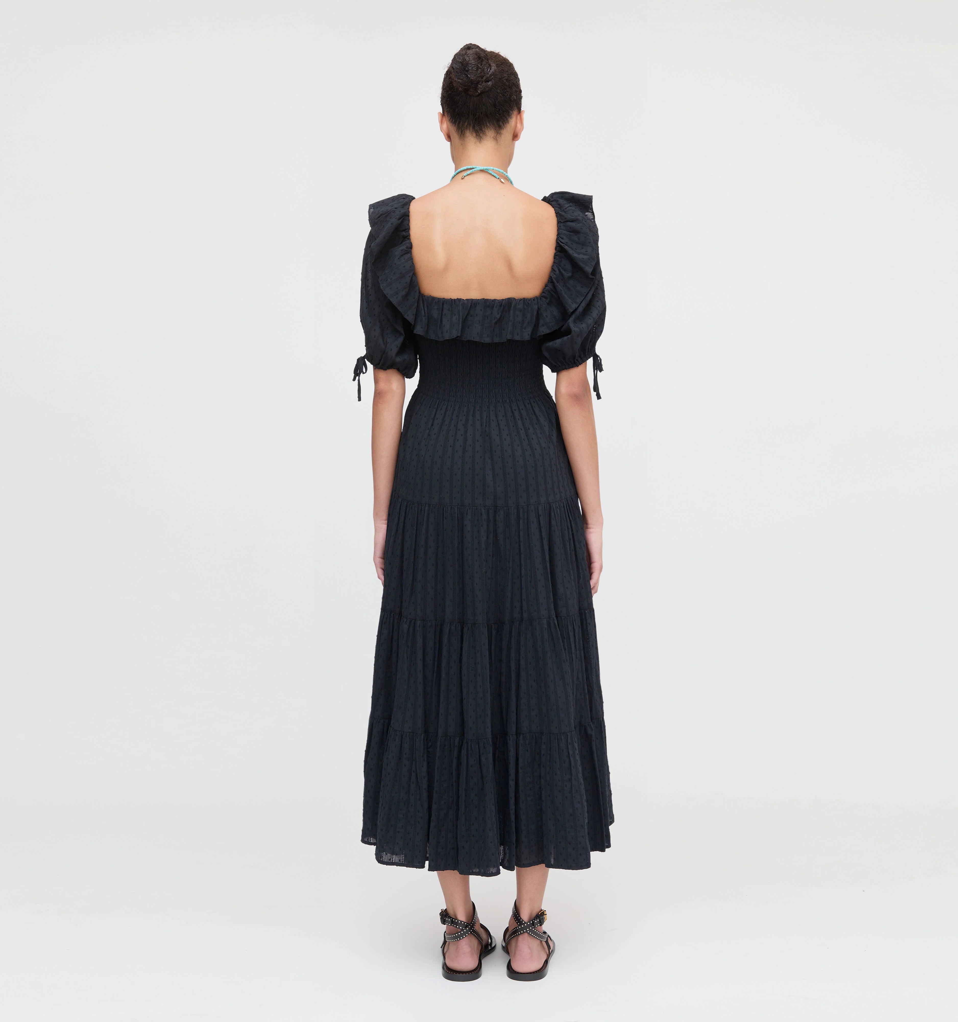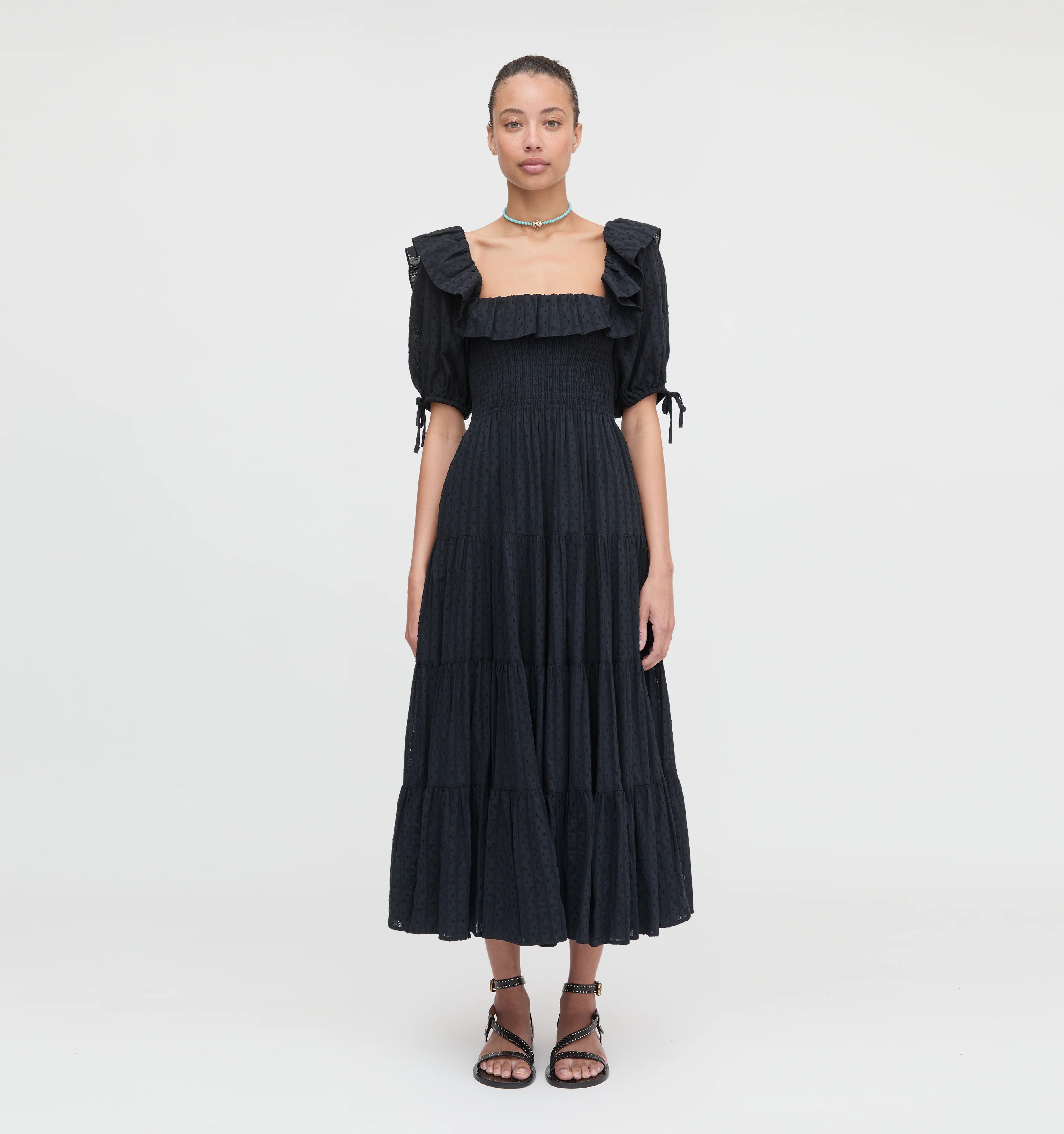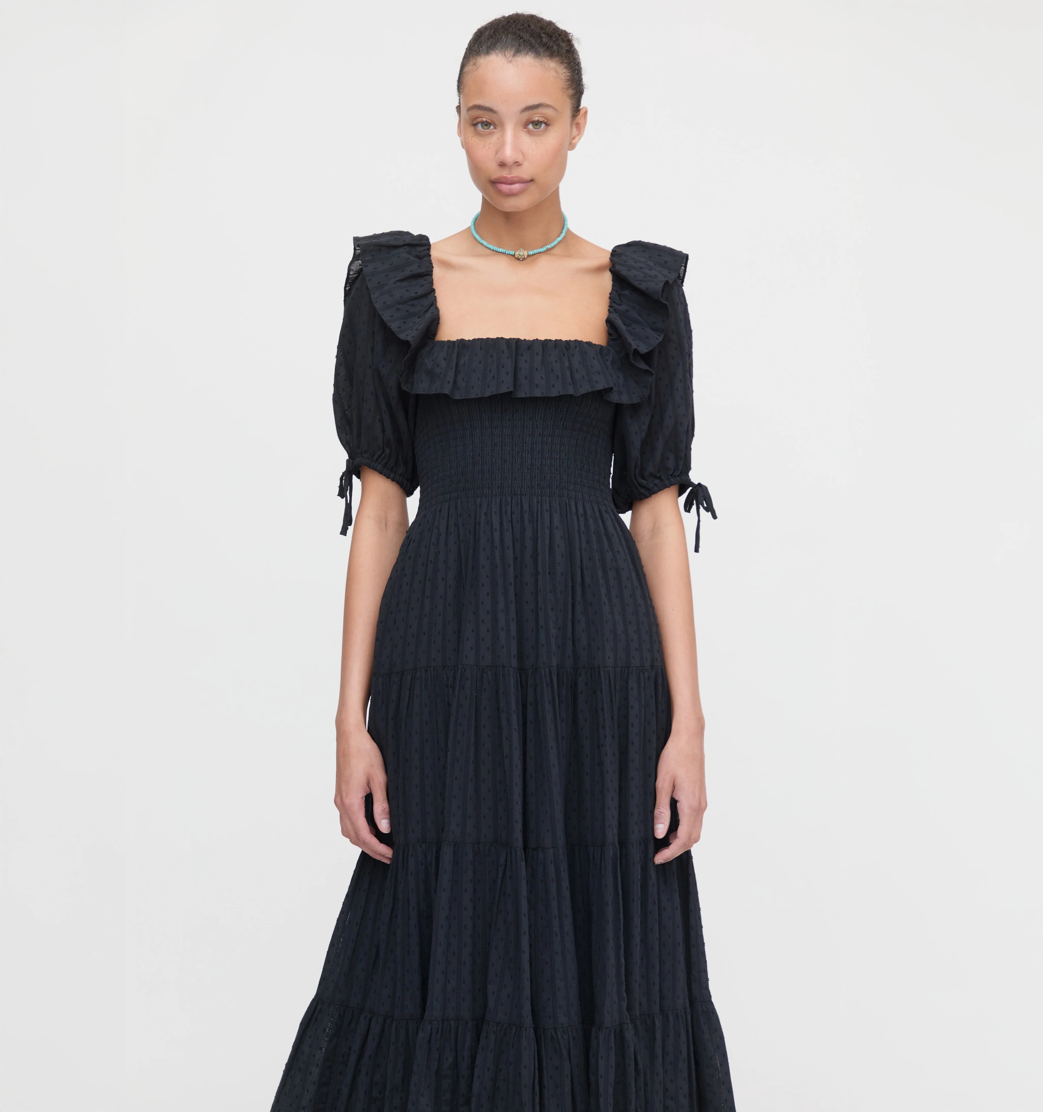 Corinne is made for baking pancakes from scratch from organic eggs that you plucked out of the chicken coop with a baby on your hip or, you know, catching the 1 train to midtown on a Thursday. Corinne is cottage core with just a little bit of attitude. We love the square neck and the easy midi sleeve.
