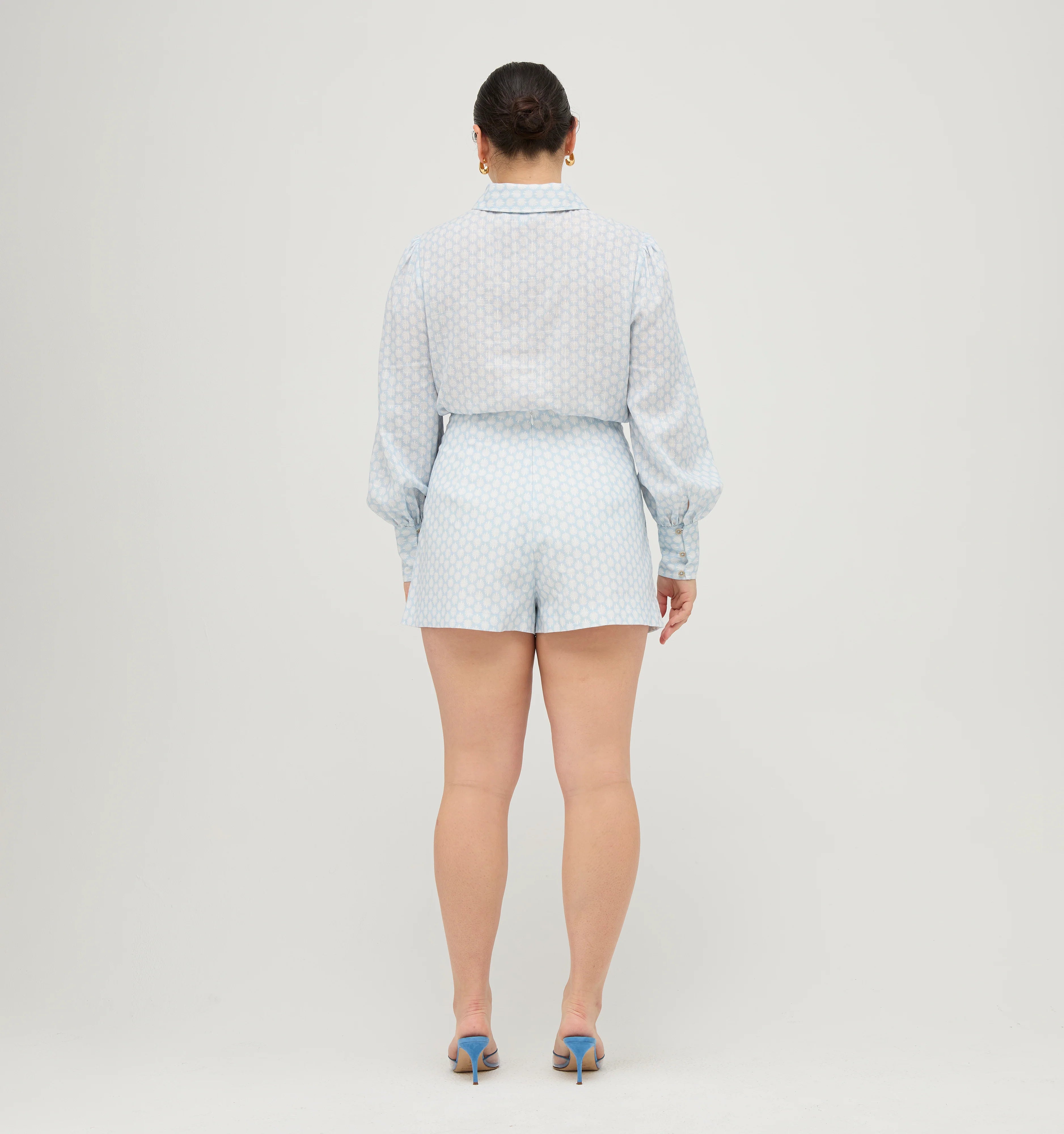 Meet the Dorothea Top. Dorothea features polished details like a crisp collar, cuffed sleeves and mother of pearl buttons. Make it a matching set with the Lycette Short or the Mini Ballerina Skirt.
