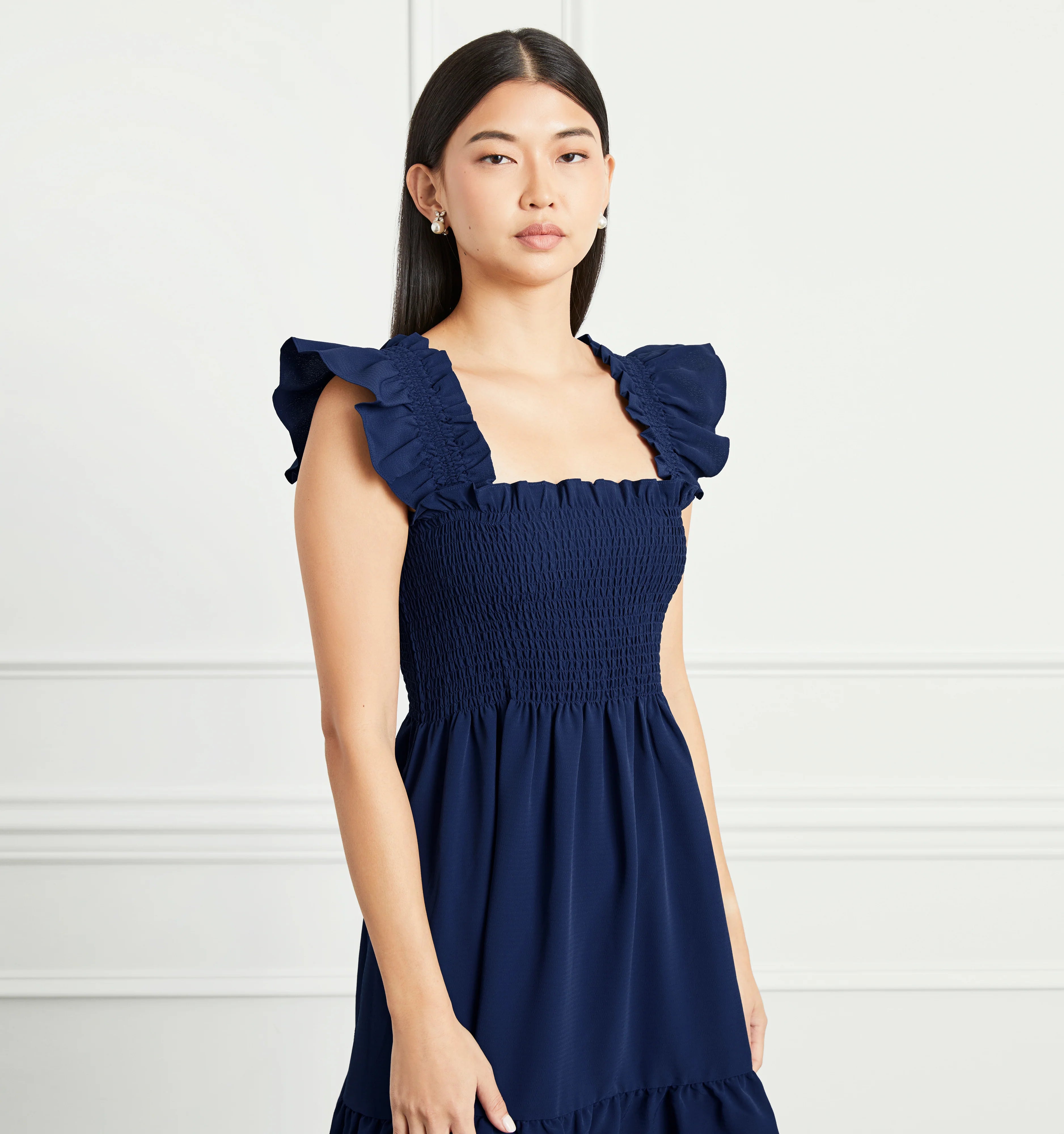 The Elizabeth is an A-line Nap Dress® with elasticated smocking, ruffled shoulders, a mini-length skirt (now two inches shorter), and pockets. It’s a shorter version of our bestselling Ellie Nap Dress®.