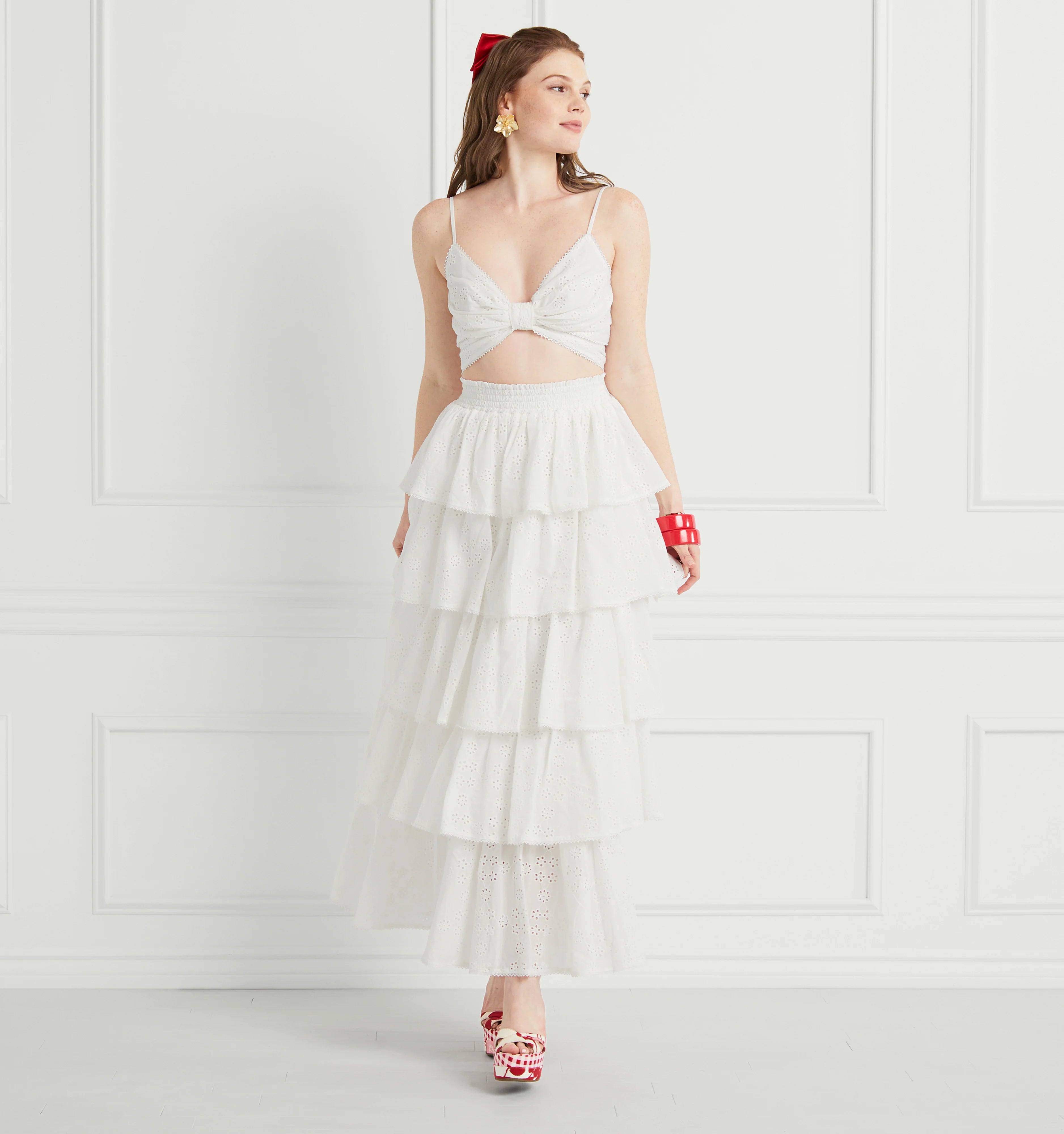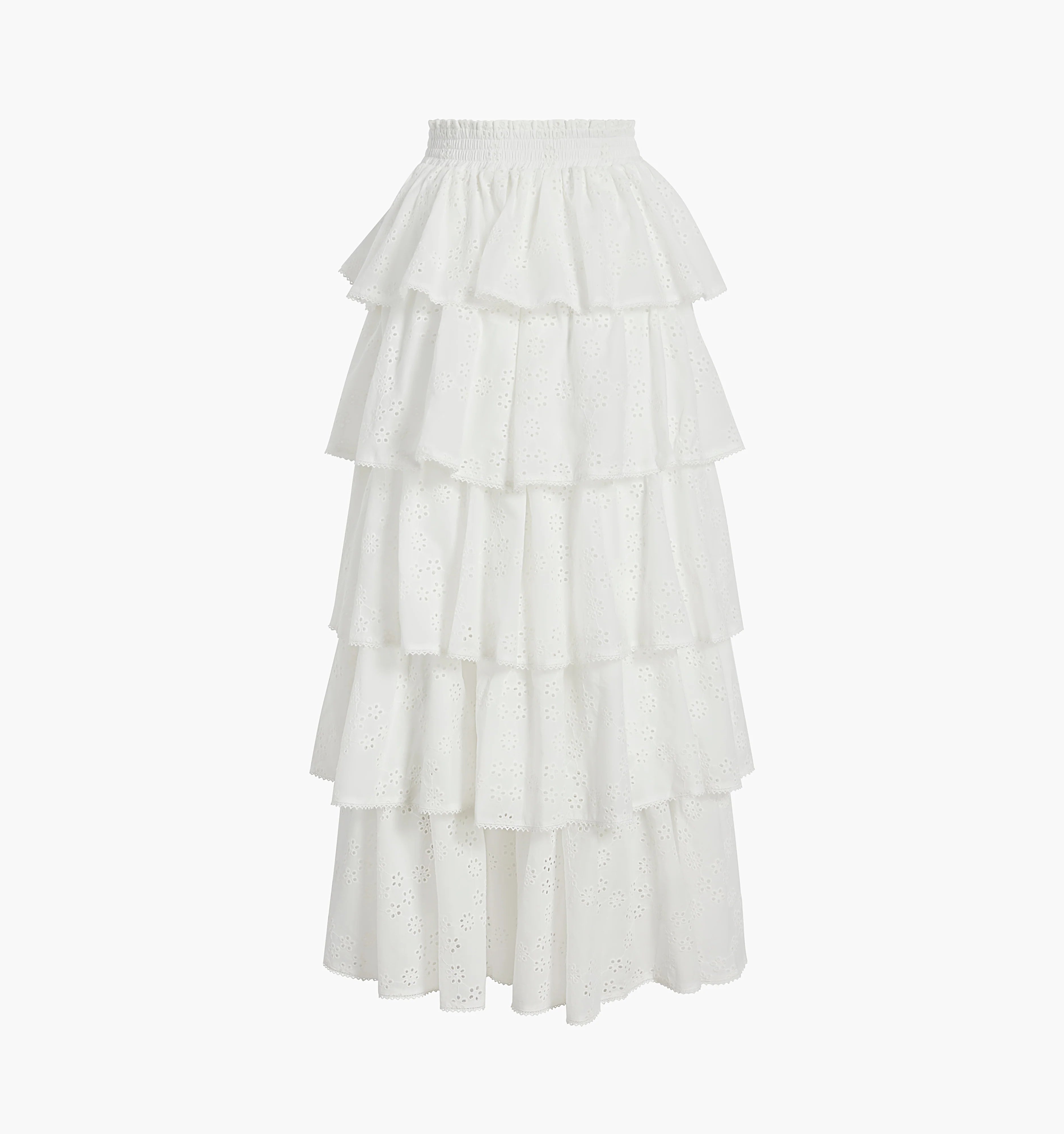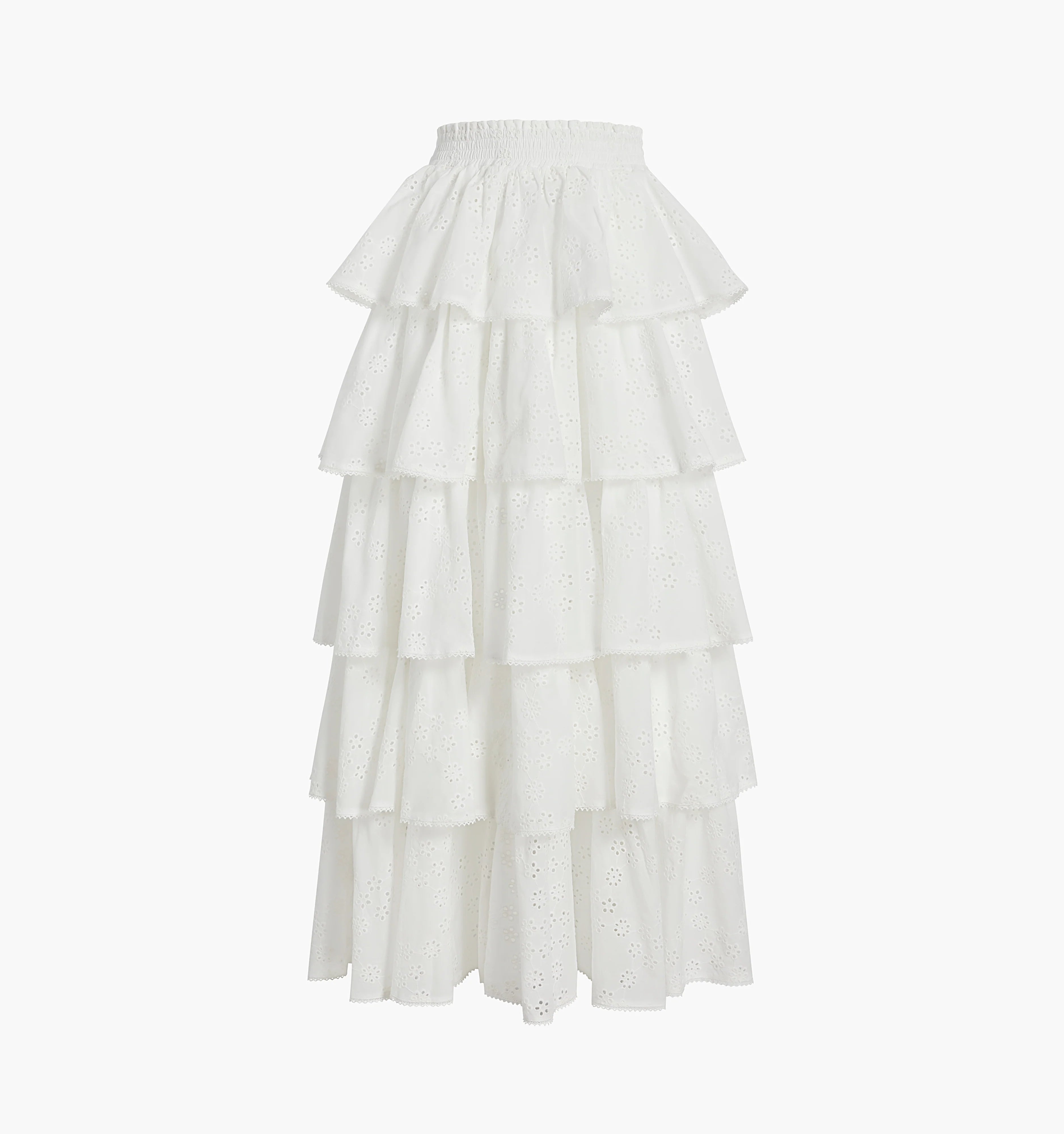 Meet The Noemie Skirt, a closet must-have with a flattering high-waisted fit. With long flowy tiers and elasticated smocking, the Noemi is fun, flirty, and ready to dance the night away with you.