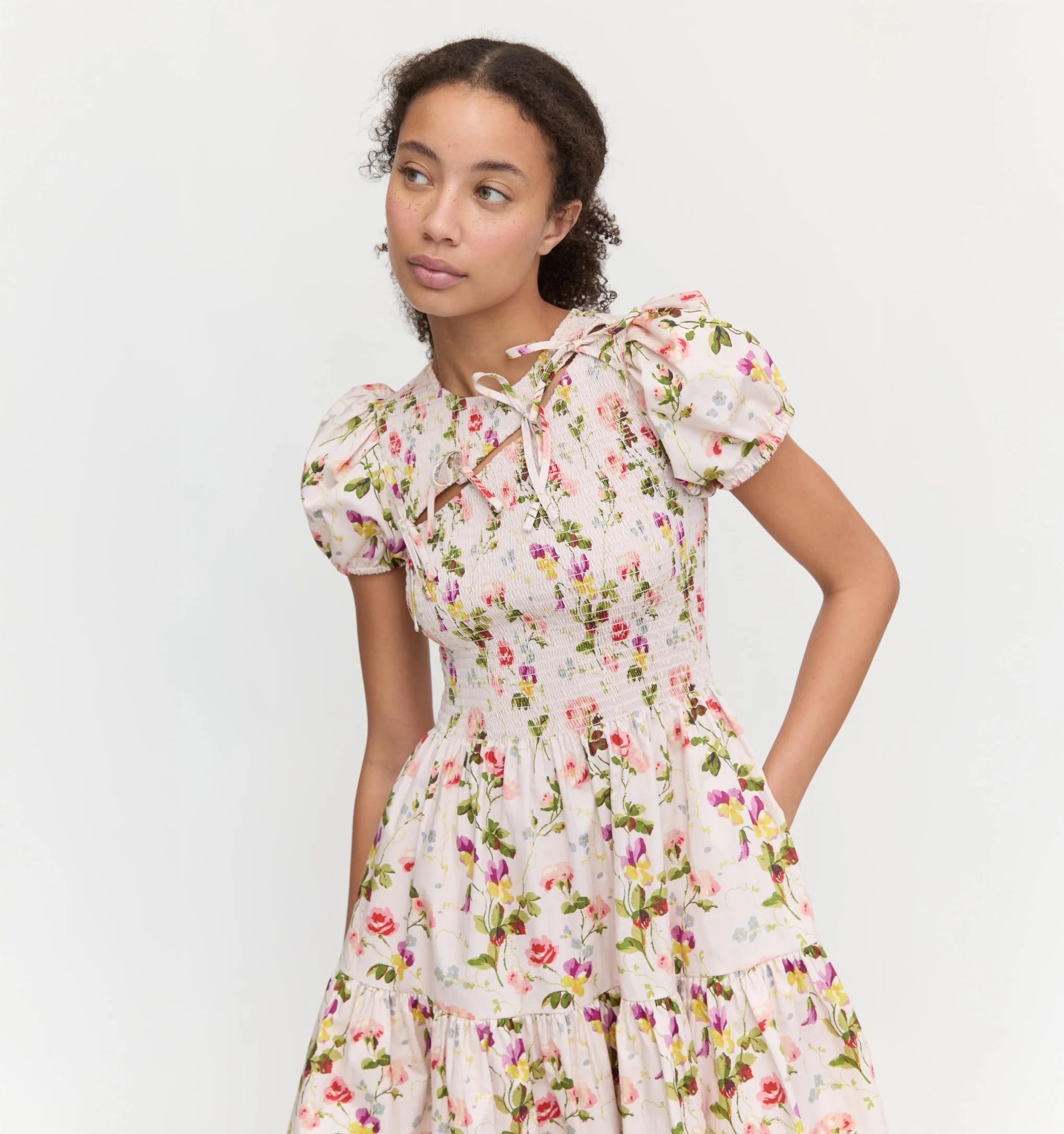 Meet the Gia Mini Dress. We first teased this style on TikTok and, according to the comment section, you couldn’t WAIT to learn more about her. Gia is a fit and flare mini dress that features our proprietary, elasticated Nap Smocking and a cross-front cut-out with self-tie bow details. The cut-outs sit just above the chest.