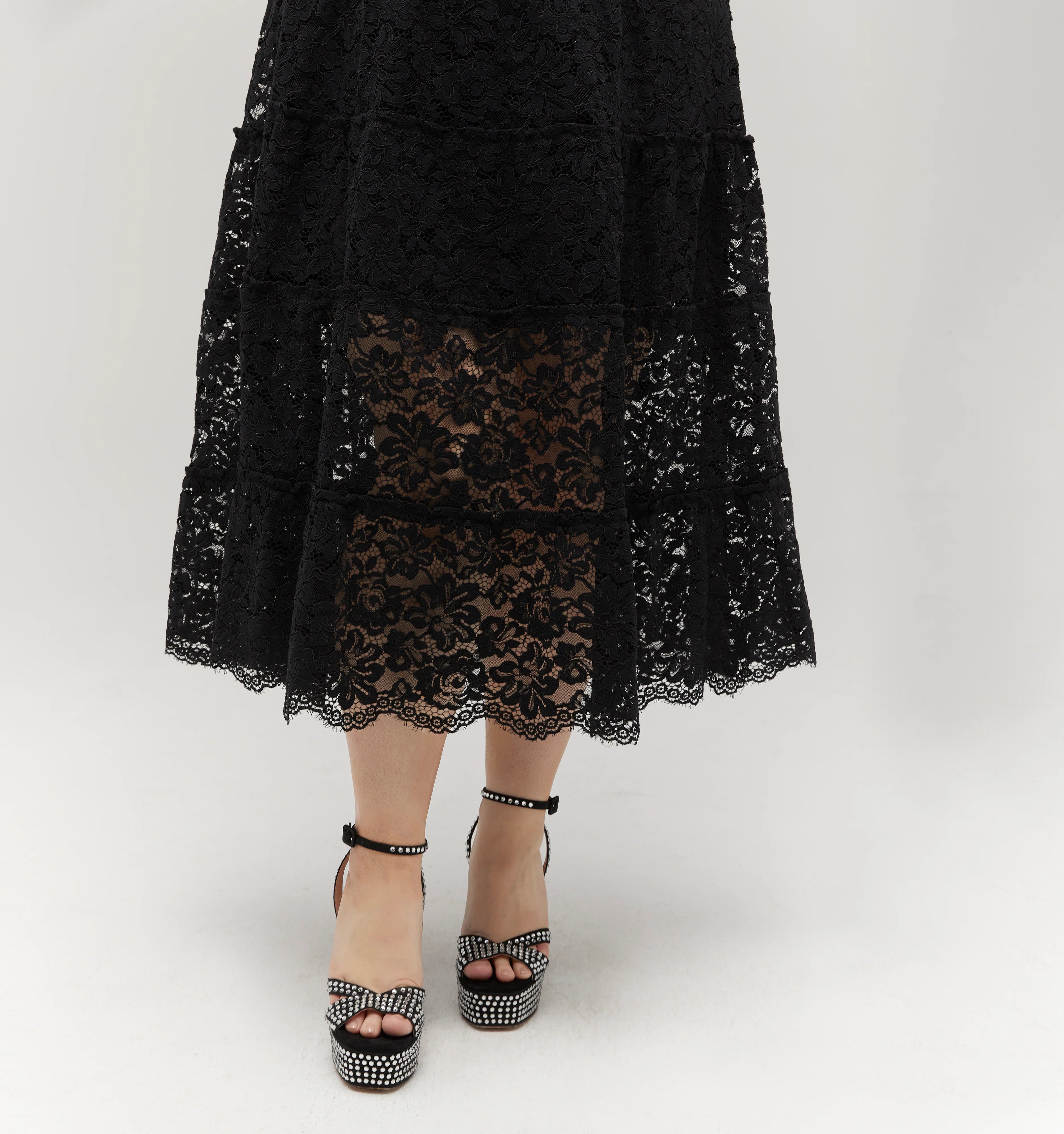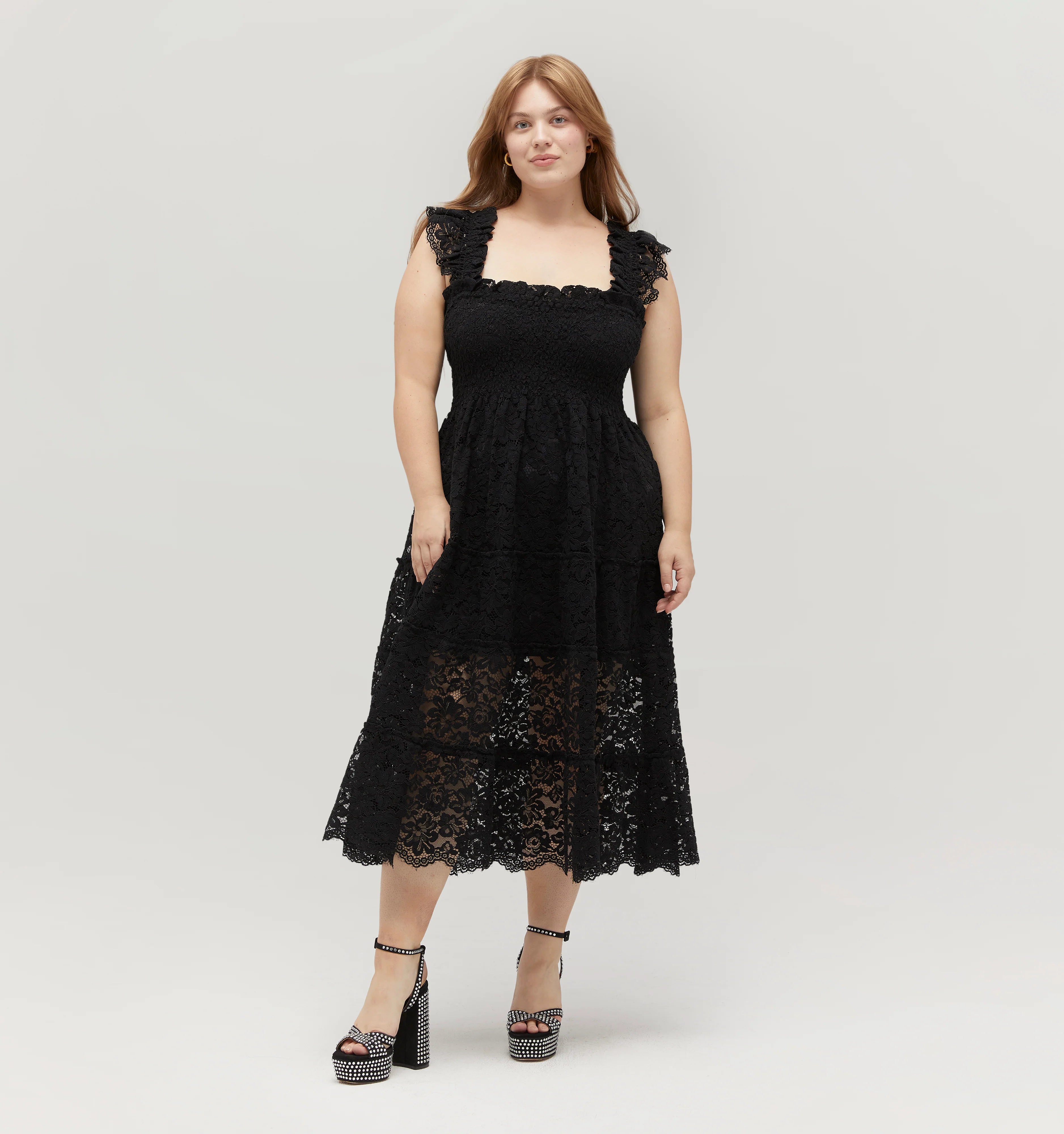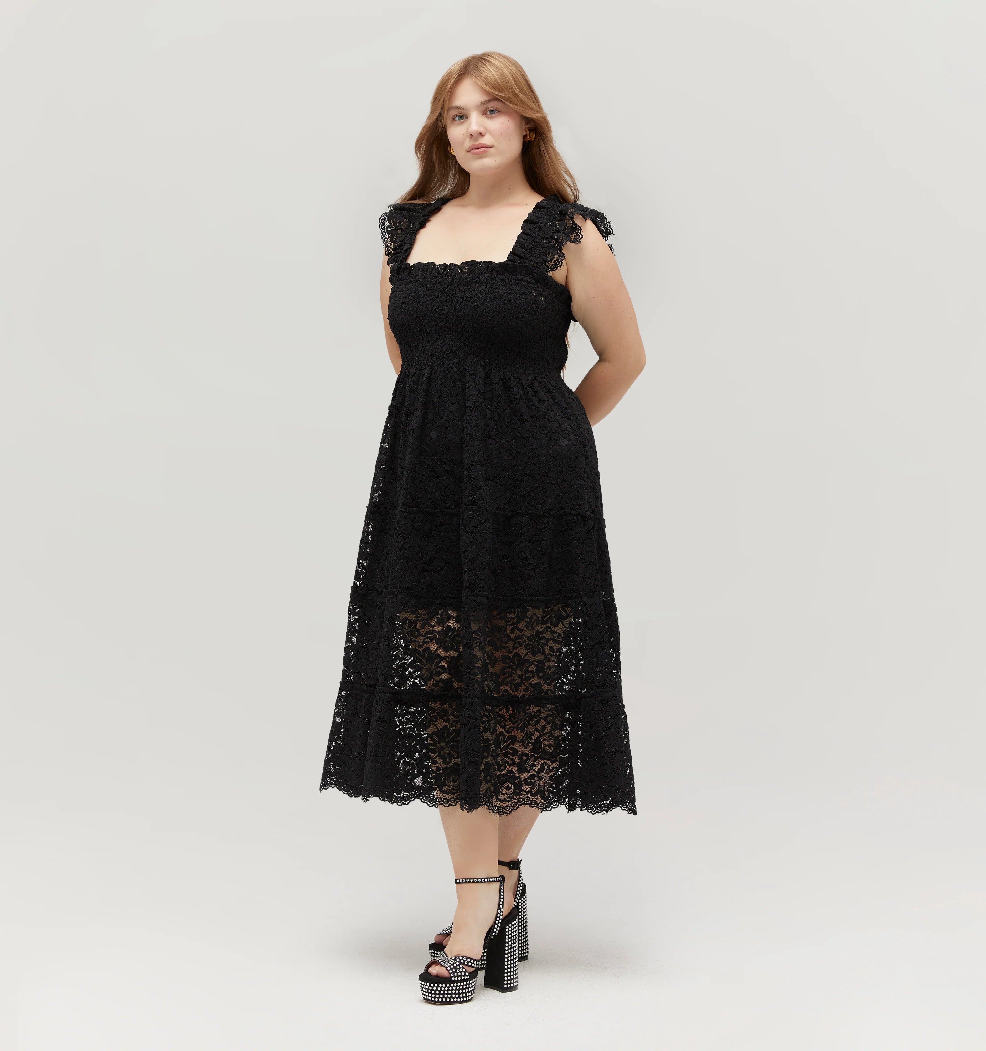 The Ellie Nap Dress® in Sheer Lace is unlined and sheer; we recommend styling it over a slip, a bodysuit or a great pair of denim.