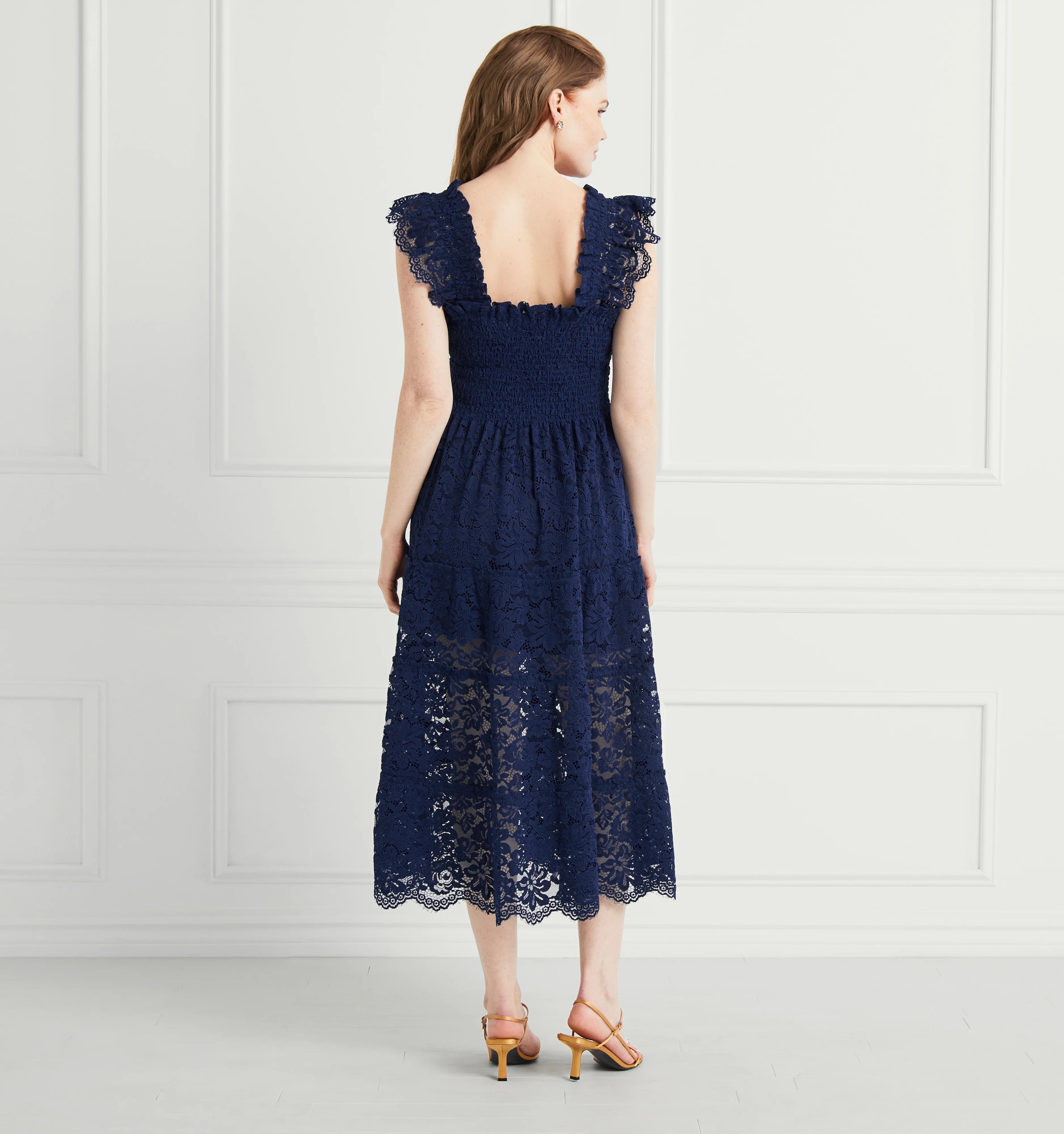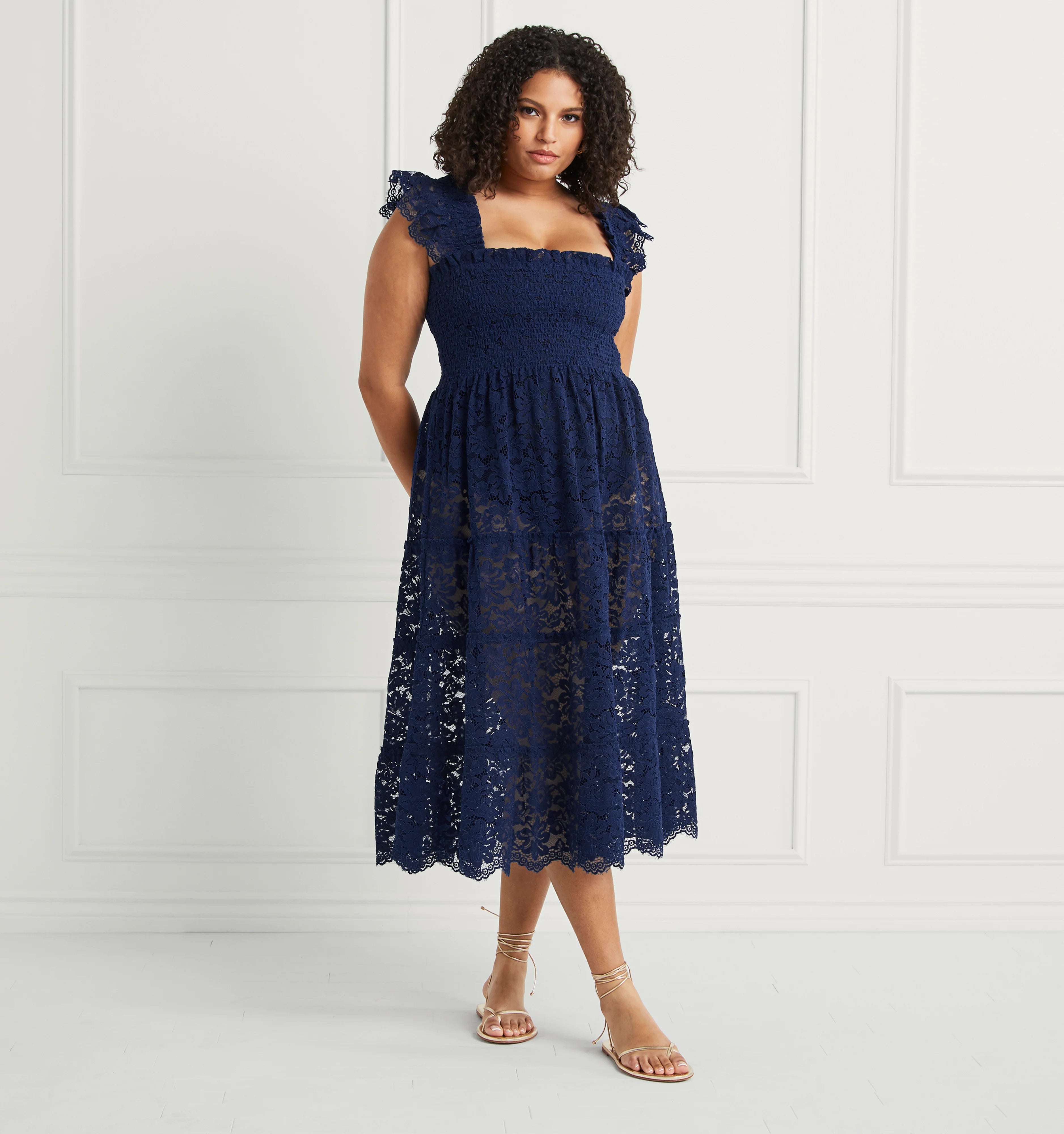 The Collector’s Edition Ellie is an unlined A-line Nap Dress® with our proprietary, elasticated Nap Smocking, ruffled shoulders and a tiered midi skirt.