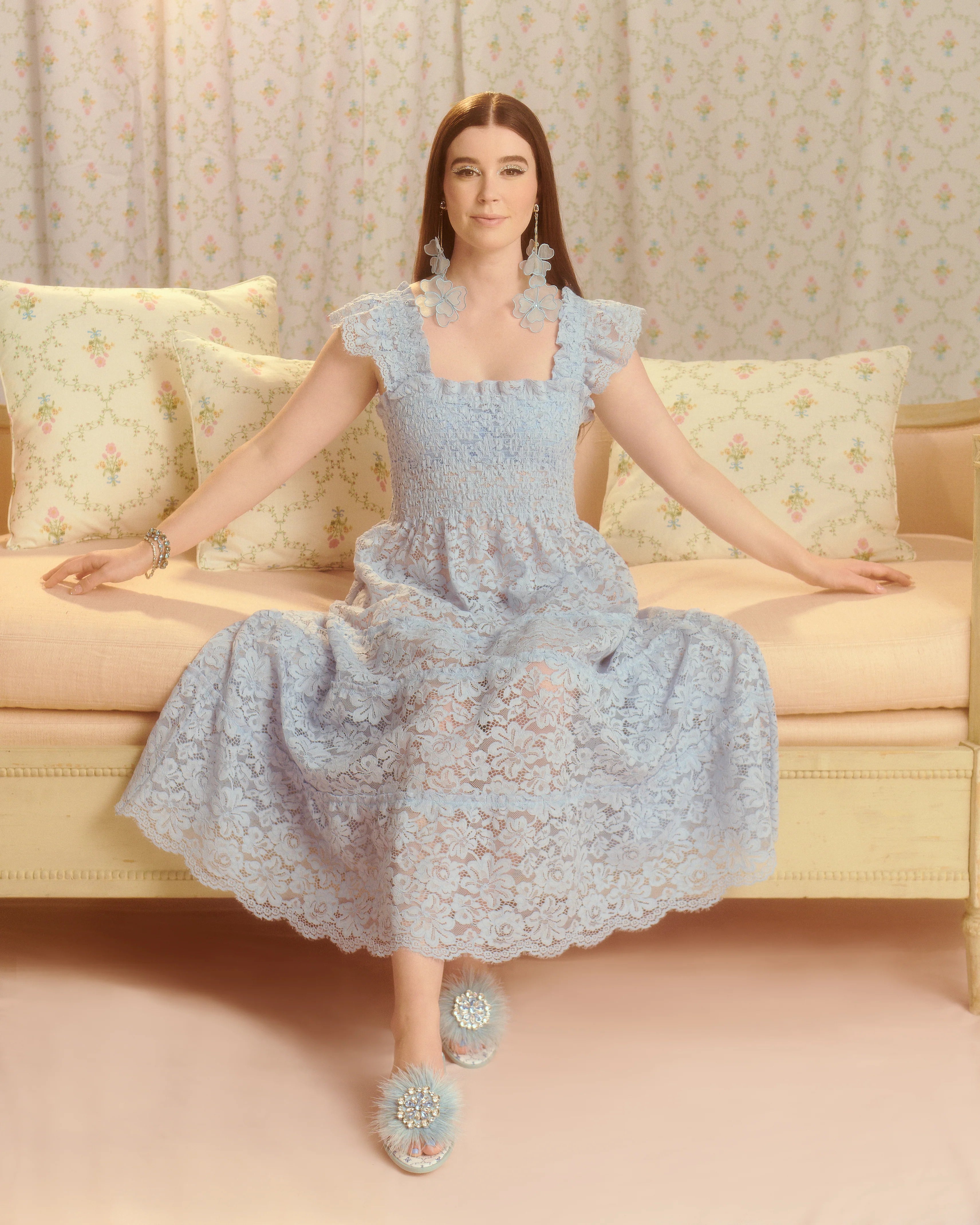 The Ellie Nap Dress® in Sheer Lace is unlined and sheer; we recommend styling it over a slip, a bodysuit or a great pair of denim.
