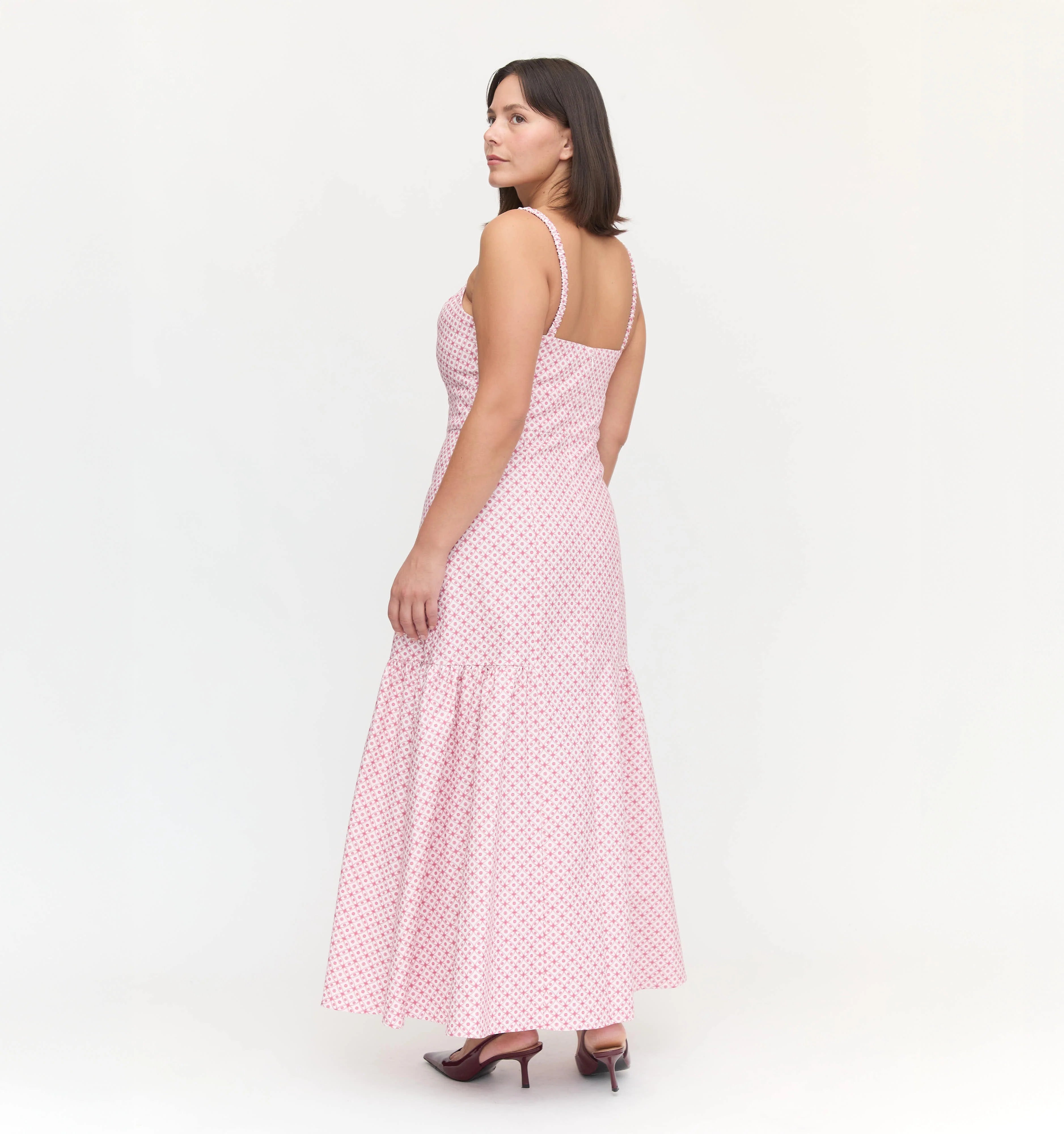 Meet the Lillie Dress. Wedding guests, this one's for you. Lillie has a flattering comfortable fit thanks to its corset-like bodice and fully adjustable neckline. Ophelia fans – Lillie features the same functional drawstring tie along the neckline so you can customize your fit. The midi skirt features side panels for added movement.