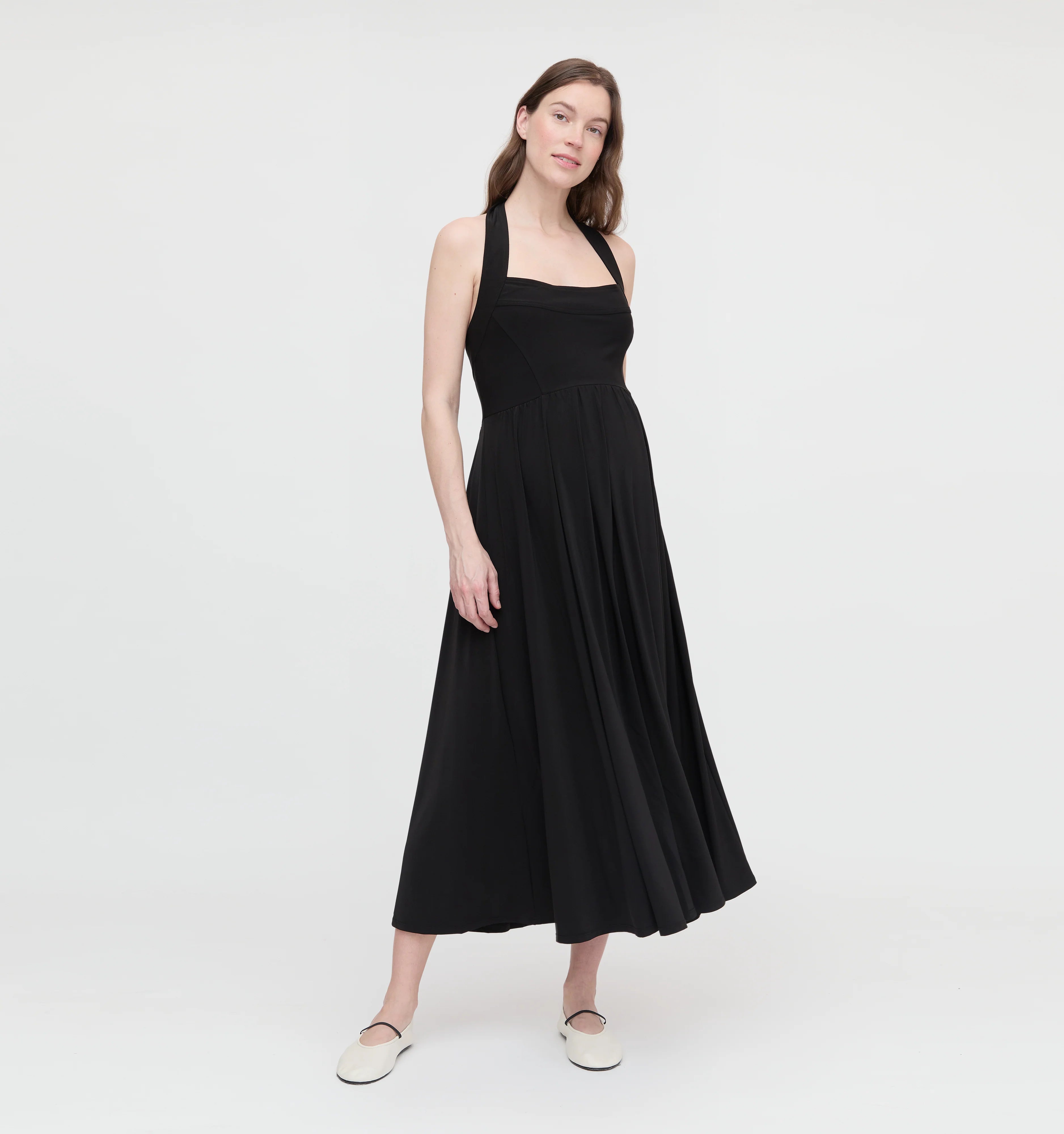 Meet the Fleur Midi Dress. The Design Team presented themselves with a simple, but taxing assignment: The perfect summer halter dress. Must work for all summer events from formal weddings to a bagel run. I must say, as a copywriter who has tried this fabulous, midi dress on, they nailed it. The halter neck features functional ties and creates a flattering, subtle square neckline.
