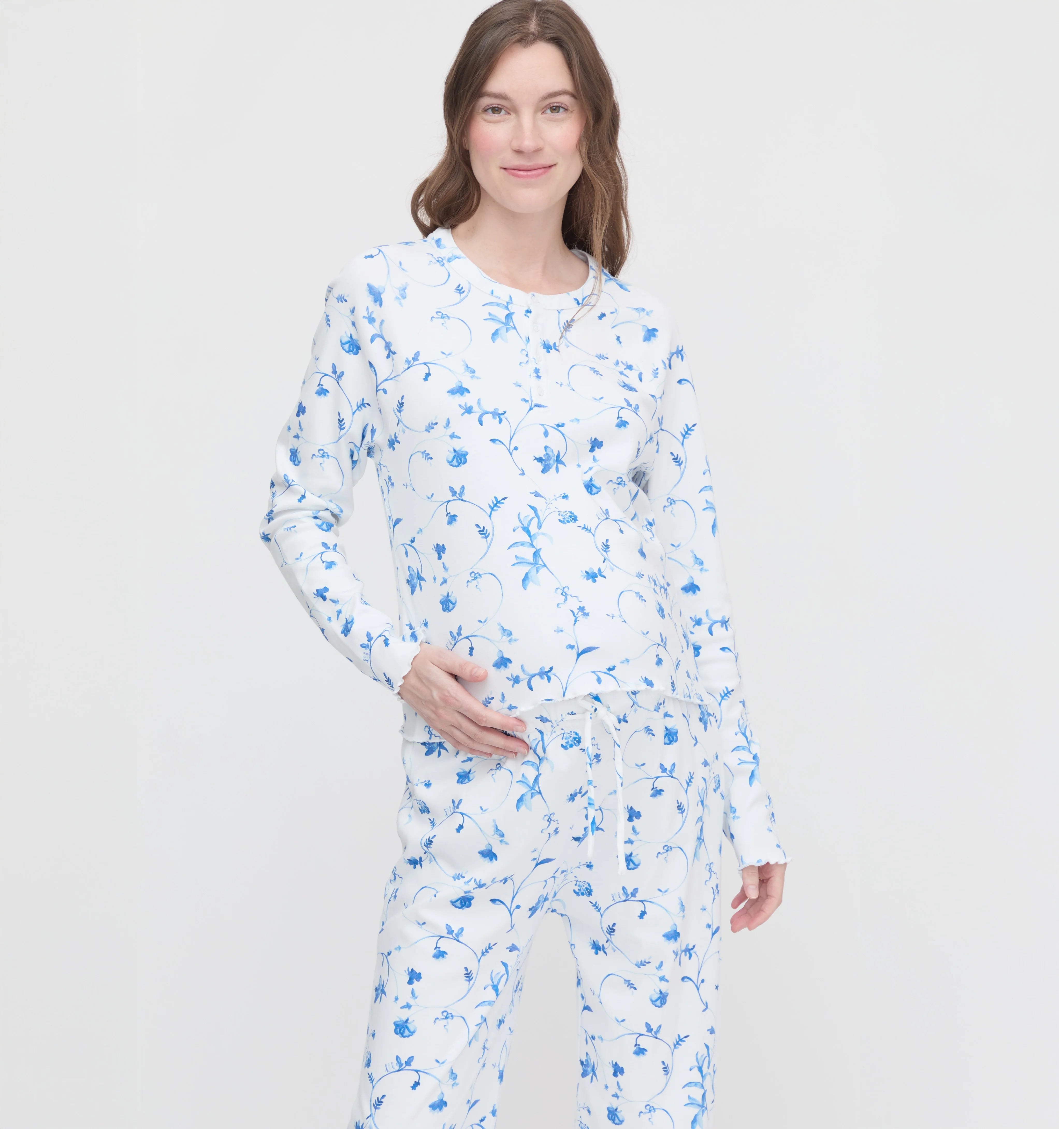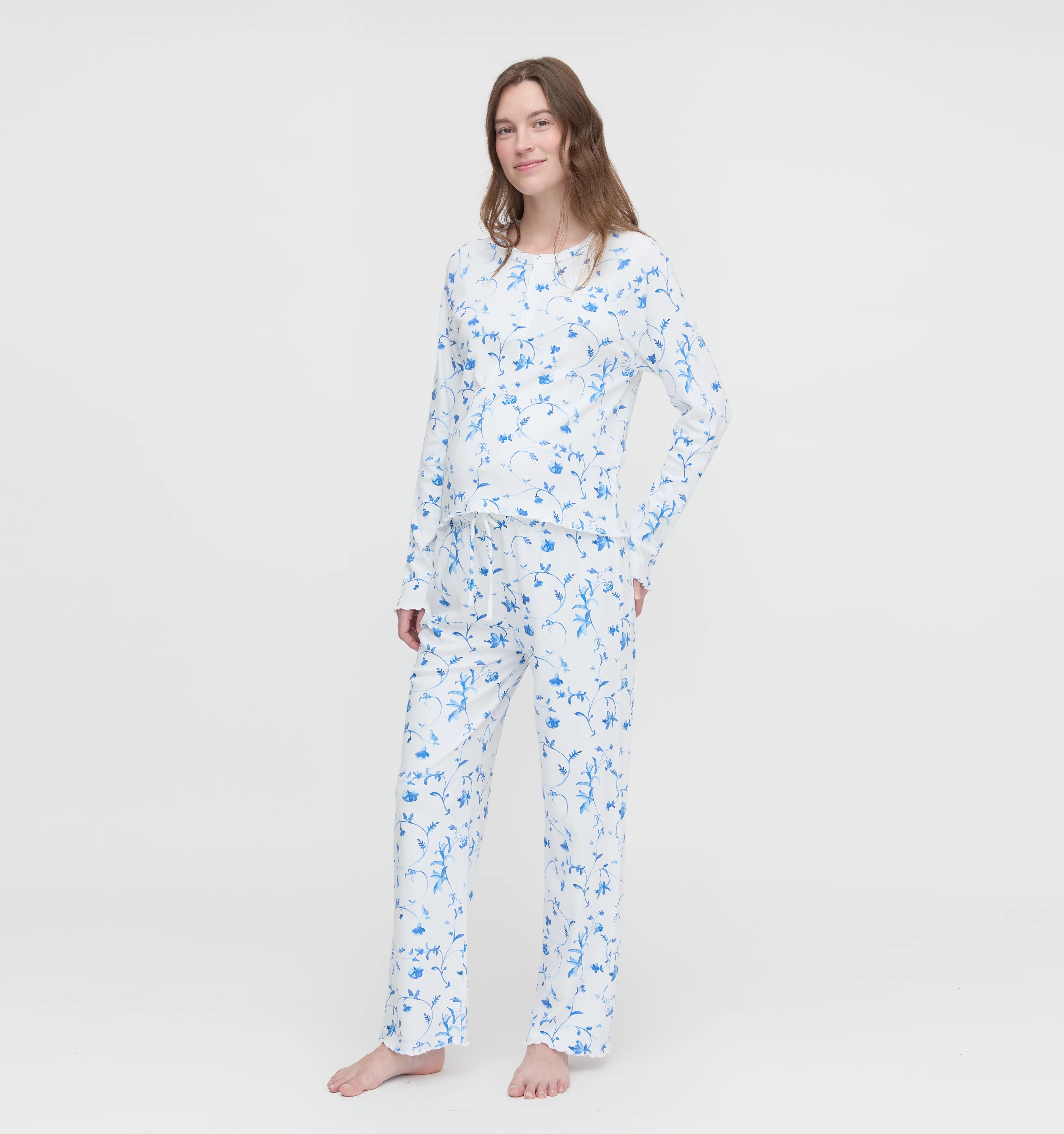 Meet the Olivia Pajama Set. Lettuce edge, drawstring pants, henley top, soft and stretchy cotton… need I go on? We combined all the design details from our best–selling pajama sets over the years to create the one and only Miss Olivia. Olivia is a long sleeve t-shirt and pants set made from the softest, organic cotton interlock fabric – the same fabric we use in our baby products, so you too can sleep like a baby.