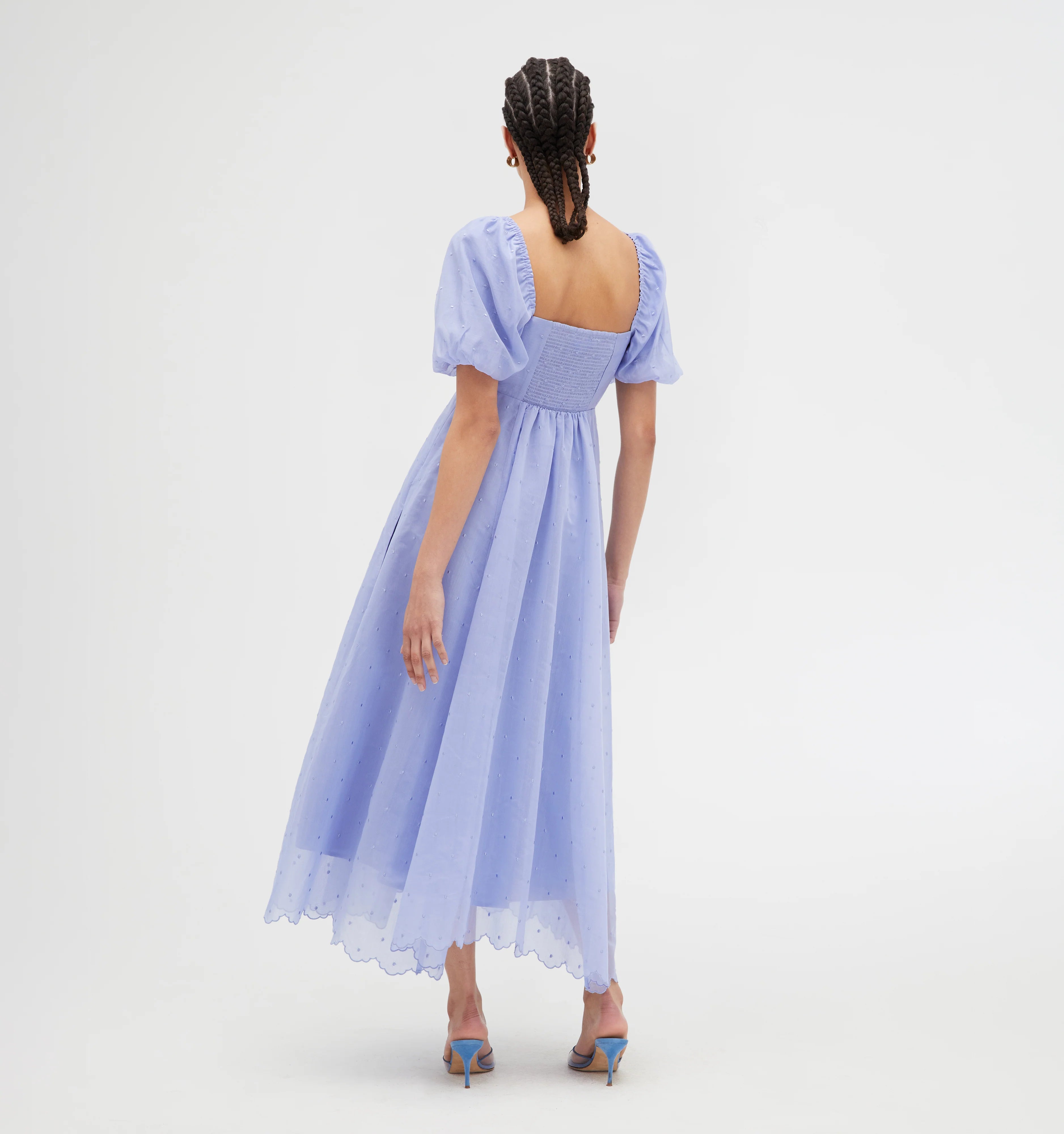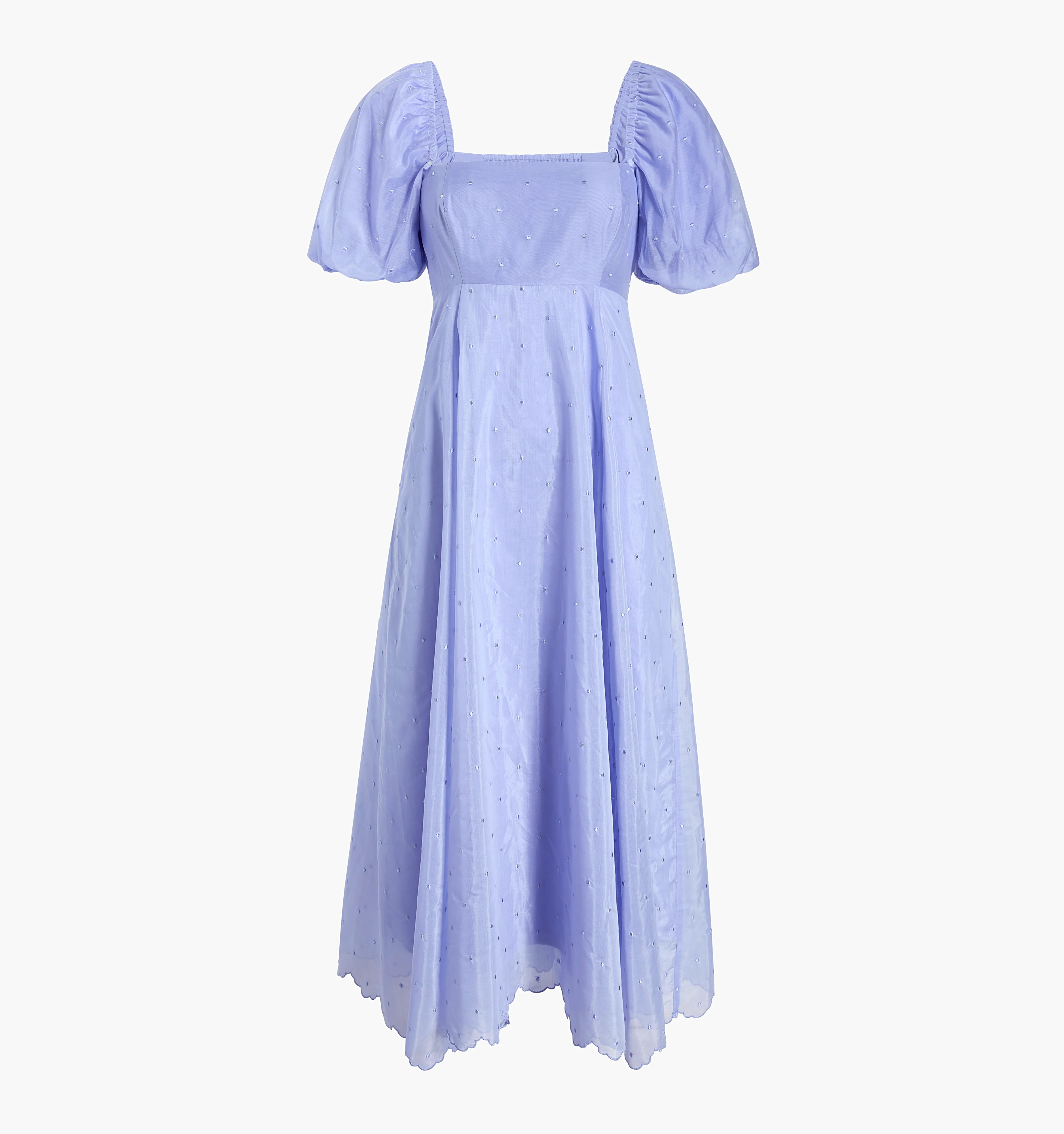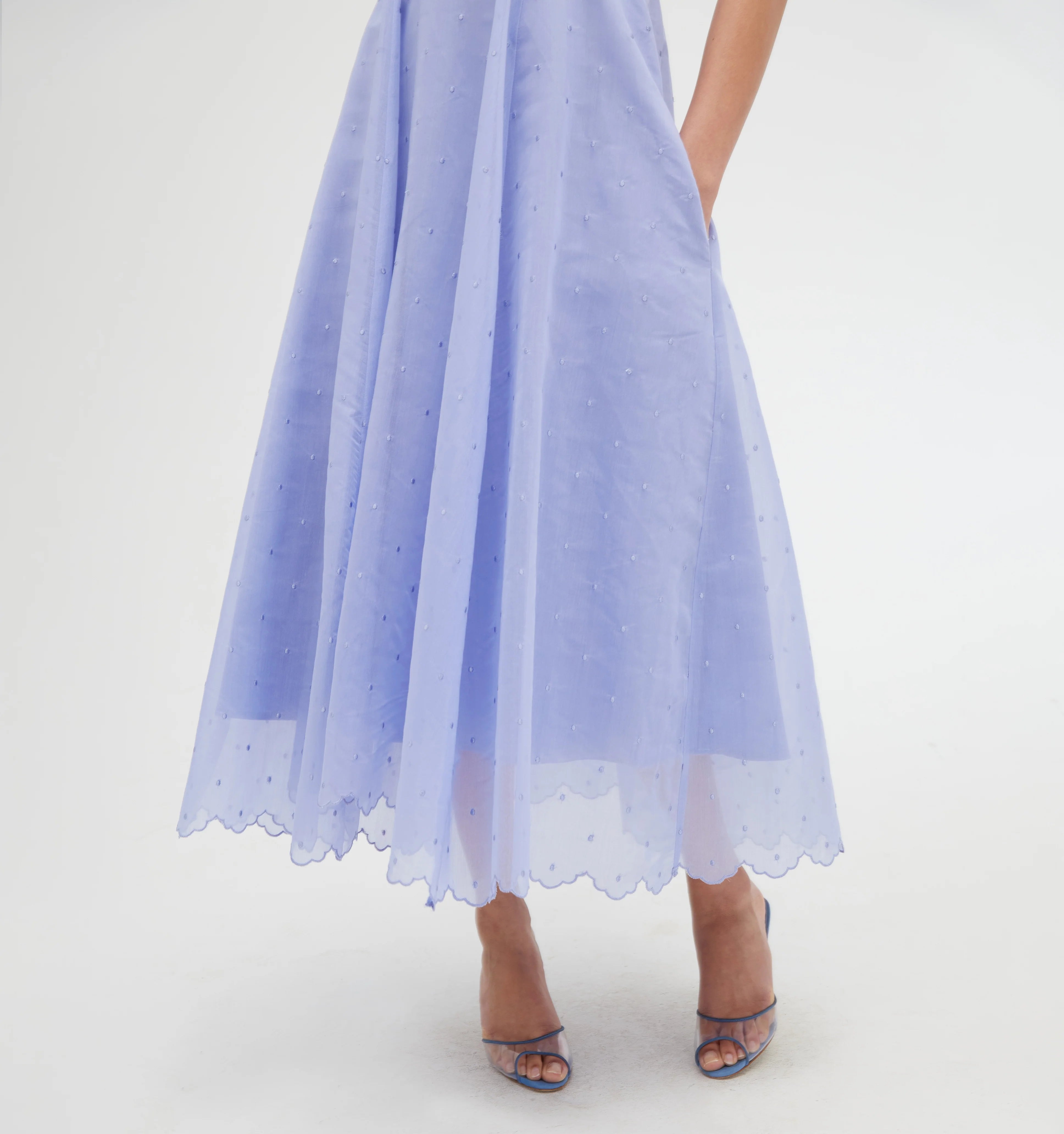 Designed with special occasions in mind, Hyacinth Organza Dot is the perfect periwinkle featuring a custom micro-dot motif and scalloped hem.