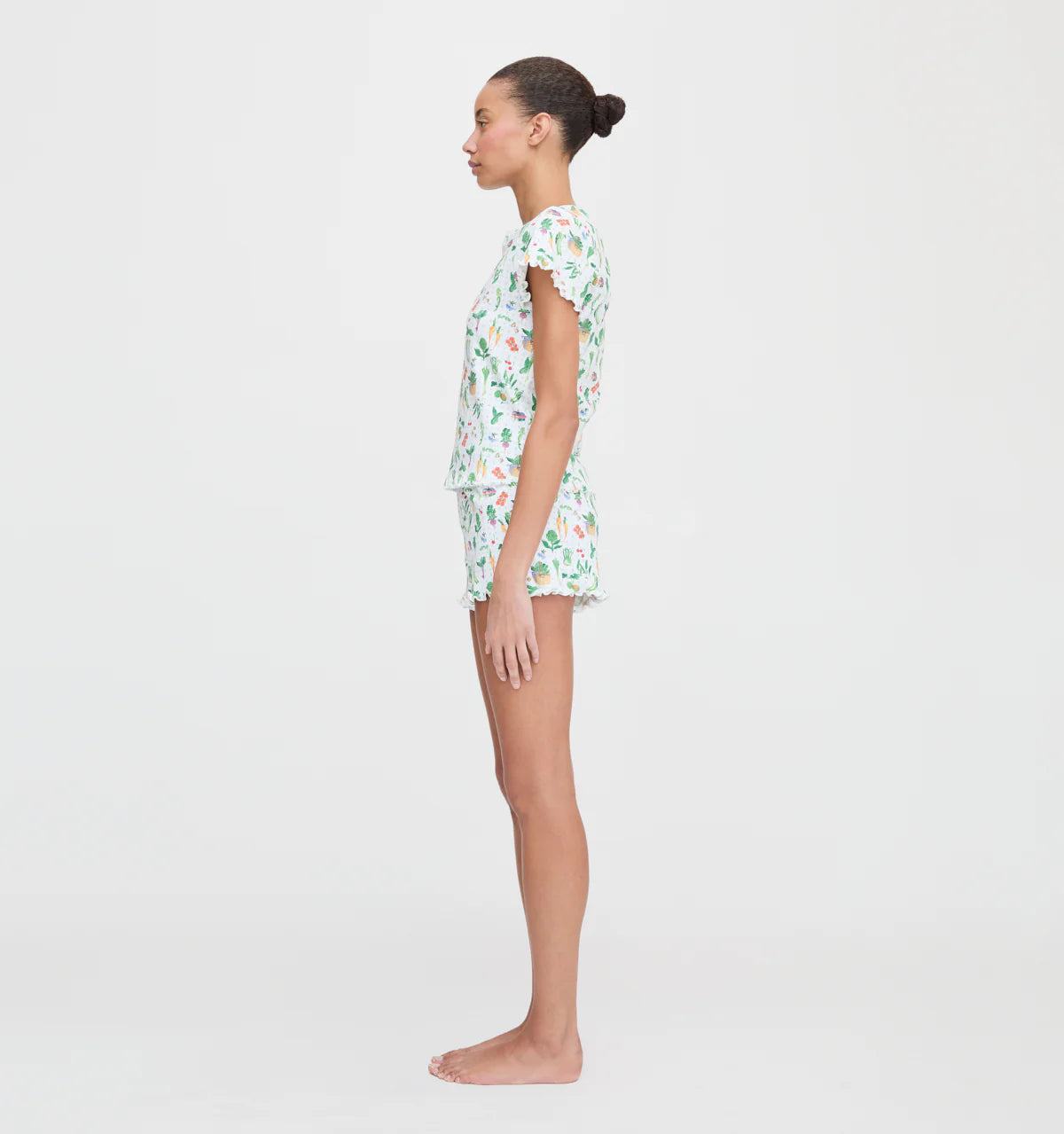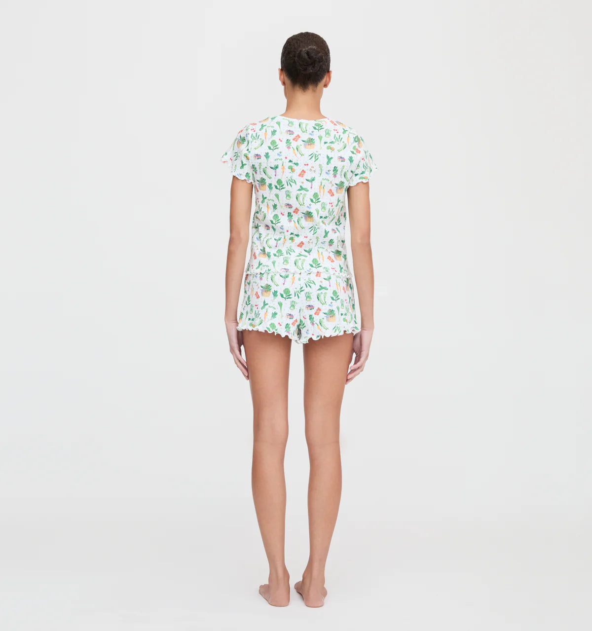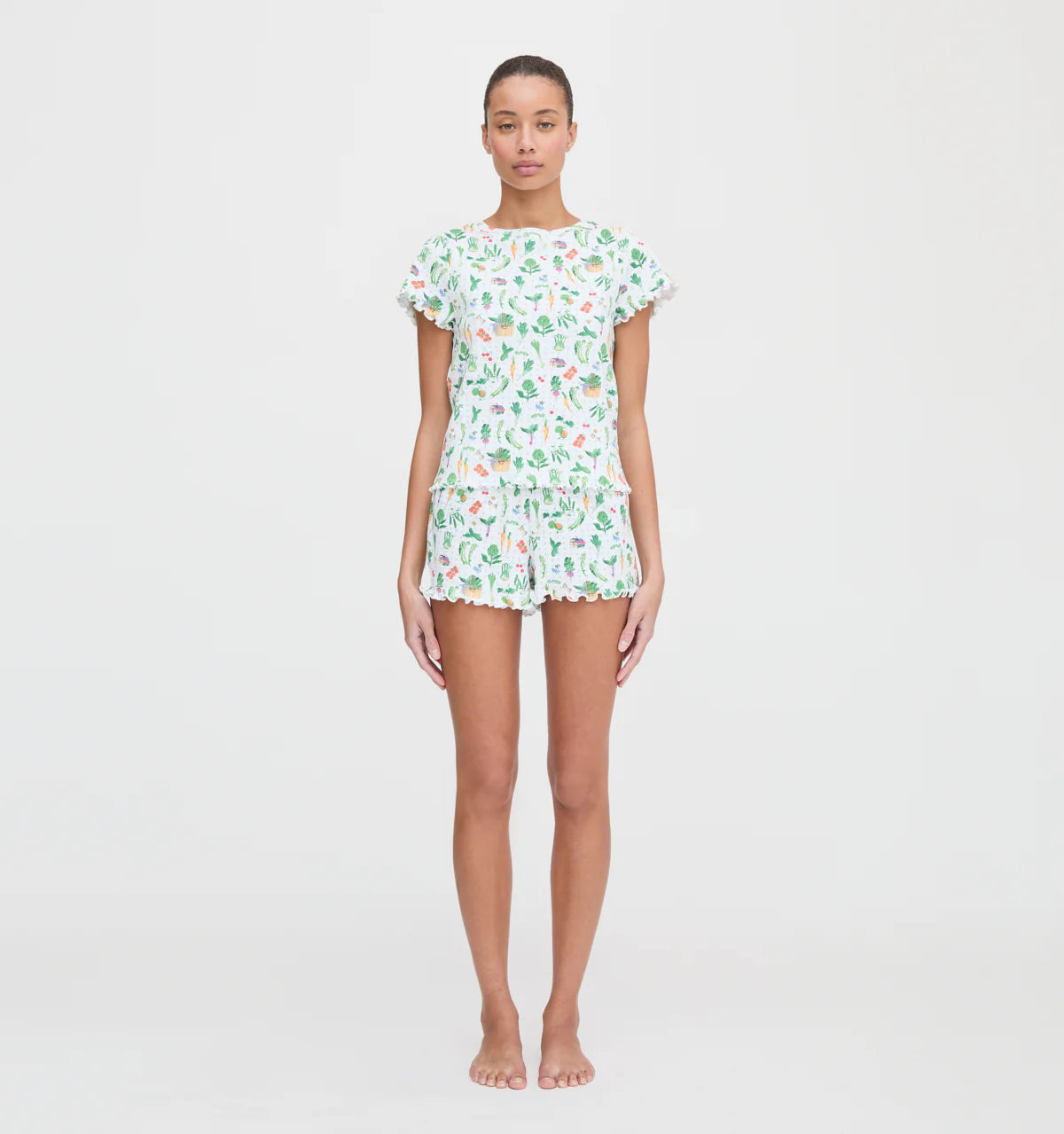 Meet the Nina Pajama Set. Does that perfectly ruffled lettuce edge immediately make you think of slumber parties with all of your besties eating Pizza Bagels with Clueless on the big screen and the fresh scent of face masks and nail polish remover? No? Just me? Either way, Nina is perfect. Nina is a short sleeve t-shirt and shorts set made from the softest, stretchiest organic cotton interlock fabric – the same fabric we use in our baby products, so you too can sleep like a baby.