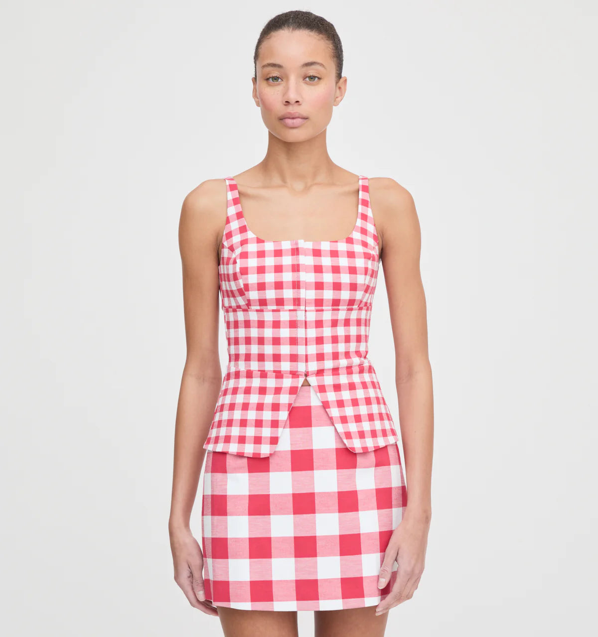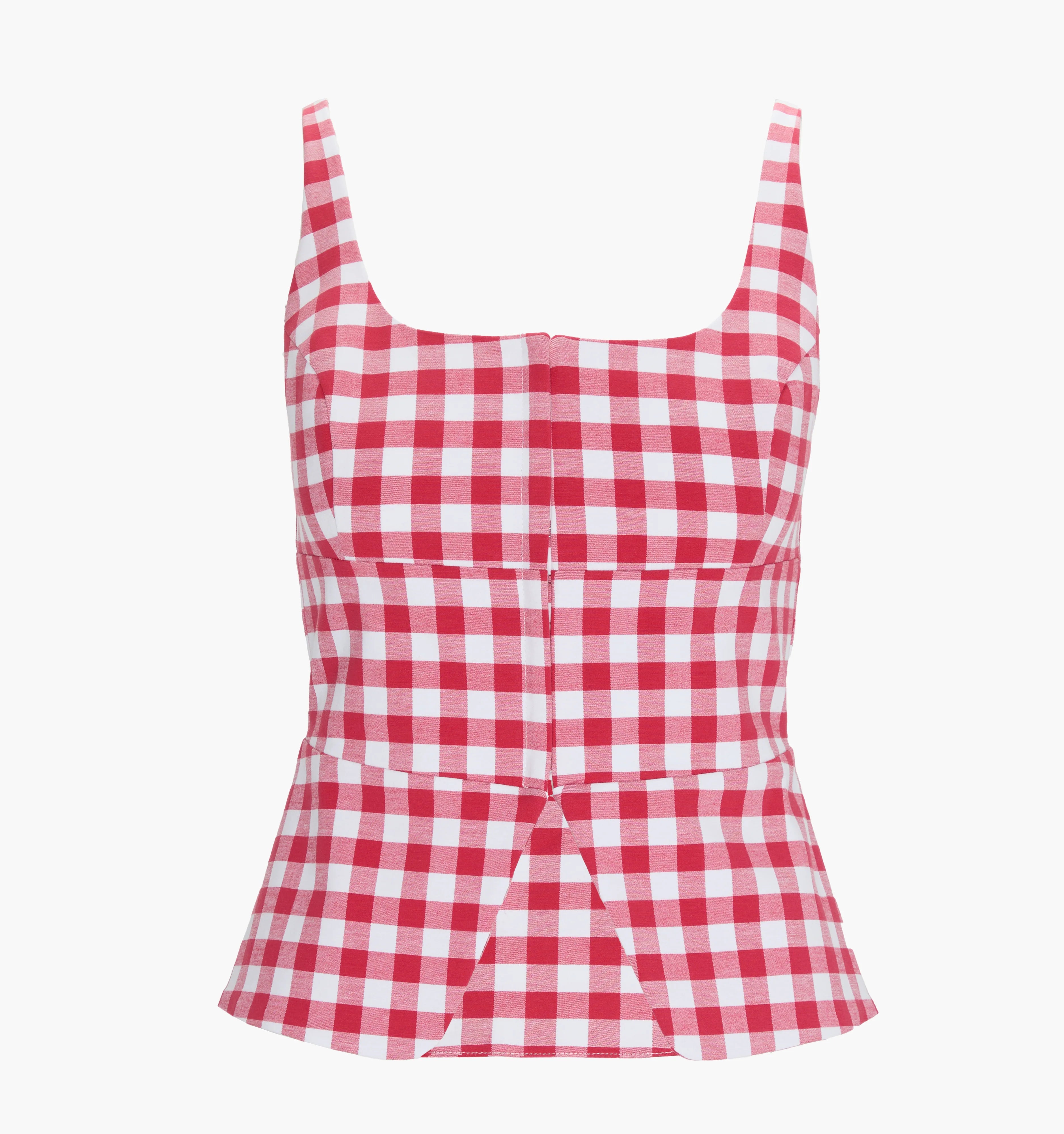 Meet the Novia Top. Novia features a gently flared peplum hem and a fitted bodice that adds structure and shape. The front features a panel of fully functional hook and eye closures for a flattering corset-inspired fit. Make it a set with the Hallie Skirt.