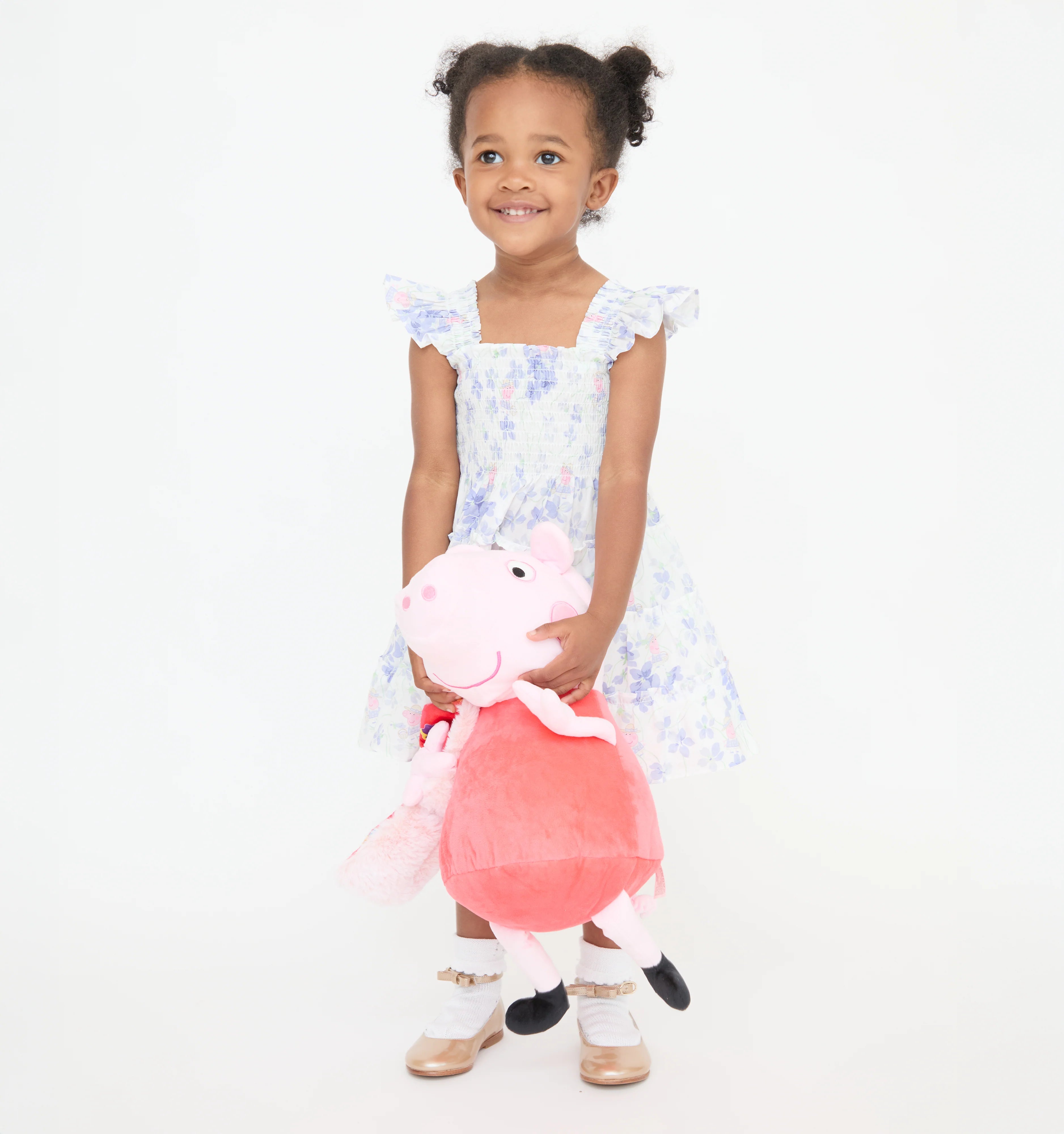 Peppa Pig© dances amongst watercolor sweet peas that capture the charm of English blooming garden vines in a delicate floral design.