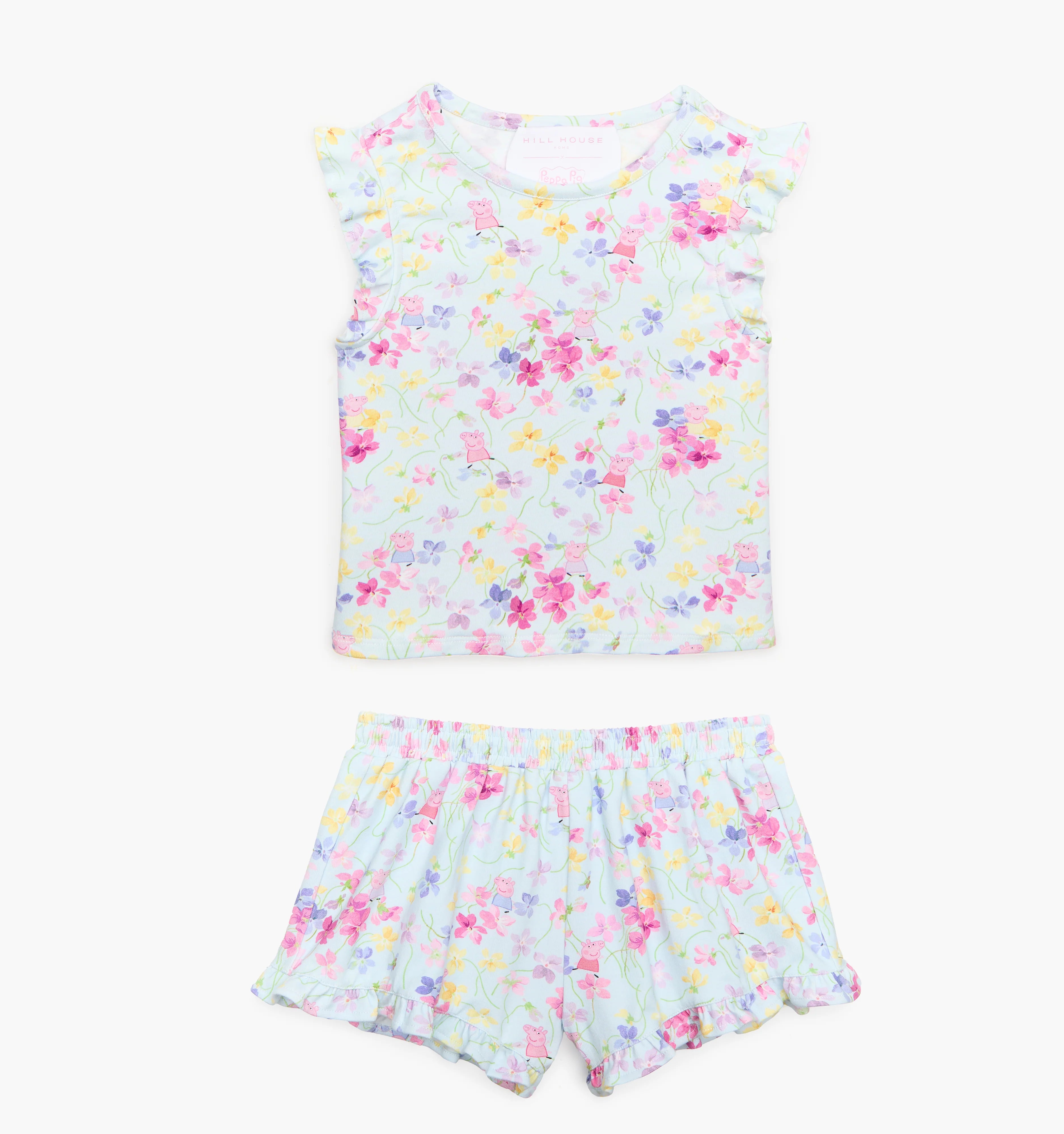 Peppa Pig© dances amongst watercolor sweet peas that capture the charm of English blooming garden vines in a delicate floral design.