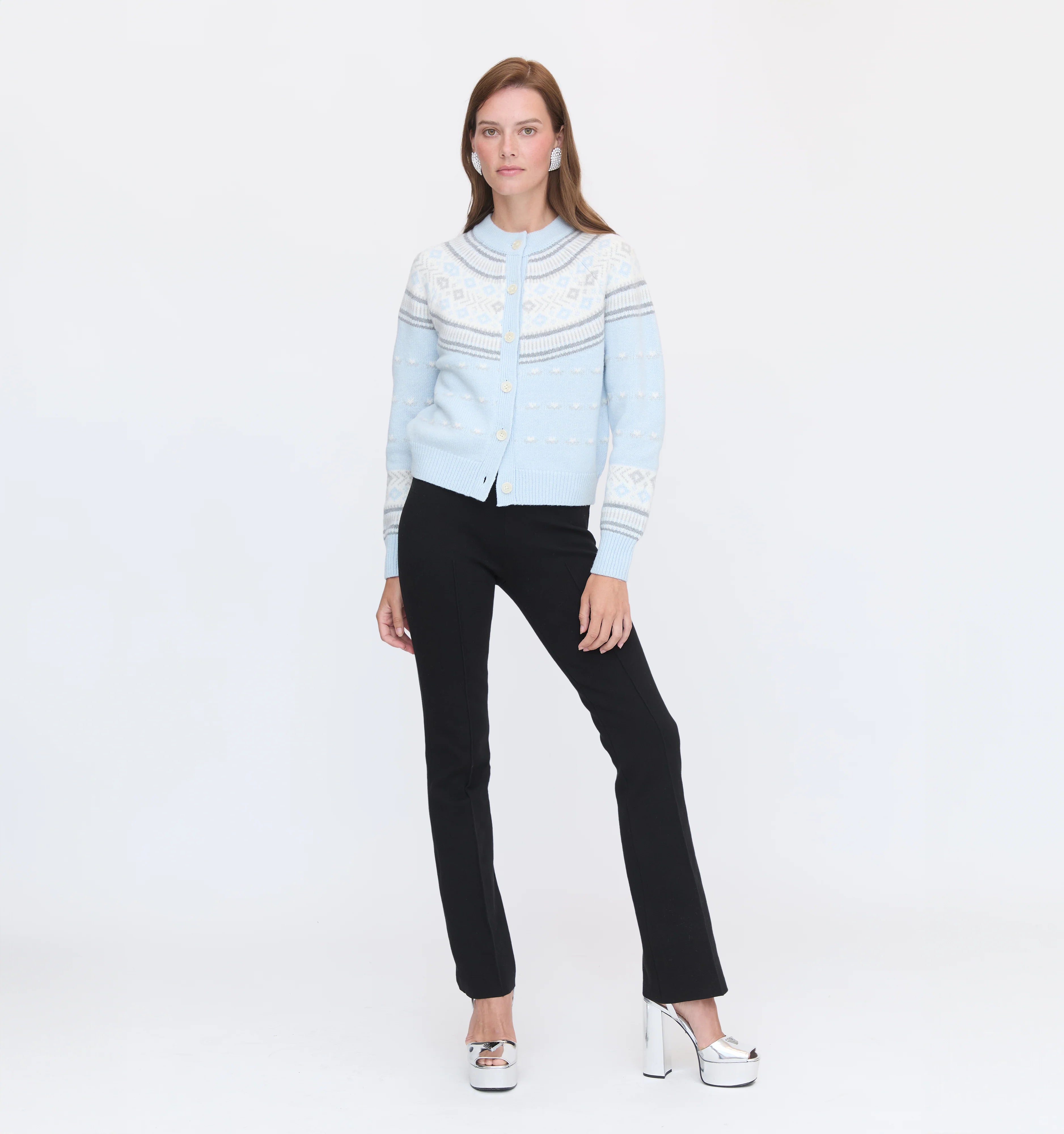 Meet the Ren Cardigan. The Ren is crafted from a cozy wool blend and features a classic, woven Fair Isle design and tortoise buttons up the front.
