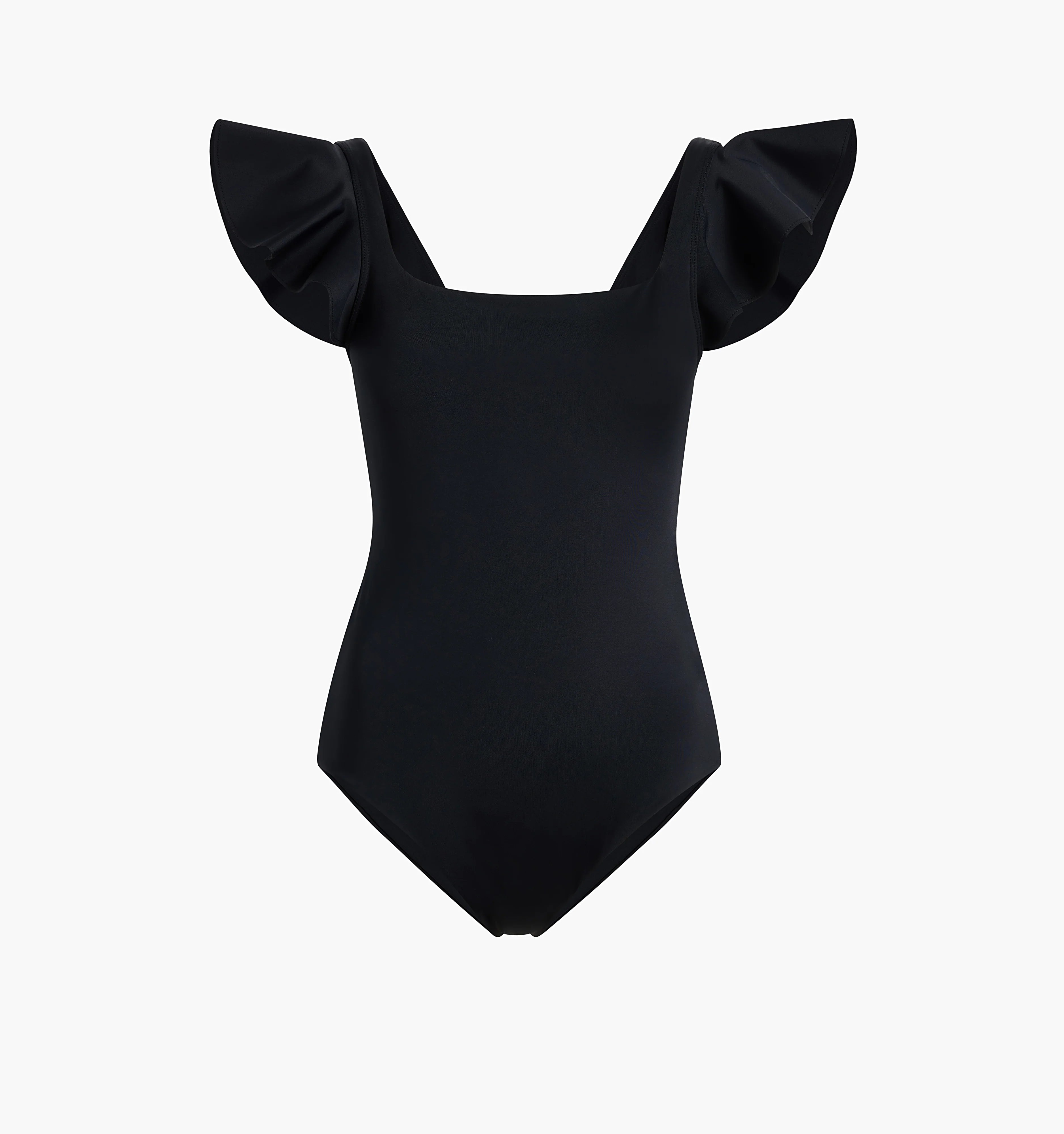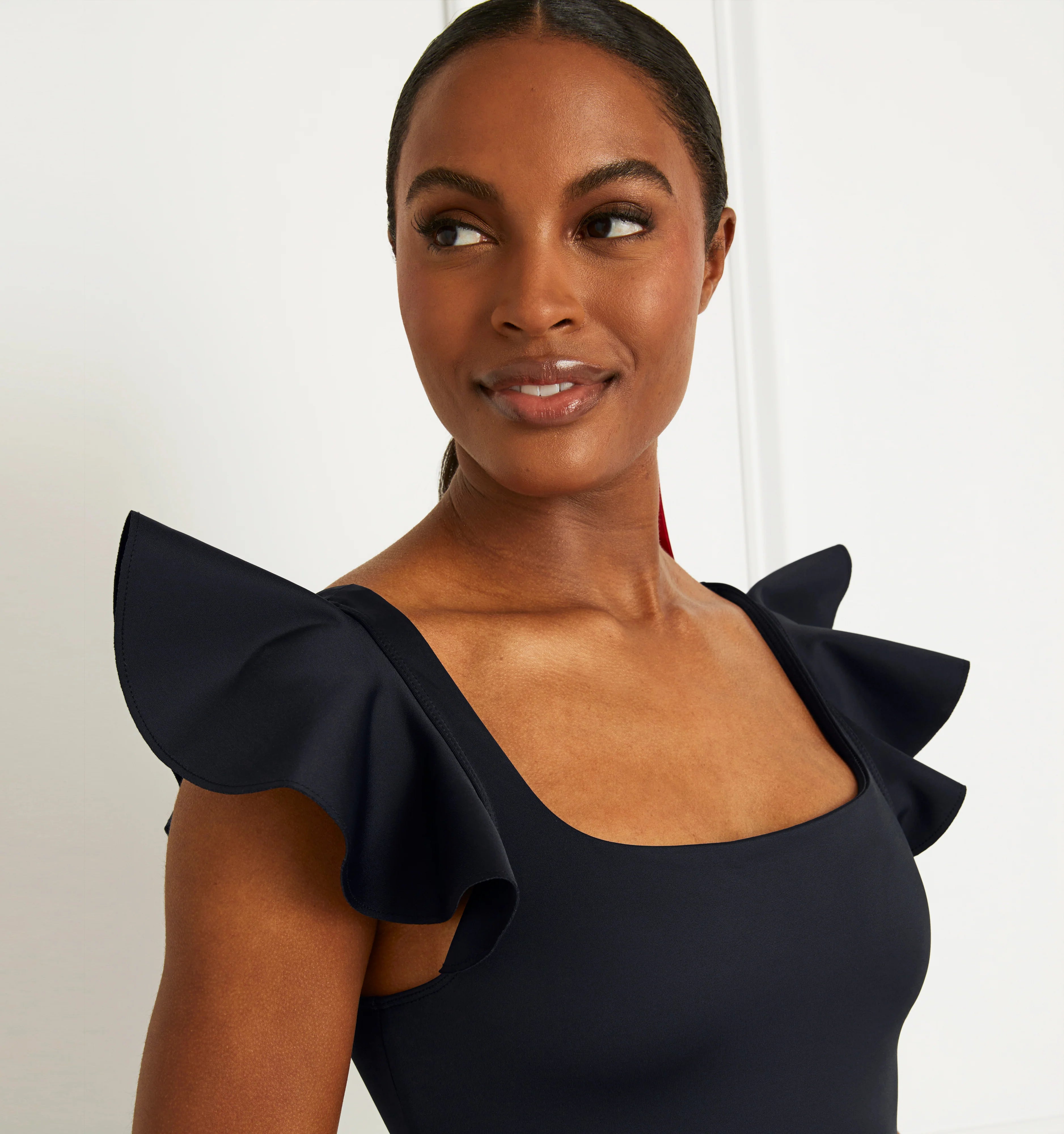The Rosie is a square neck, scoop back one piece. Featuring our signature Ellie Nap Dress® ruffle sleeve, now in swim! The sleeve is designed and made to hold its ruffle through all summer activities.