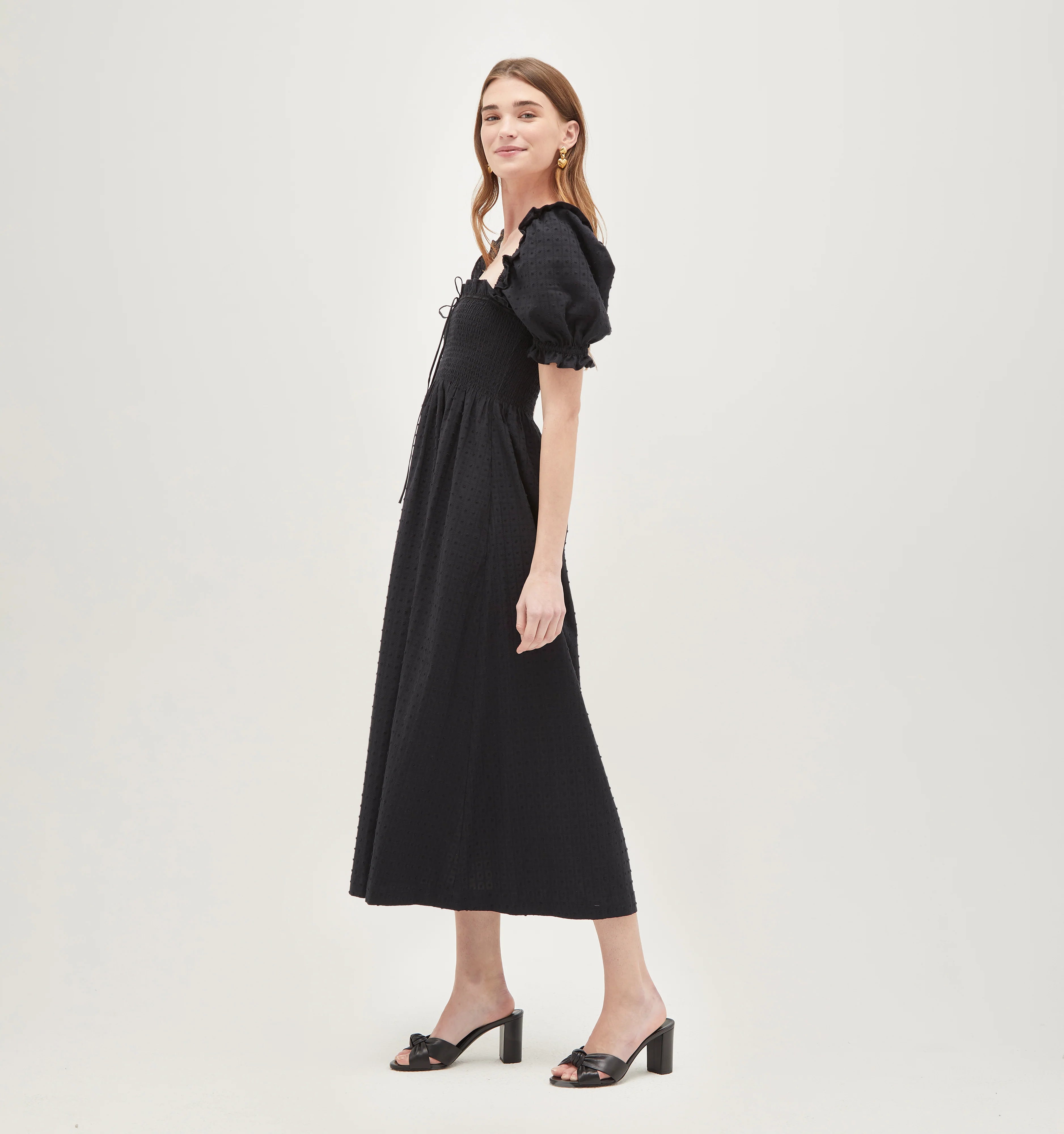 Meet the Scarlett Nap Dress. Our Founder, Nell, calls this dress her “new Ellie”; a closet-staple she can wear a million ways. Scarlett features our proprietary, elasticated Nap Smocking, a slim skirt that hits around the ankle, puff sleeves and lace detailing at the neckline. Our favorite part? The tiny shoulder ruffle, a nod to big sis Ellie and her iconic shoulders.