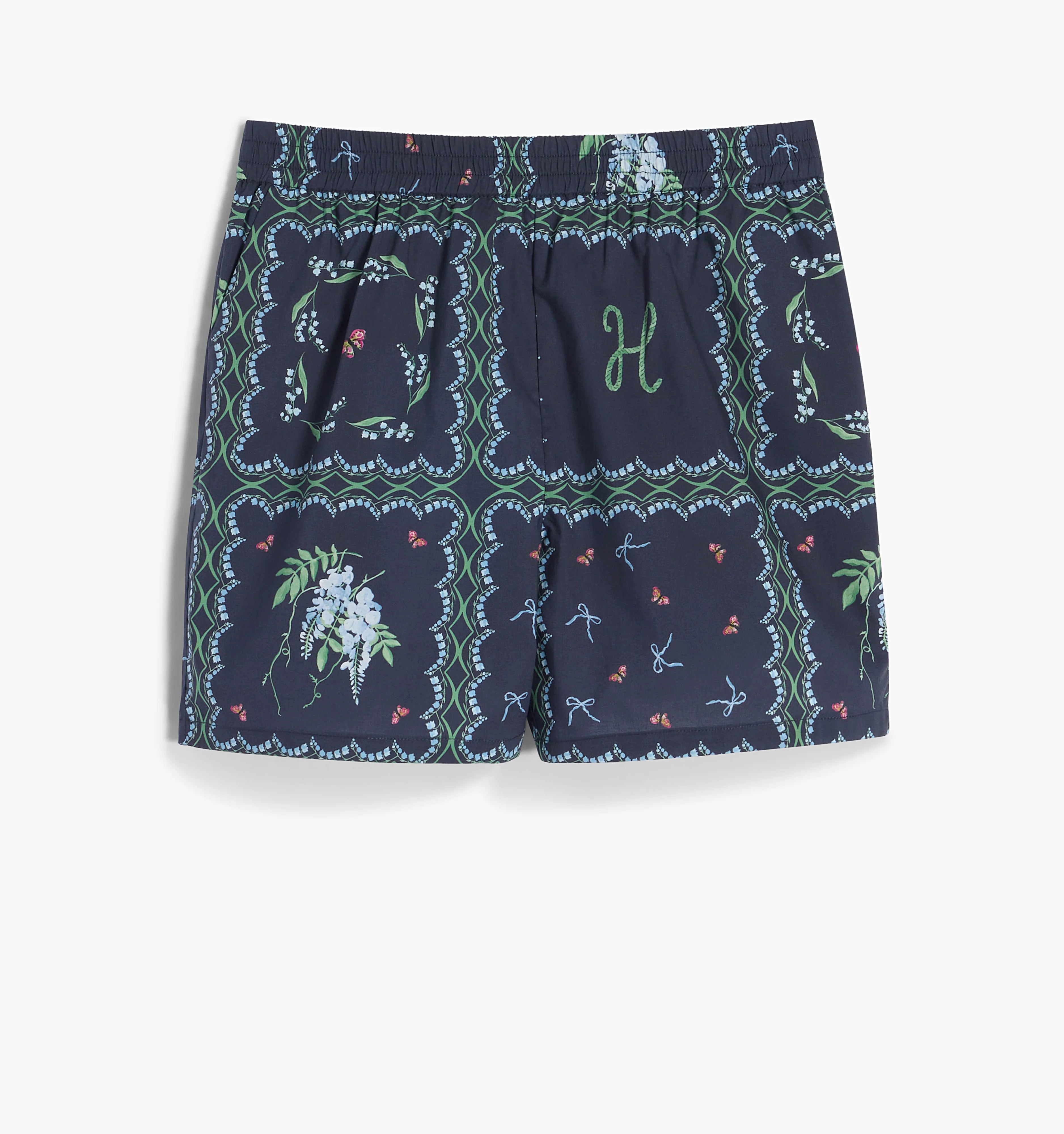 Through a vintage, embroidered linen inspired pattern, this watercolor print ties together all the playful motifs of the Summer 2024 collection - lily of the valley, bows, wisteria, butterflies, nautical inspired H’s – can you spot them all?