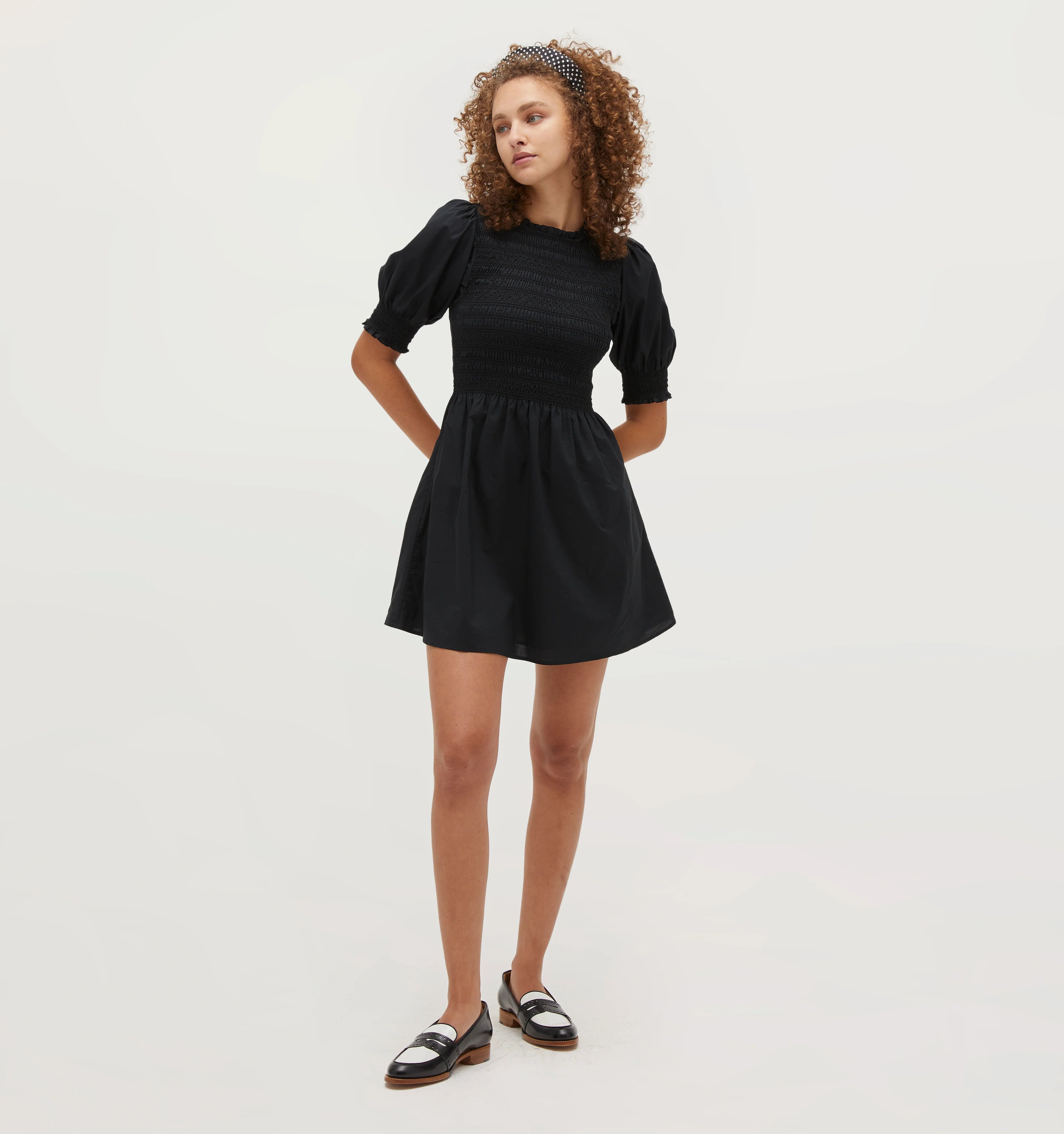 Meet Vivi, a Nap Dress® with a fresh take on our signature elasticated smocking. With smocking at the bodice and sleeve cuffs for a flexible, comfortable fit, Vivi also features decorative woven details, a high neckline and midi-puff sleeves.