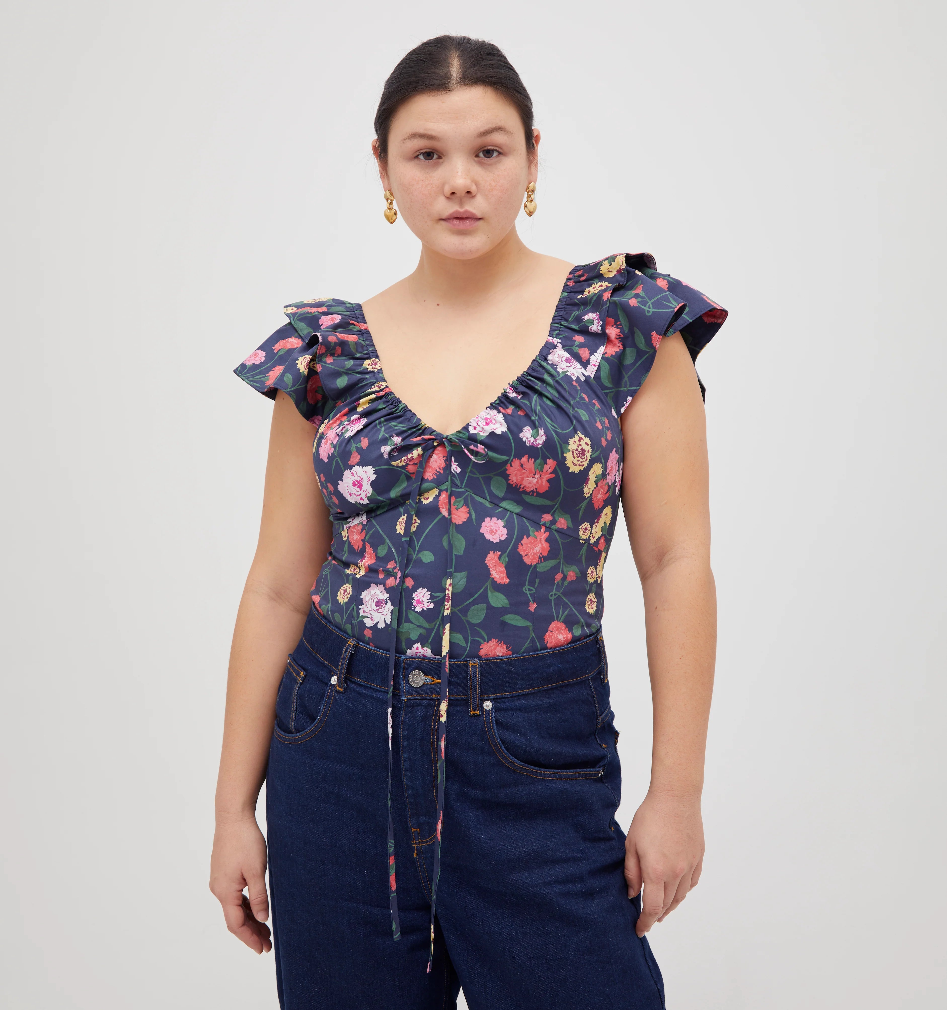 Meet the Zuri Top. The Zuri Top features ruffle sleeves, princess seams and an adjustable drawstring tie. Real ones might notice the bodice comes from our bestselling Ophelia Dress. Pair Zuri with our Mirabel and Delphine skirts or style as a going-out-top with your favorite pair of jeans.