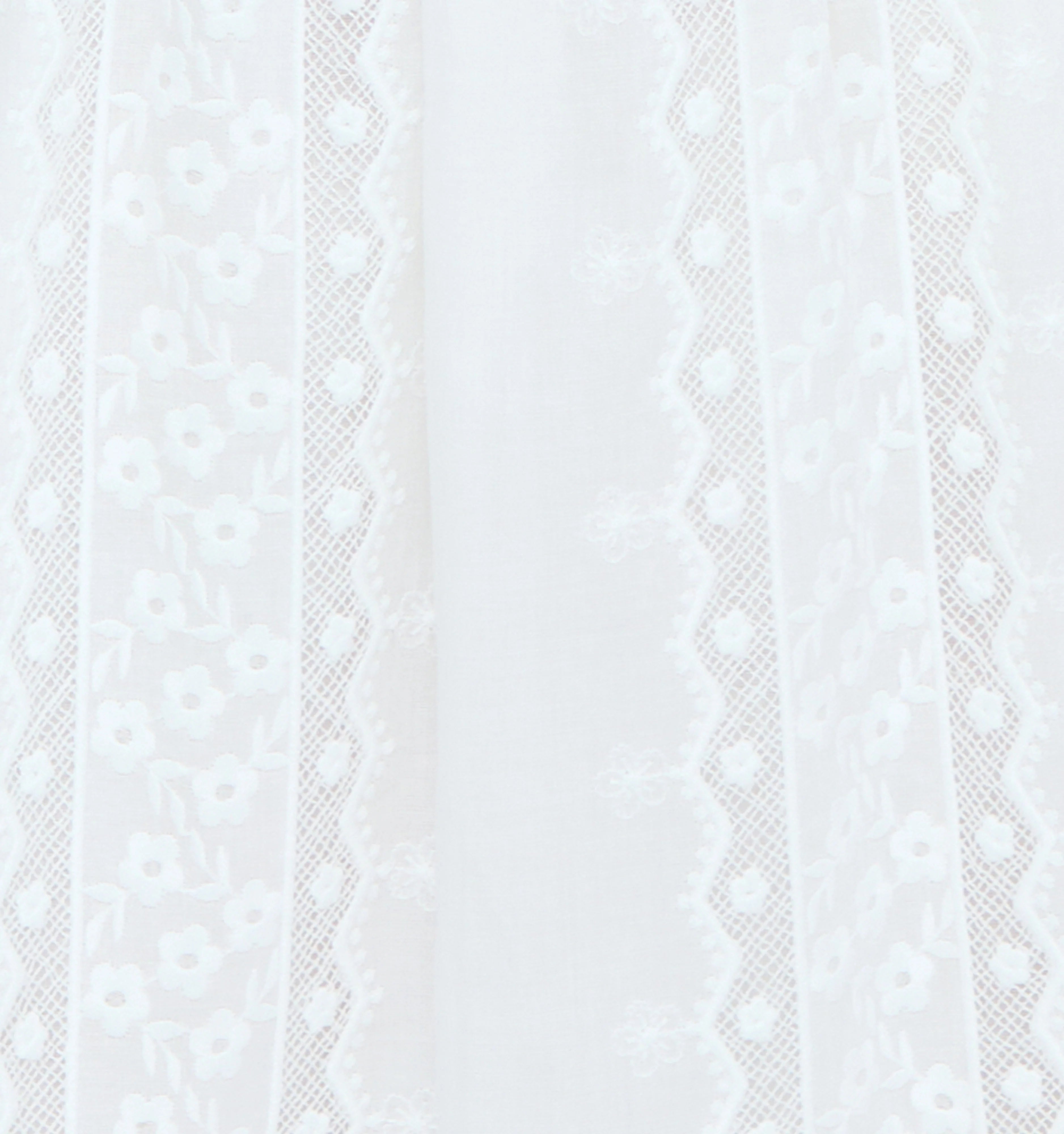 Crafted from 100% cotton, Voile Broderie is an extra special fabric featuring embroidered bands of floral motifs.