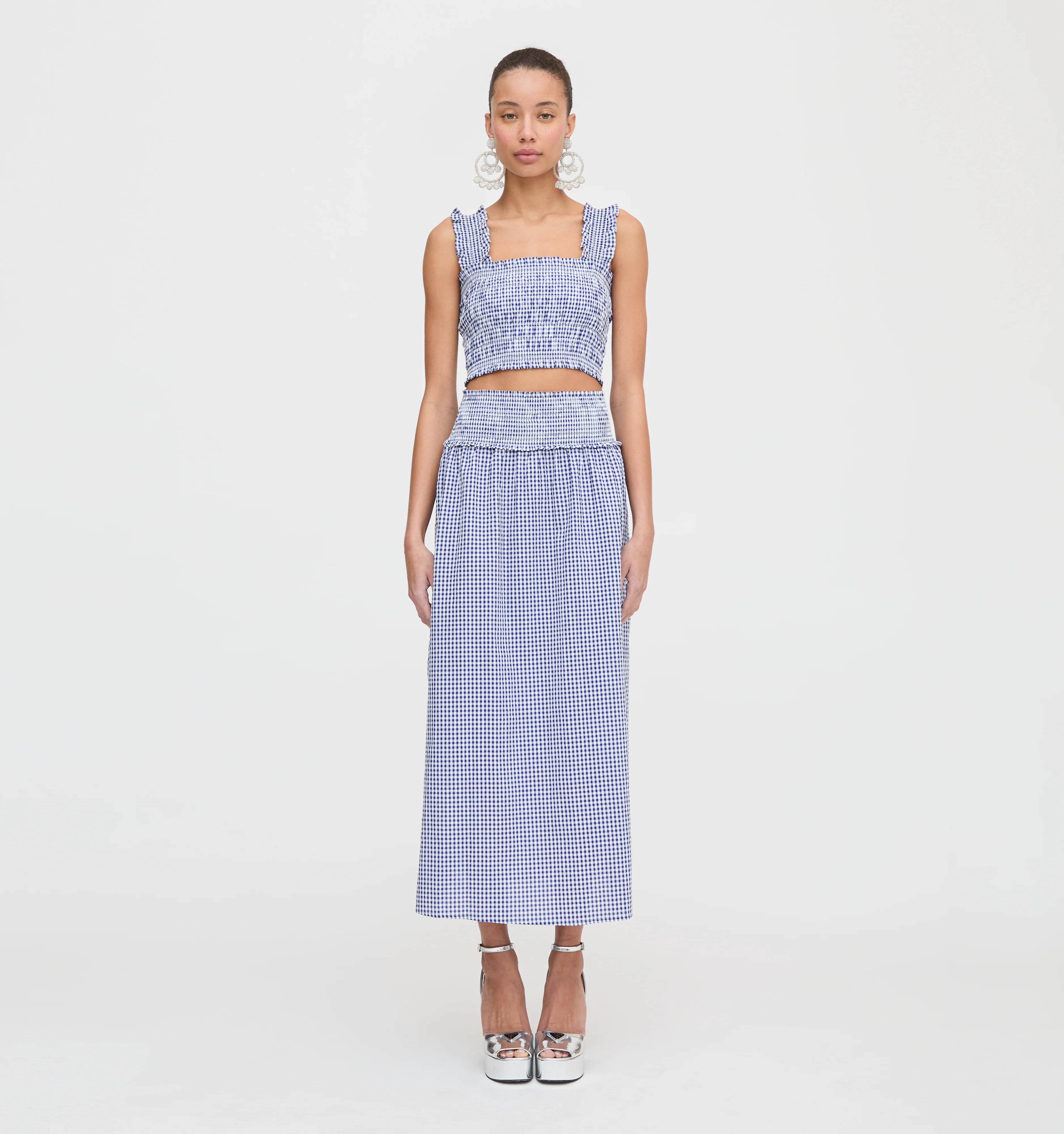Meet the Azalea Nap Top. Azalea is a true crop top, featuring our variegated smocking across the bodice and along the straps for an effortlessly chic, laid-back look. Complete the look with The Delphine Nap Skirt.