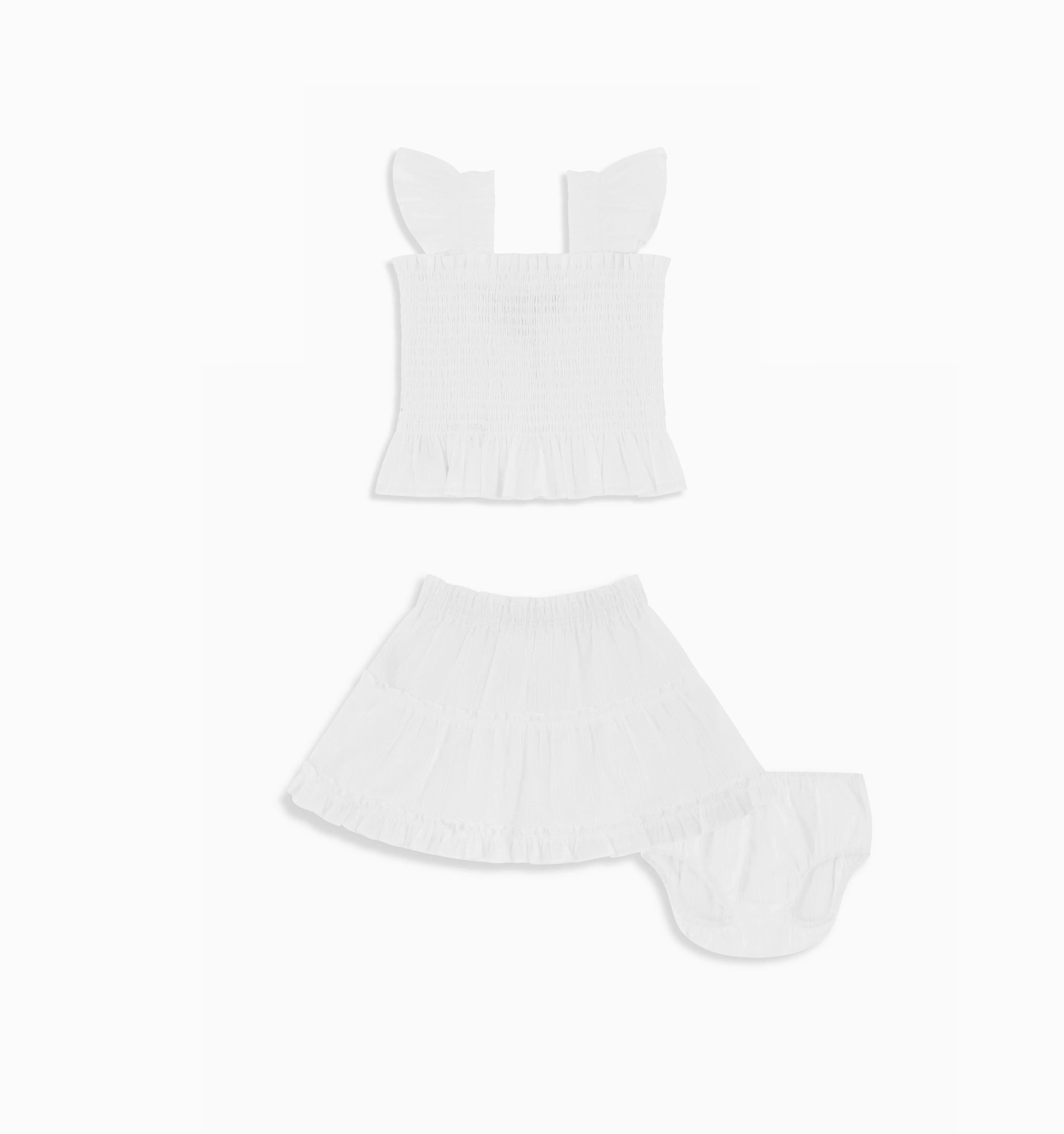 Our best-selling Paz Nap Top and Paz Skirt for adults, now made mini. Featuring a fully smocked top and a skirt with an elastic waist and ruffled hem, the set is a cute pick that works on the playground, in family photos, and for everything in between. Mix and match with their favorite tops and bottoms for even more outfit potential.