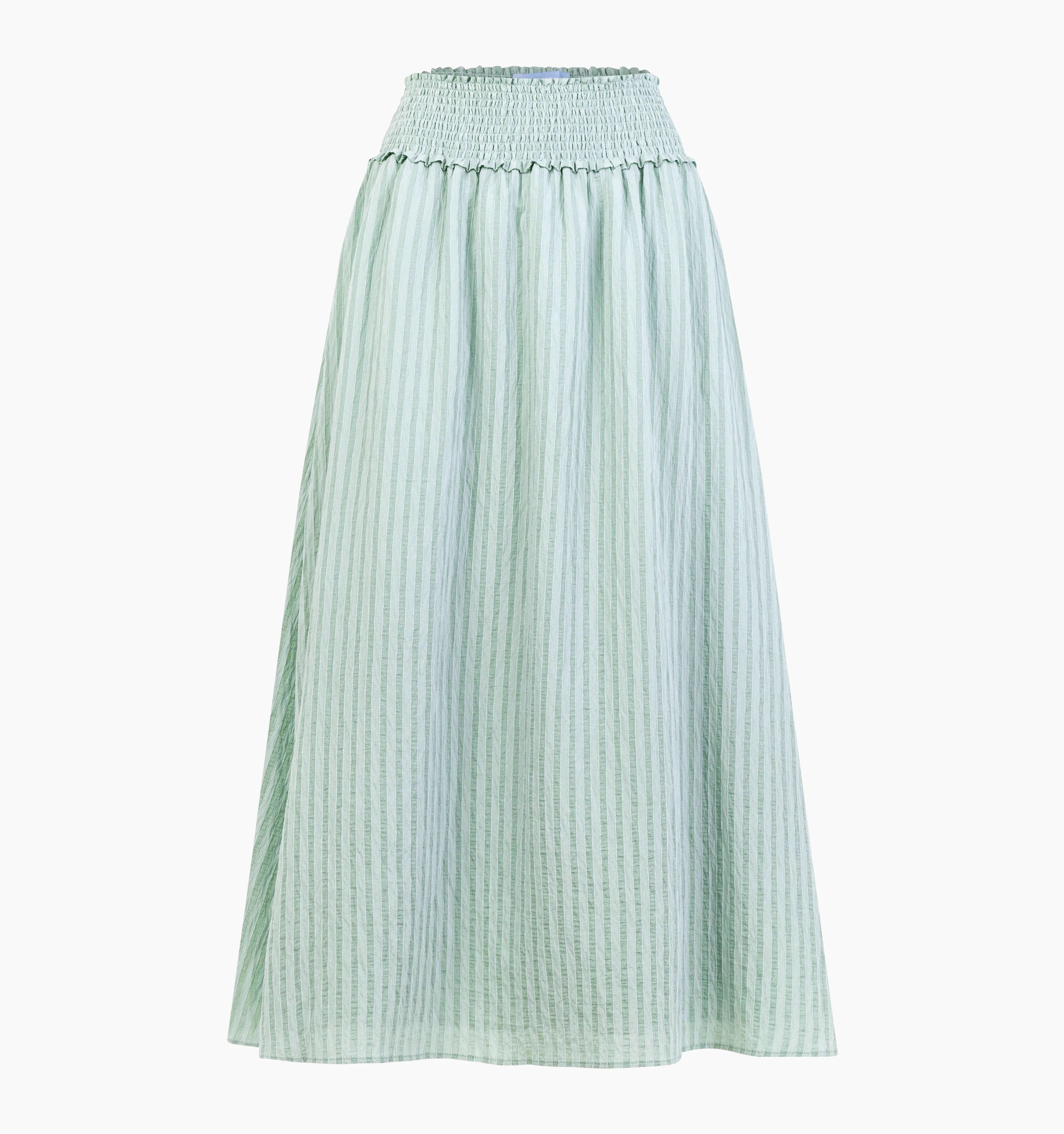 The Delphine Nap Skirt is midi length and has our smocked elasticated waistband for a flexible fit that can be worn high or low on the hips. Pair with your favorite tee or top for an easy, instantly polished.