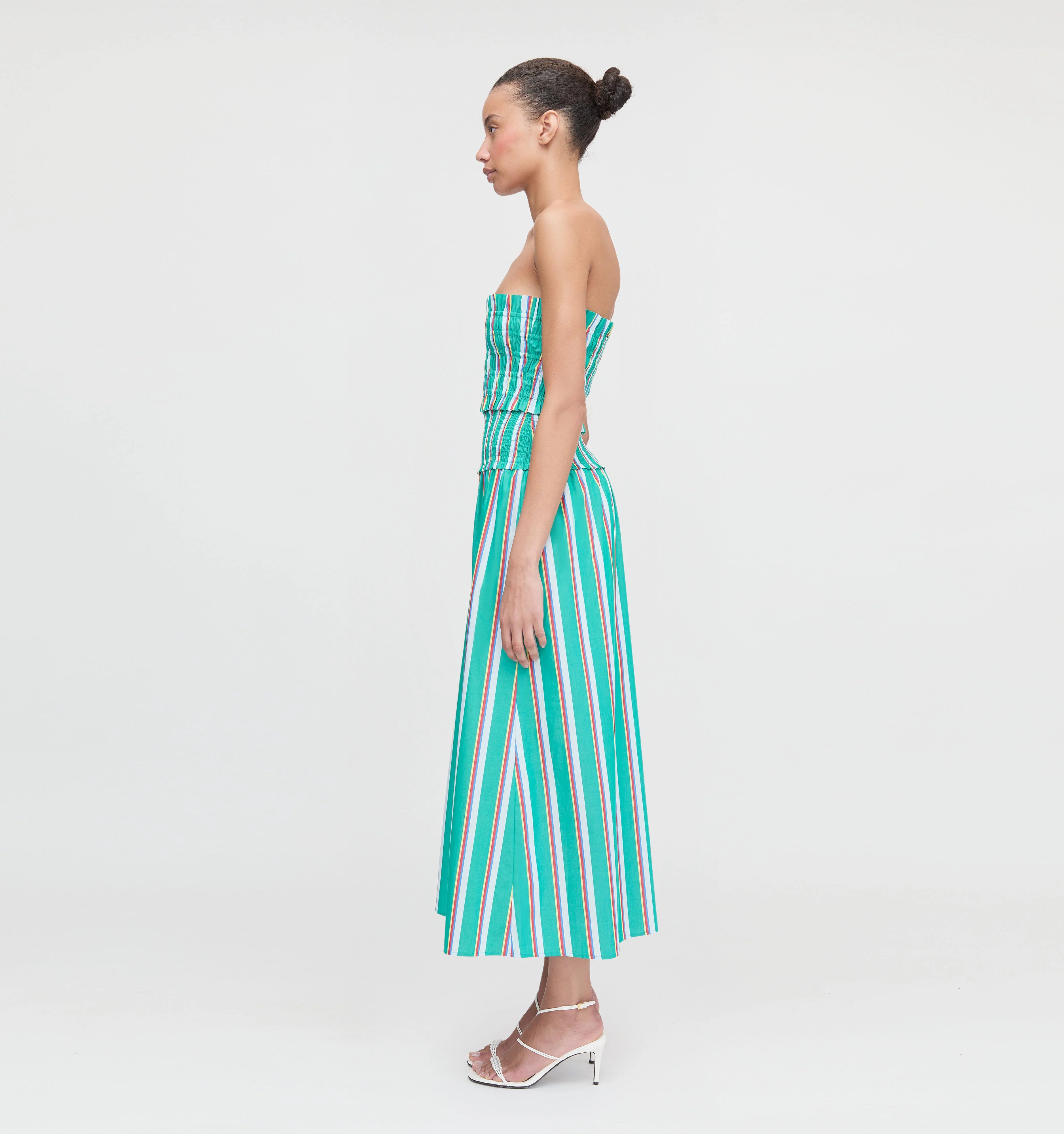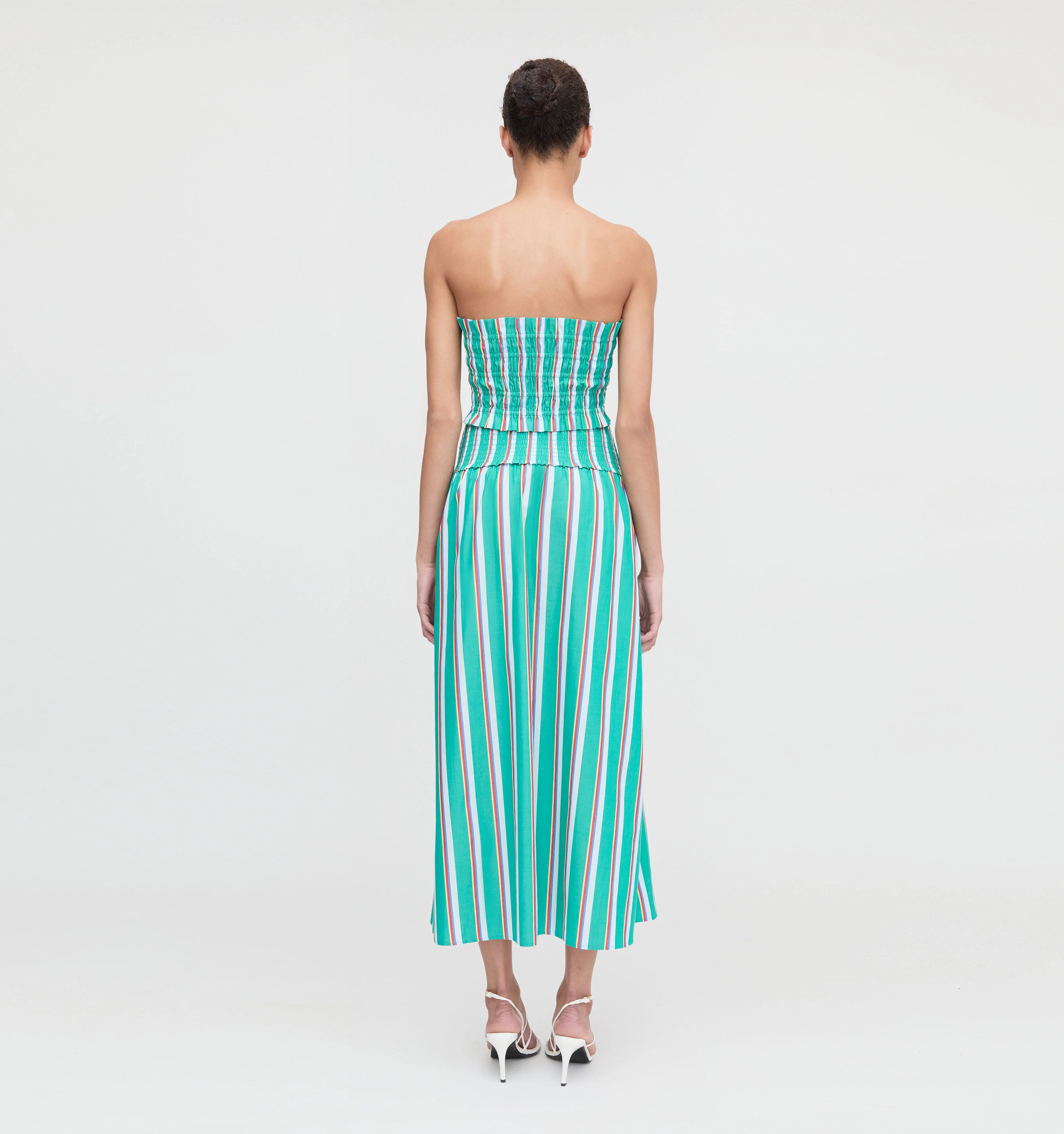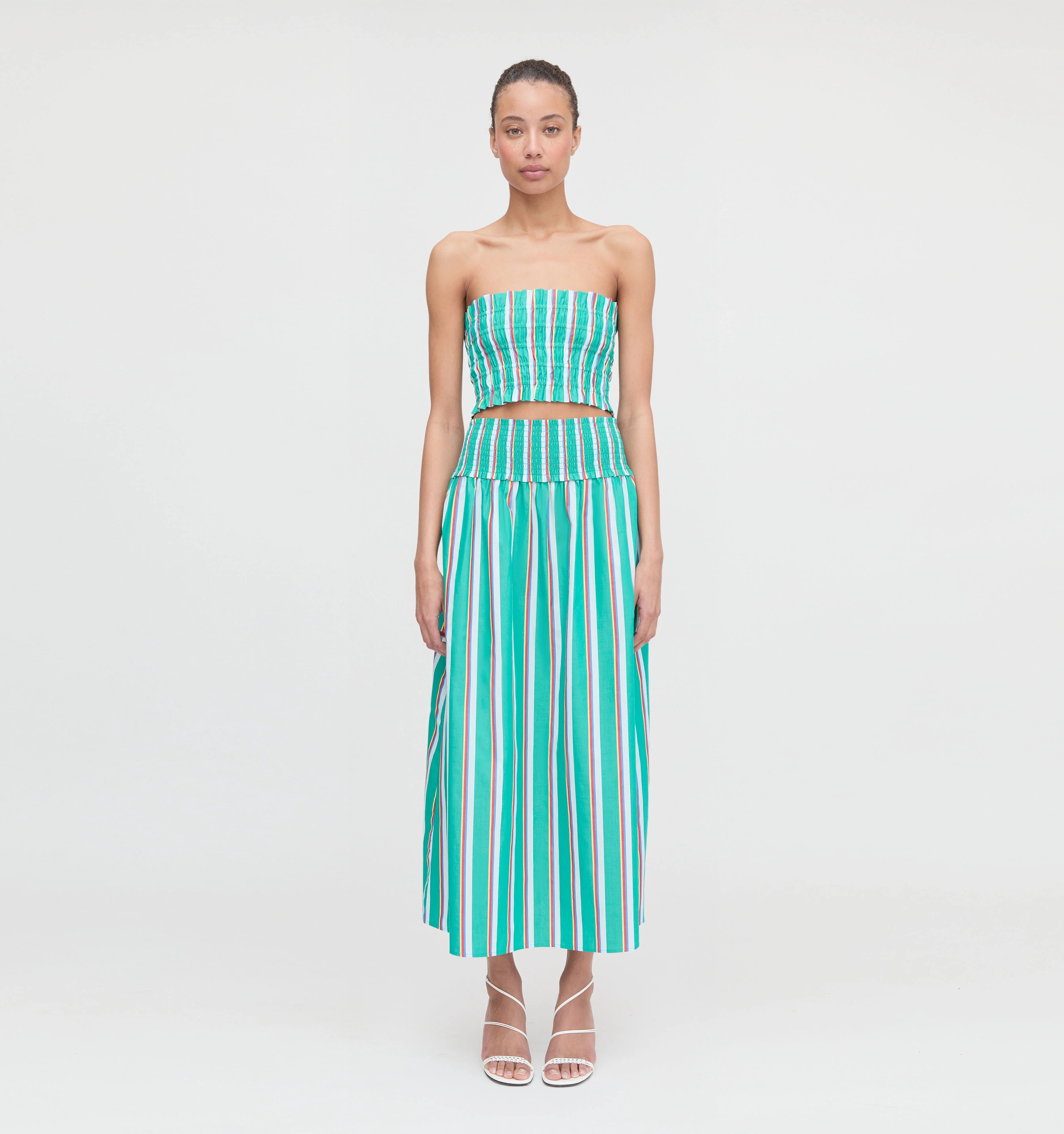 The Delphine Nap Skirt is midi length and has our smocked elasticated waistband for a flexible fit that can be worn high or low on the hips. Pair with your favorite tee or top for an easy, instantly polished look.