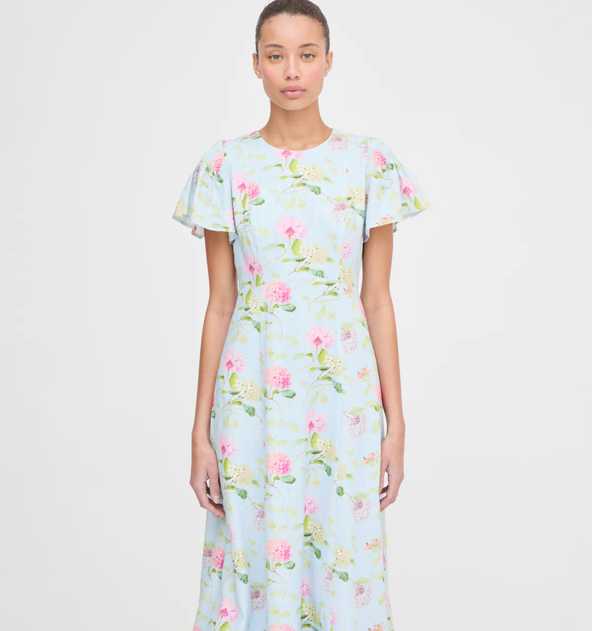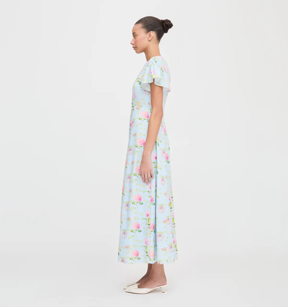 Meet the Dominique Dress. Dominique’s slim maxi skirt, high neck and flutter sleeves make it the perfect 9-5 look. The shoulders are capped with a sweet, smocked detail for an extra comfortable fit and soft silhouette.
