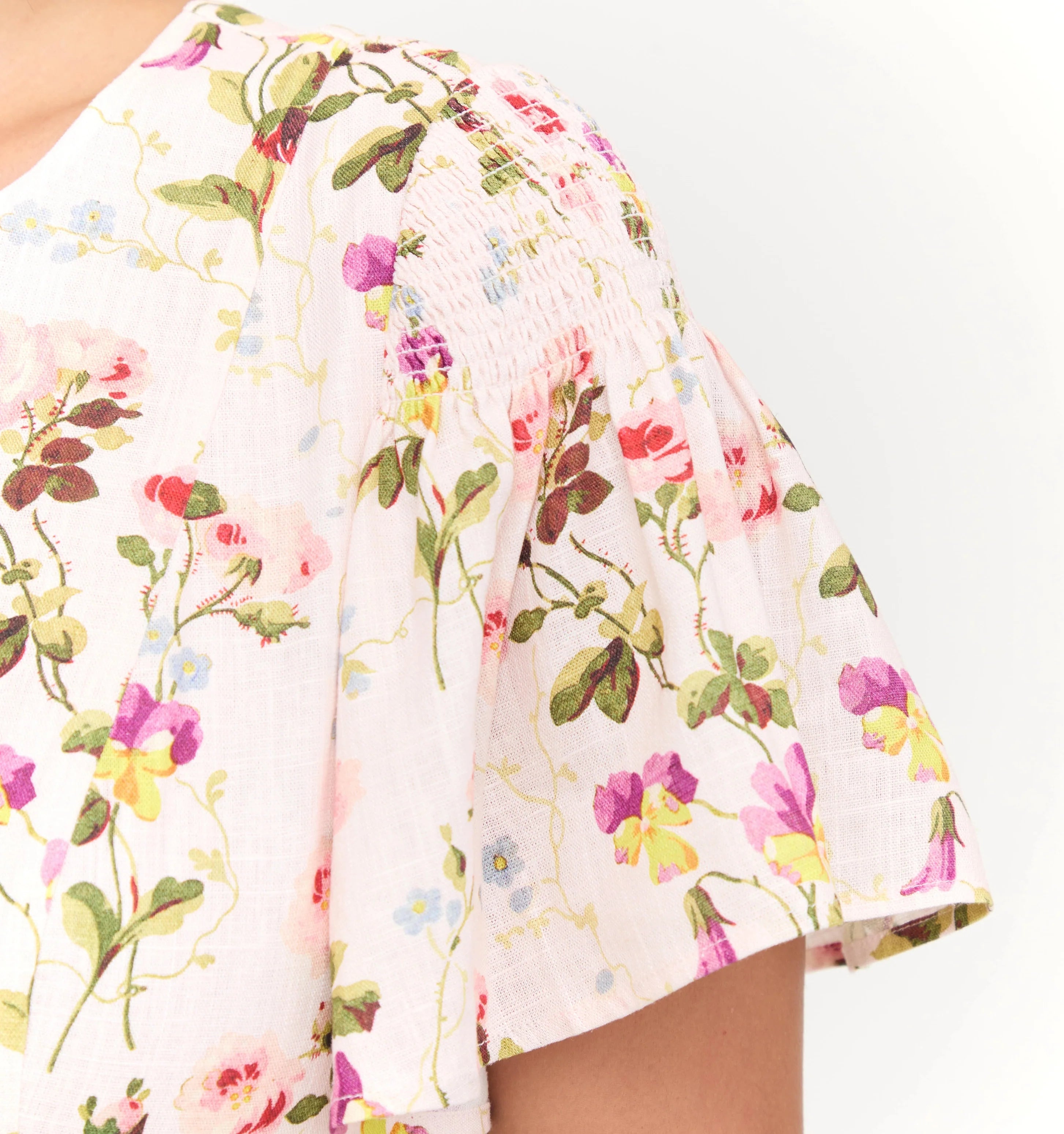 Bluebonnet is a vintage floral print with a soft pearly pink background, featuring flowers in shades of mustard, purple, and olive. A little Hill House History lesson: The Bluebonnet was named the state flower of Texas in March of 1901.
