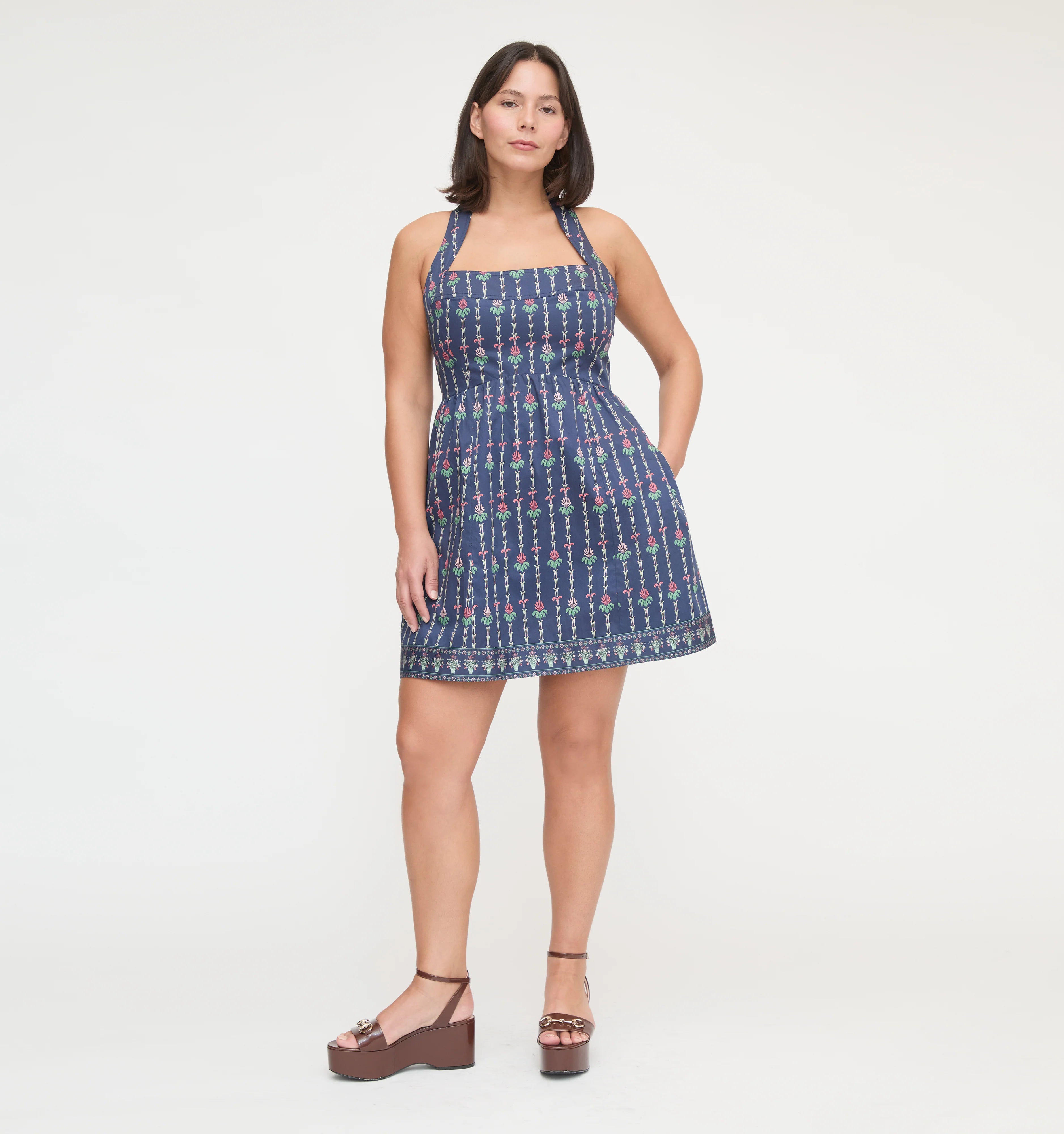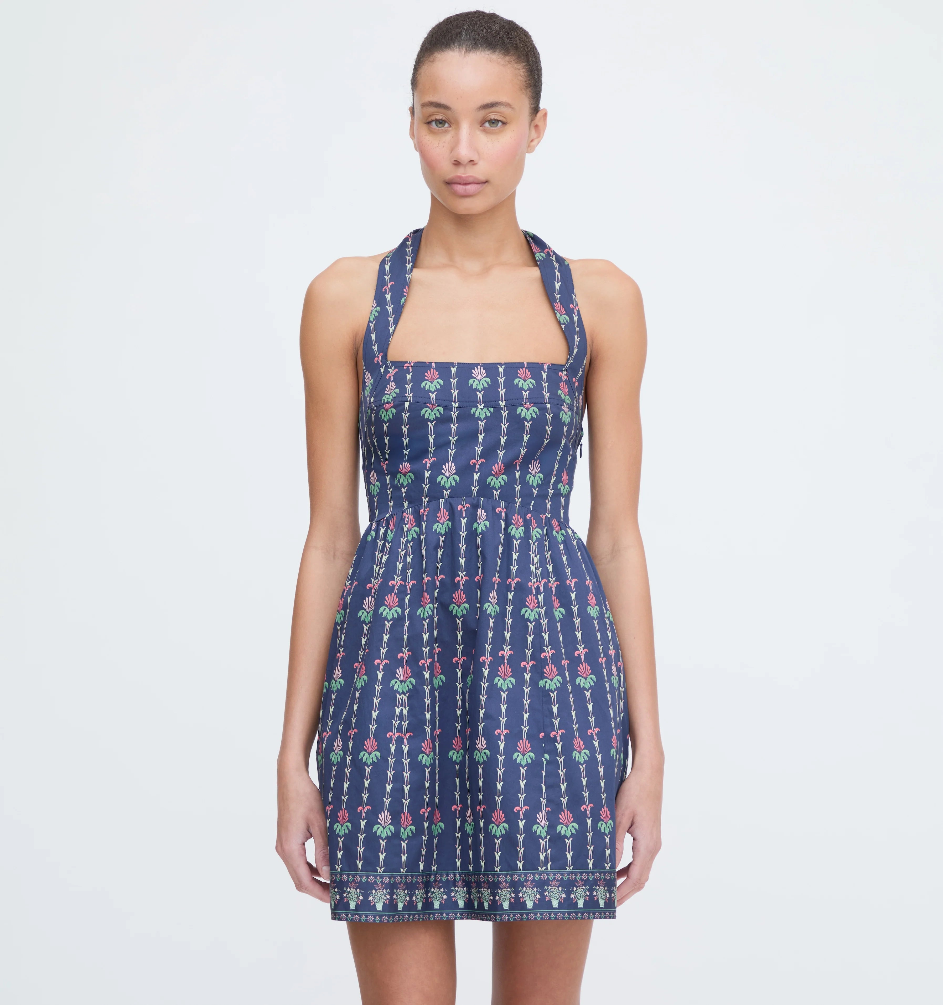 Meet the Fleur Mini Dress. The Design Team presented themselves with a simple, but taxing assignment: The perfect halter dress. Must work for all spring and summer events. I must say, as a copywriter who has tried this fabulous, mini dress on, they nailed it. The halter neck features functional ties and creates a flattering, subtle square neckline.