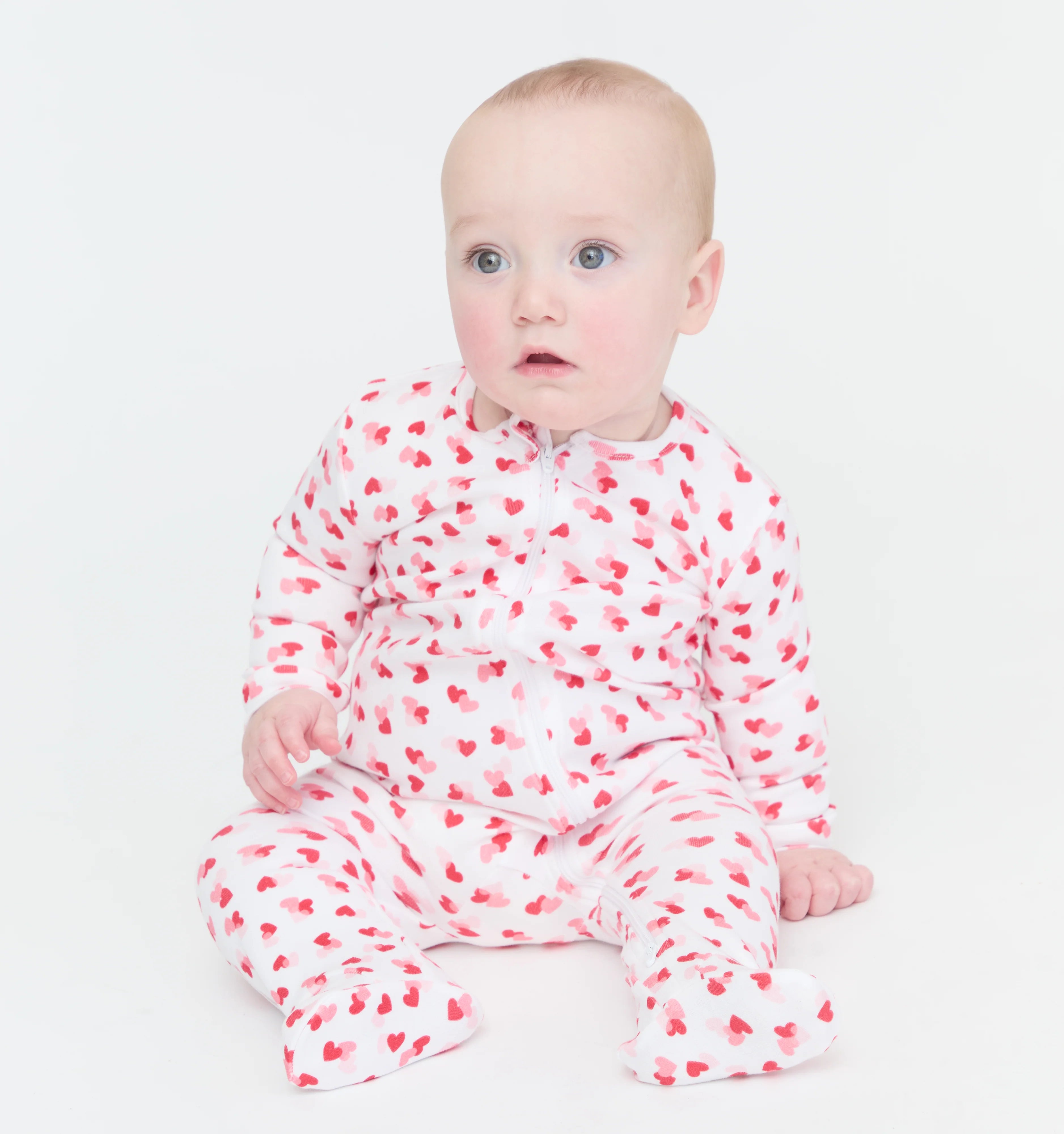 Inspired by vintage Valentine memorabilia, Lots of Hearts features pink and red hearts on a white ground.