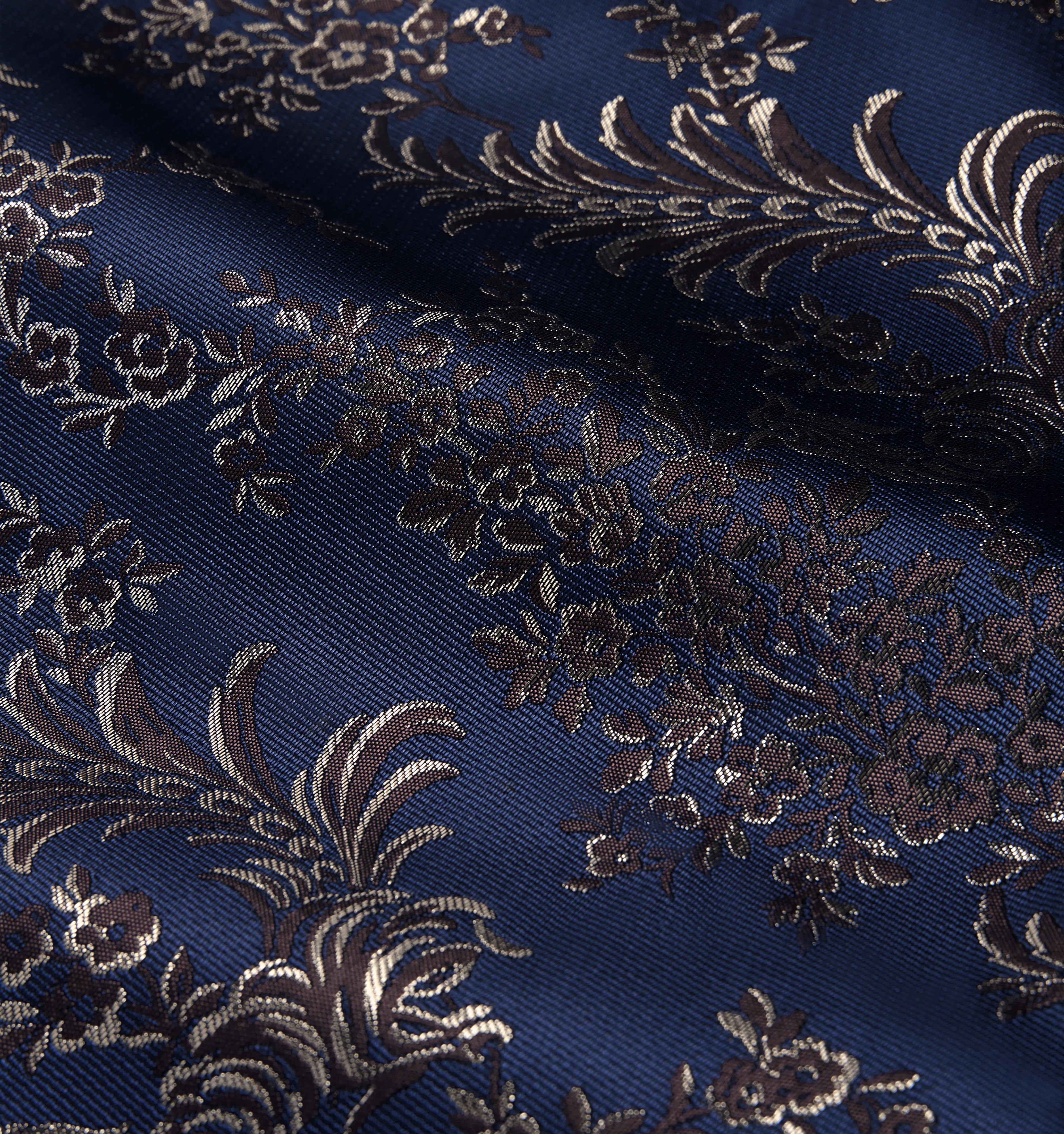 Our ultra fancy Bird Brocade is made from a silky brocade fabric woven with gold metallic thread.