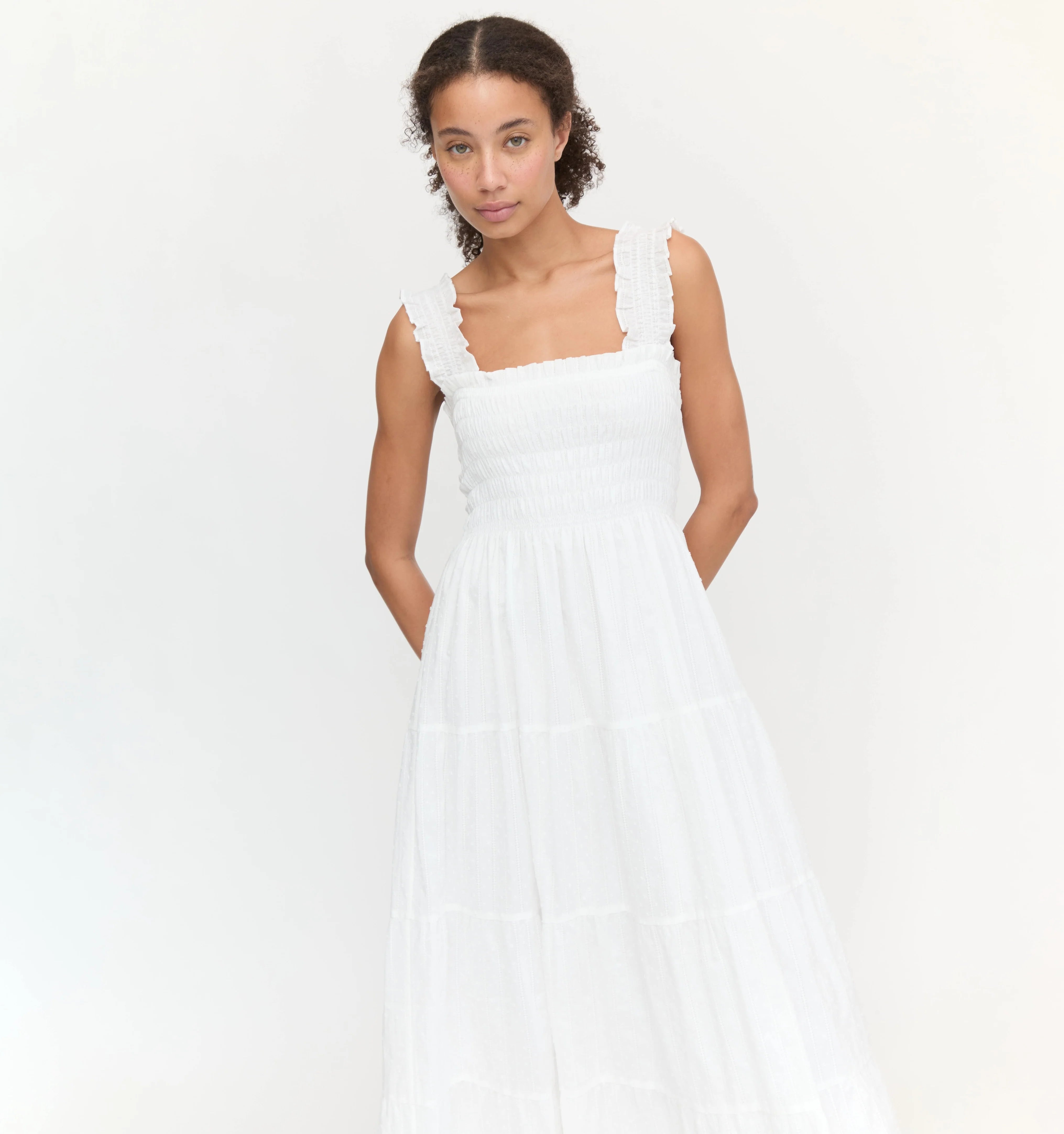 Introducing the Kimmy Nap Dress, the newest member of the Nap Dress family. With our signature proprietary, elasticated Nap Smocking and an A-line tiered skirt, Kimmy offers a true maxi length and smocked straps for an effortlessly chic, laid-back style. Kimmy is inspired by the O.G. Nap Dress - her big sister, Ellie. Can you spot the similarities?