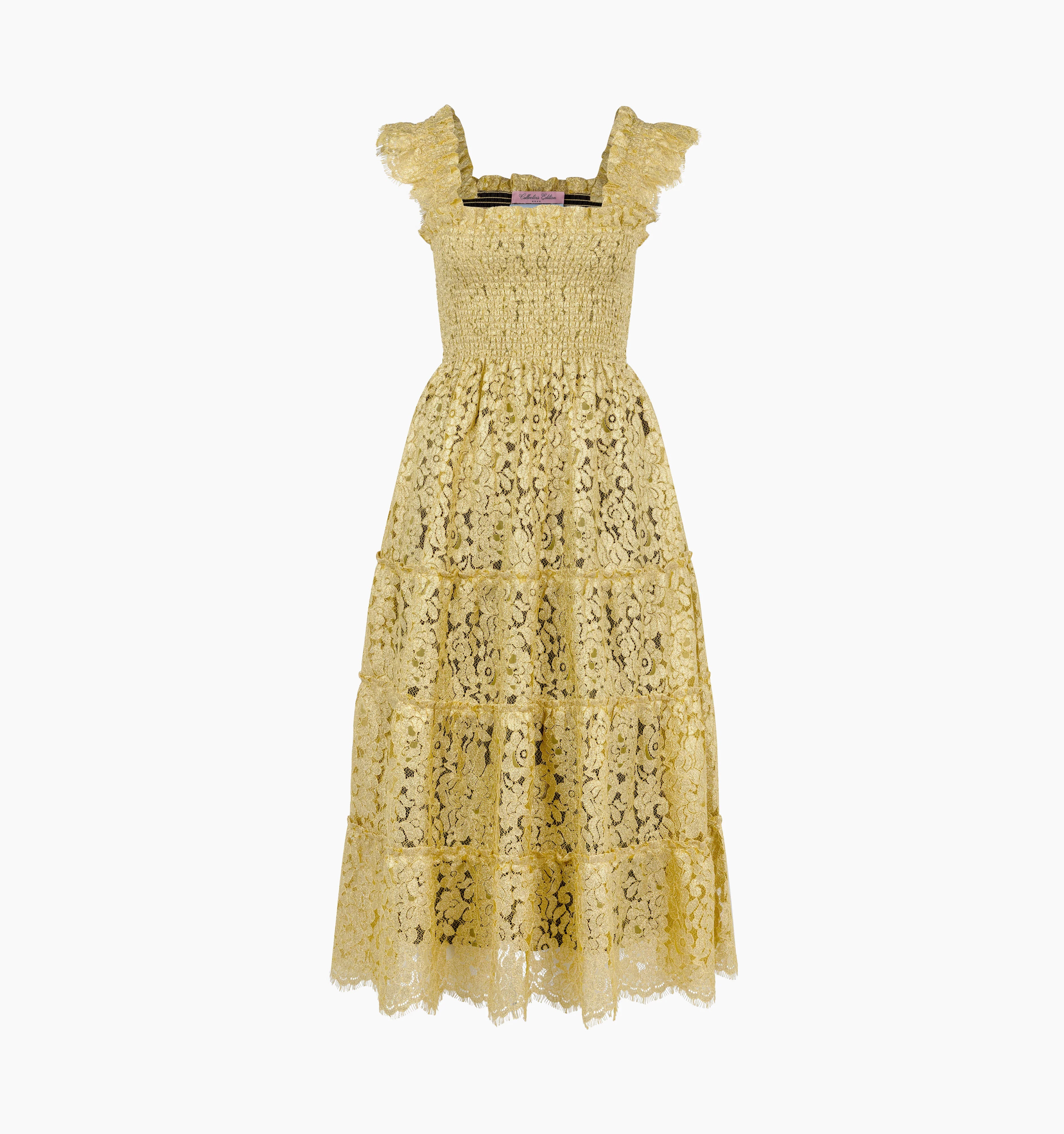The Lace Ellie Nap Dress® in Gold Lace is fully lined.