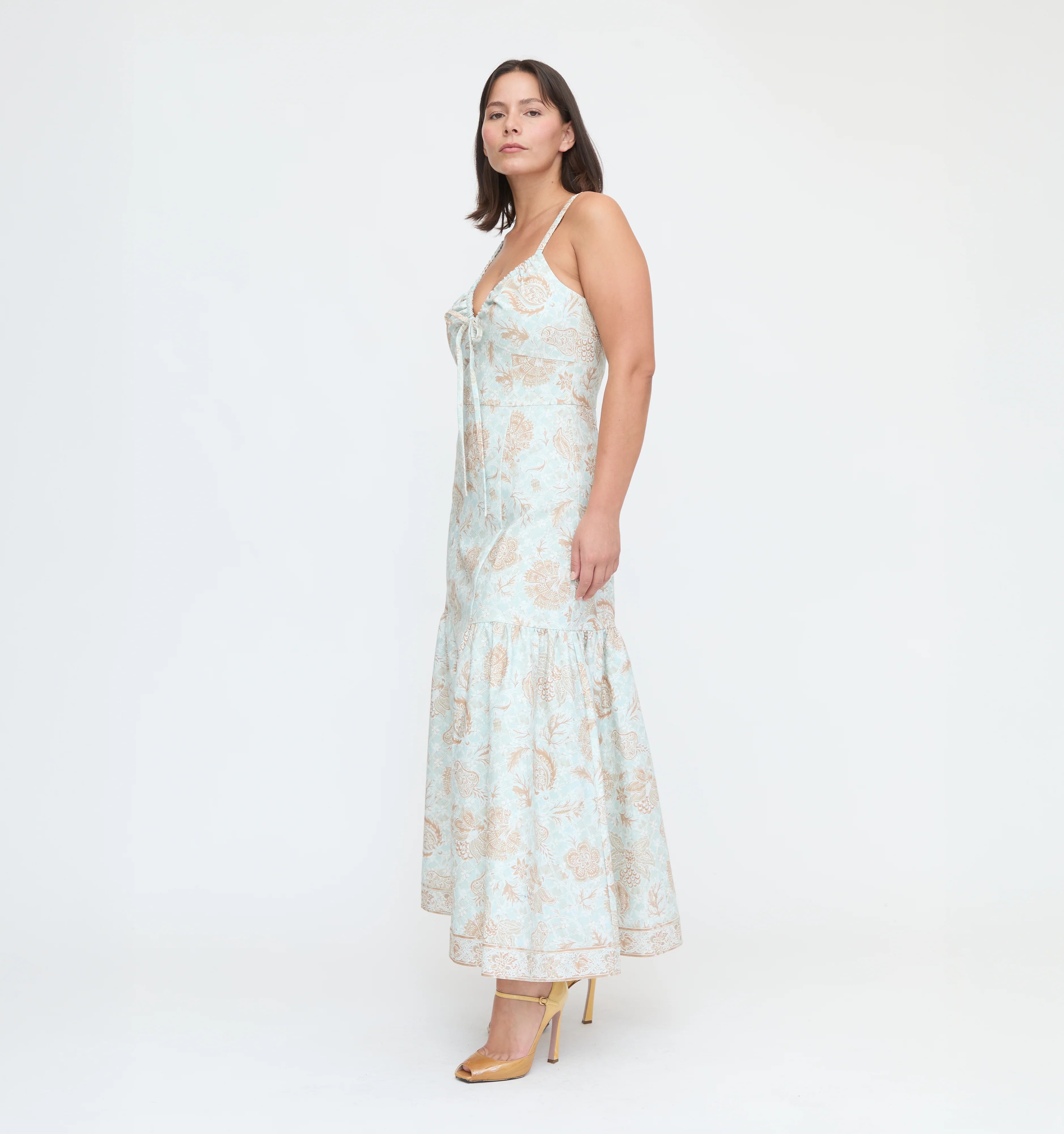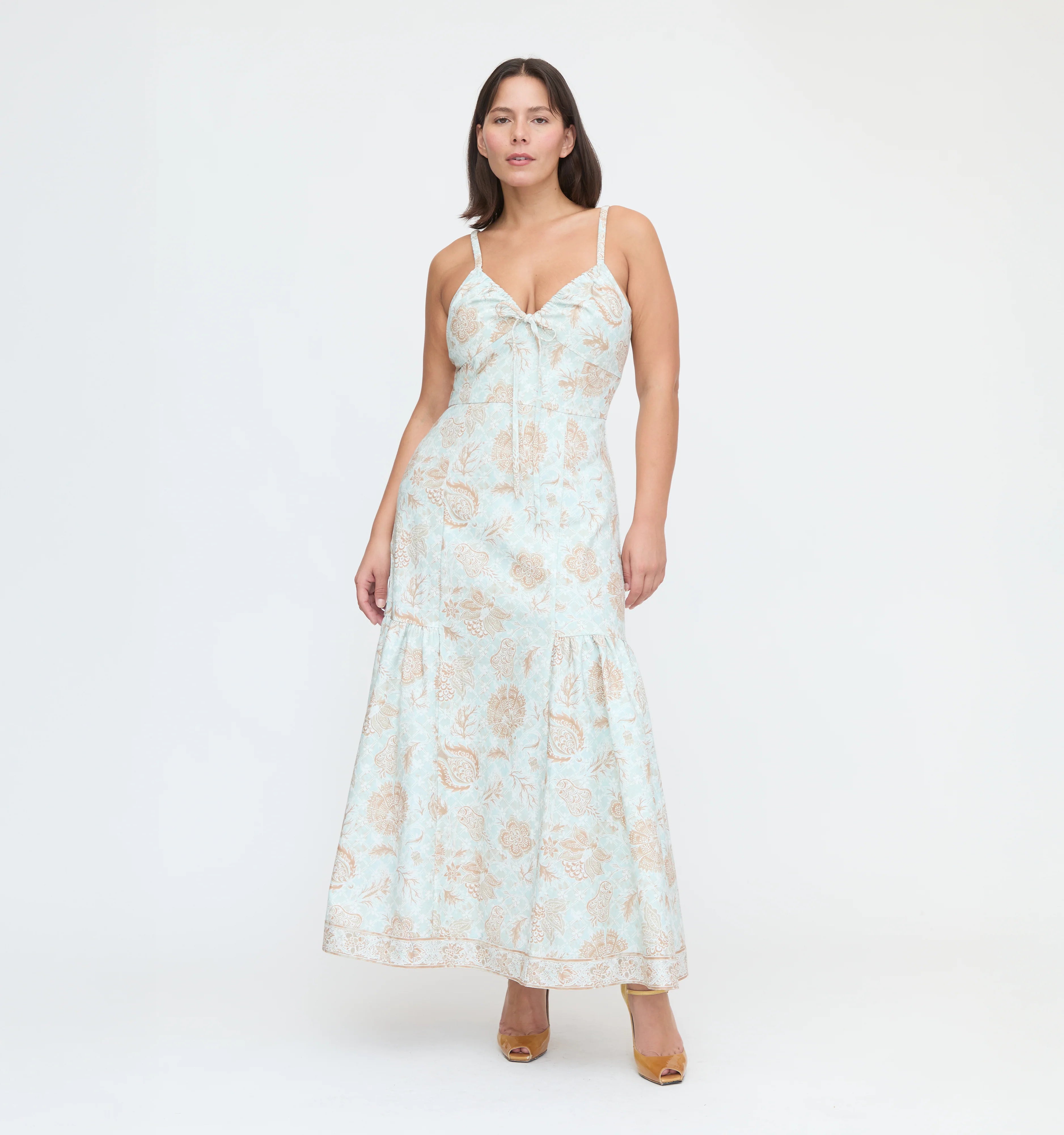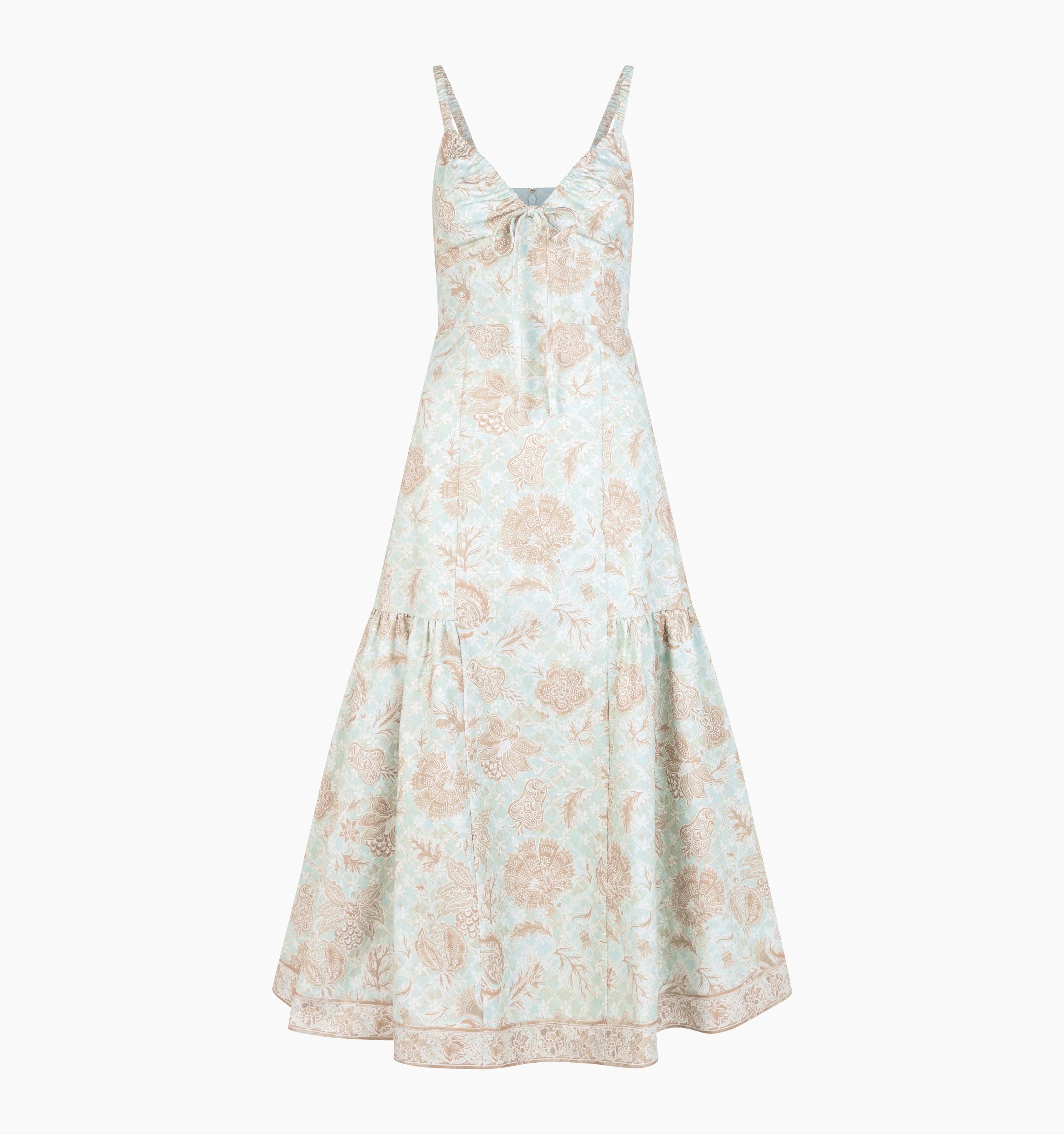 Meet the Lillie Dress. Wedding guests, this one's for you. Lillie has a flattering comfortable fit thanks to its corset-like bodice and fully adjustable neckline. Ophelia fans – Lillie features the same functional drawstring tie along the neckline so you can customize your fit. The midi skirt features side panels for added movement.