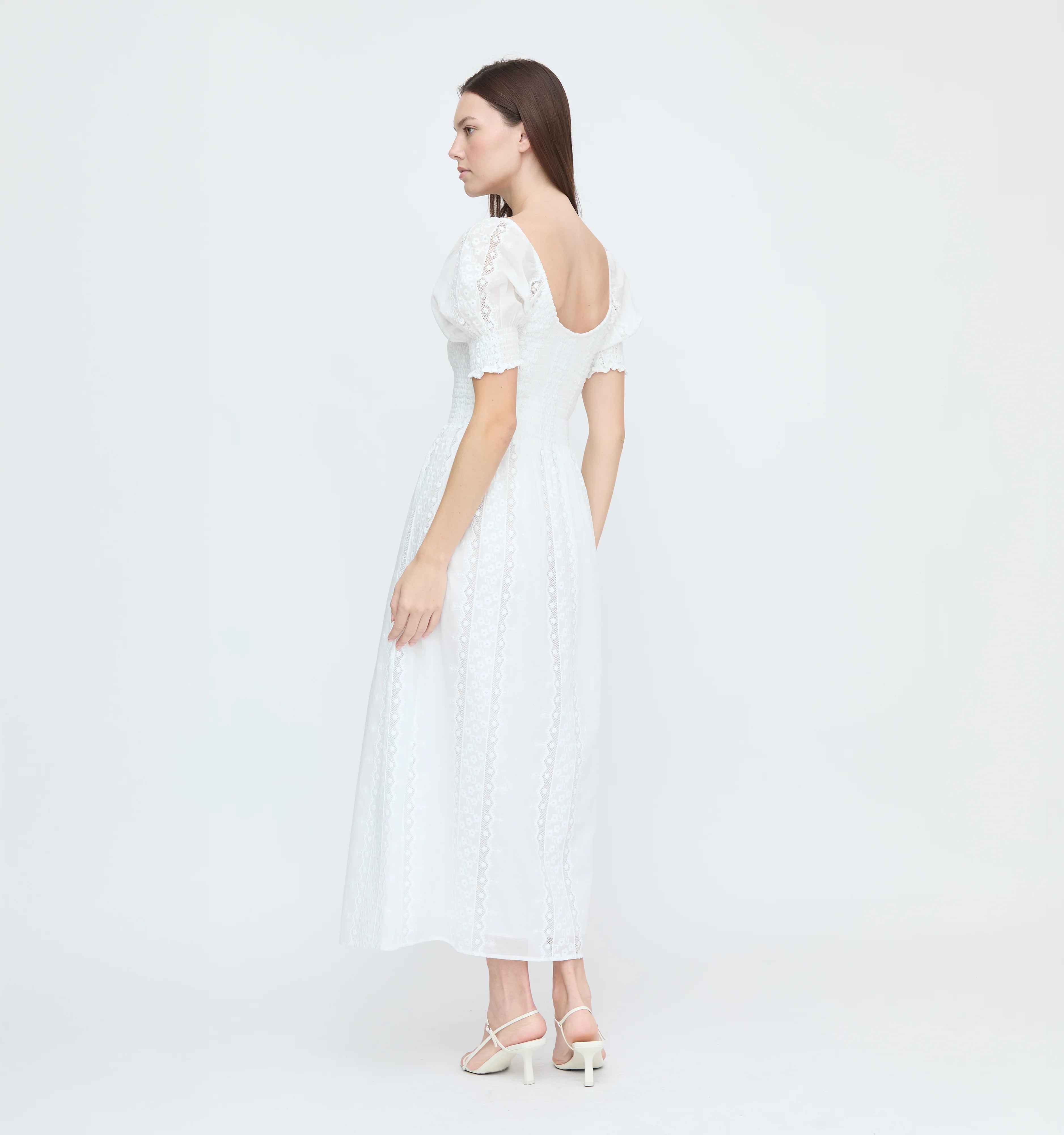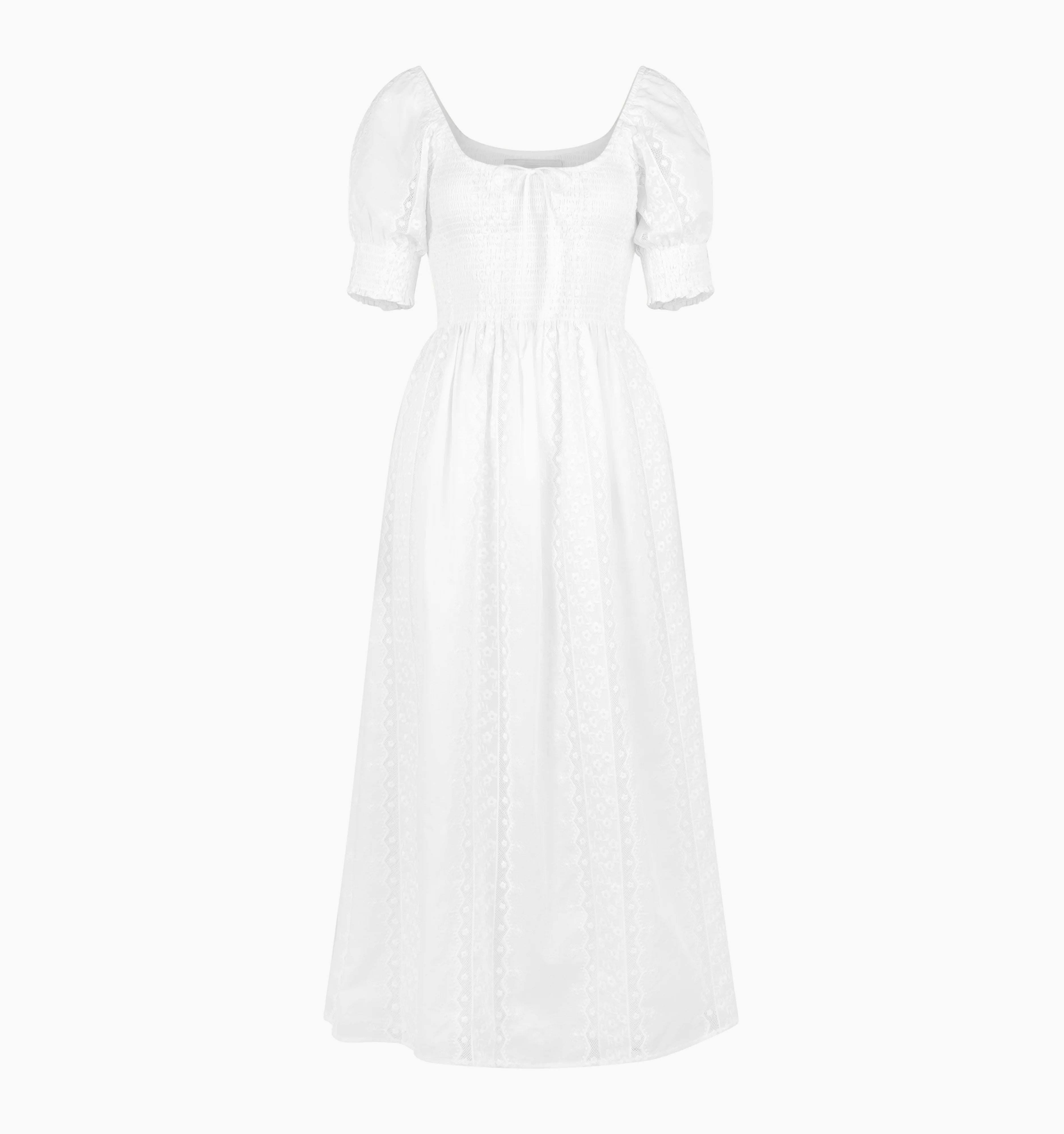 Meet the Madeline Nap Dress. With a bra-friendly scoop neckline and elasticated smocking throughout the bodice, Madeline is as flattering as she is comfortable. Delicate, decorative smocking and a functional bow add an extra feminine touch.